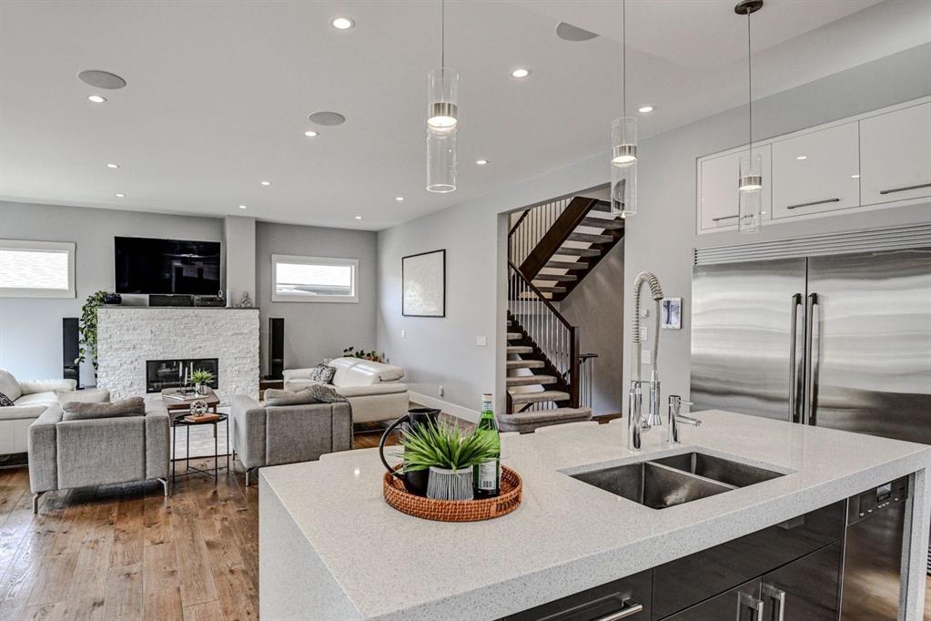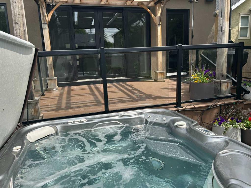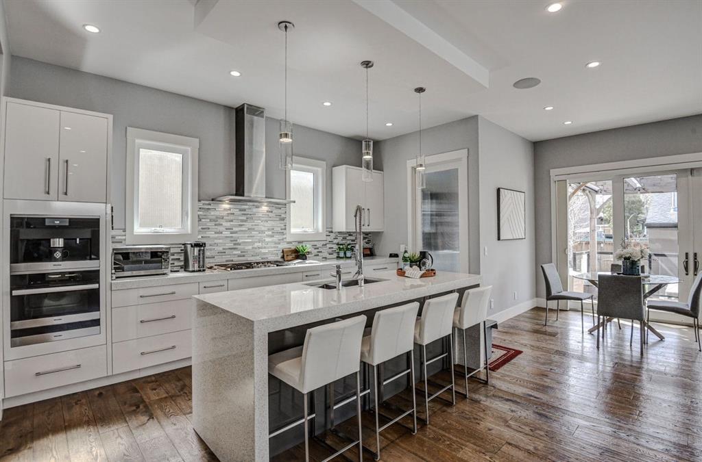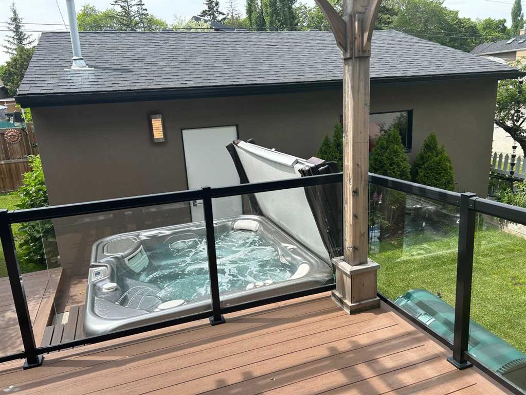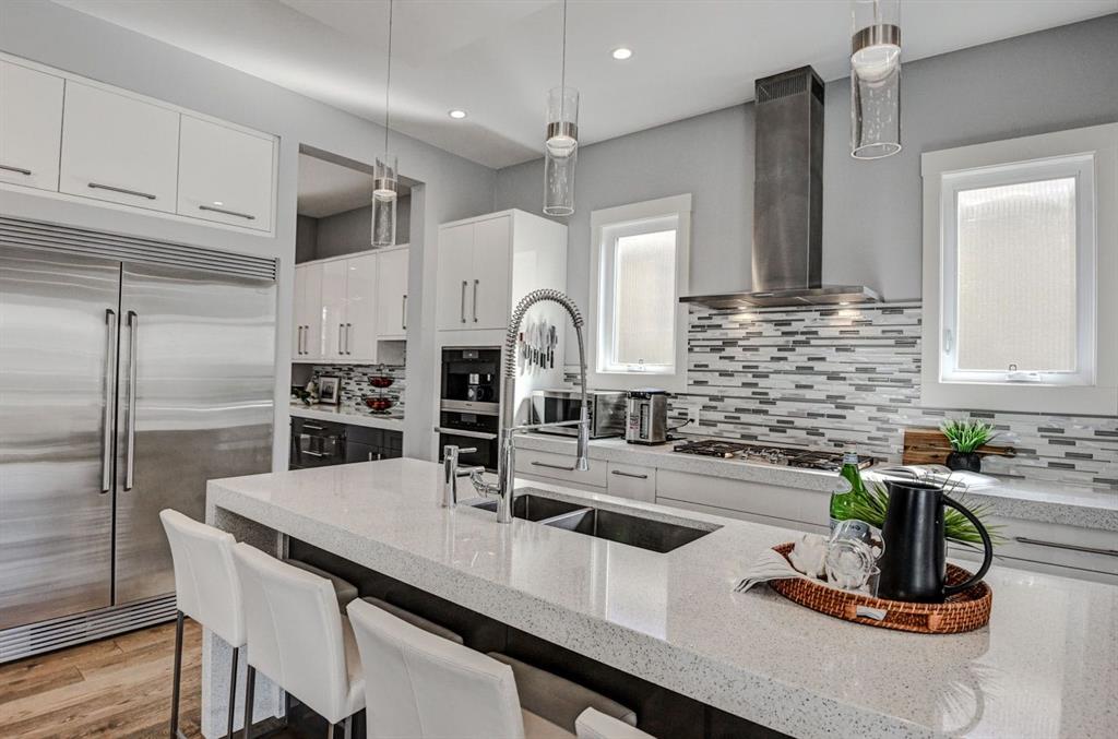 Step into luxury living with this meticulously crafted masterpiece situated on a mature tree-lined street in the highly sought after community of Bridgeland. Where modern contemporary style meets quality luxury living. Your new home offers over 4,500 square feet of impeccably designed space. Upon entering, be greeted by the timeless elegance light oak hardwood floors which guides you through a space built for entertainment & relaxation. You will appreciate the open concept living area, wall to wall windows taking in the natural light of your private back yard. Adjoining the living area is the gourmet kitchen, featuring top-of-the-line appliances, including a side-by-side freezer & fridge, gas range. dishwasher, wall oven, a built-in coffee machine, and two sinks. A spice kitchen with beverage fridge facing the walk-in pantry. Ample cabinetry. Elegant waterfall style quartz island completes the need for functionality & style. Host unforgettable family gatherings, from this beautiful space through to the floor to ceiling sliding patio doors, onto a private large upper deck with Pergola, or retreat to the lower patio for a dip in the hot tub. Upstairs you will find the primary bedroom to be another true retreat. Boasting of a 9-piece ensuite oasis with double sinks, a makeup station, a luxurious soaker tub, a full tile & full body shower, and a spacious walk-in closet. Each of the additional bedrooms boasts to have their own bathrooms, providing comfort and convenience. No expense was spared in the laundry room, plenty of storage counter space and sink. Venture downstairs to discover a haven for recreation and relaxation, featuring a sizable recreation room ideal for movie nights with a fantastic surround sound system. Enjoy another 6-piece steam shower set up & a fourth bedroom. The fully developed space includes incorporating the open staircase design from top floor to bottom. There is so much more to this home, all bathrooms have heated floors for your comfort as well as the complete multi zoned heated basement floors. With one of the largest level lots in the community, this west-facing backyard offers ample space to create your private outdoor sanctuary complete with underground sprinkler system & a heated triple car garage. There is so much more to discover with this quality built & well maintained home. Don't miss the opportunity to make this exquisite home yours—schedule a private tour with your favorite realtor today. You’ll be glad you did!