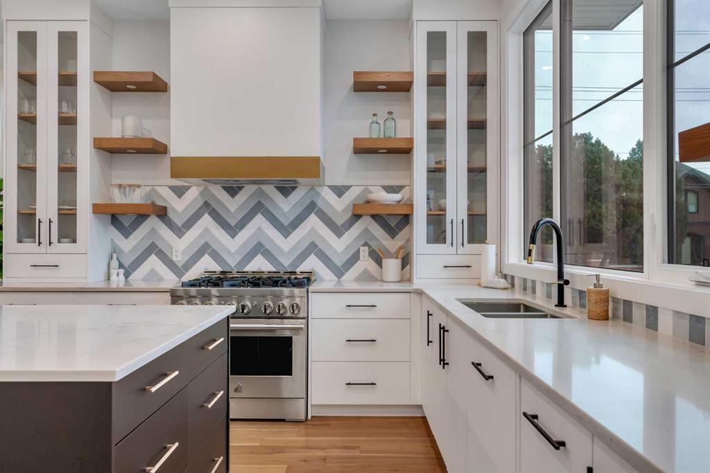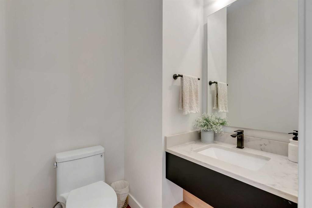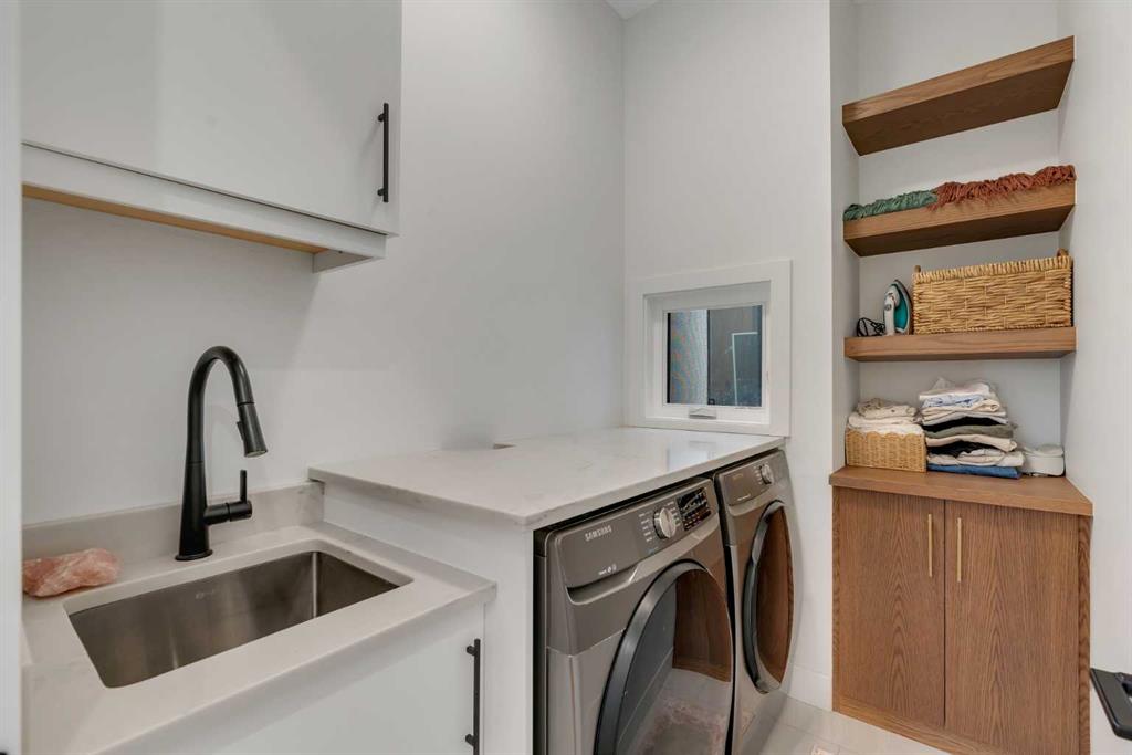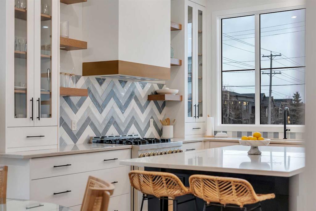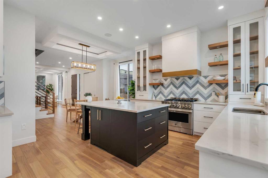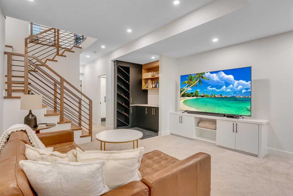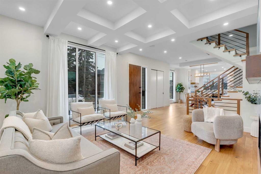 Set on a prime corner parcel in Altadore, this upscale modern farmhouse blends architectural presence with refined, highly functional design. With over 2,800 sq ft of professionally curated living space, this four-bedroom, 3.5-bath residence delivers the kind of layout and finish level discerning buyers expect in one of Calgary’s most sought-after inner-city communities. Step inside and you’re greeted by soaring 10-foot ceilings, rich walnut engineered hardwood, and a sense of openness that immediately feels both grand and welcoming. The main living area is anchored by a statement fireplace wrapped in designer tile, flanked by custom built-ins, while a coffered ceiling adds depth and character overhead. An elegant staircase acts as an architectural feature of its own, subtly defining the space without interrupting the flow. The kitchen is a true showpiece — equal parts beauty and performance. Outfitted with premium Miele and JennAir appliances, it offers abundant storage, clean lines, and a layout designed for both everyday ease and elevated entertaining. Whether hosting a dinner party or enjoying a quiet morning coffee, this space effortlessly supports the rhythm of daily life. Large windows at the rear draw in natural light and connect seamlessly to the sunny south-facing backyard — a rare and valuable feature on an inner-city lot. Upstairs, 10-foot ceilings continue, creating an airy retreat level. The primary suite feels like a boutique hotel escape, complete with custom ceiling detailing and a spa-inspired ensuite. Heated floors, a curbless glass shower with steam rough-in, a freestanding soaker tub, dual vanities, and a fully customized walk-in closet combine comfort with thoughtful luxury. Additional bedrooms are generously sized and well positioned for family or guests. The fully developed basement is bright and inviting thanks to large sunshine windows. Here you’ll find a spacious recreation room with a sleek wet bar and dedicated wine storage, plus an additional bedroom and full bathroom — ideal for visitors, teens, or a private home office setup. All of this sits just a few blocks from the boutiques, cafés, and dining of Marda Loop, with parks, schools, and pathways nearby. Quick access to Crowchild Trail makes commuting downtown or across the city effortless. This is inner-city living done right — elevated design, timeless style, and an address that never goes out of fashion.