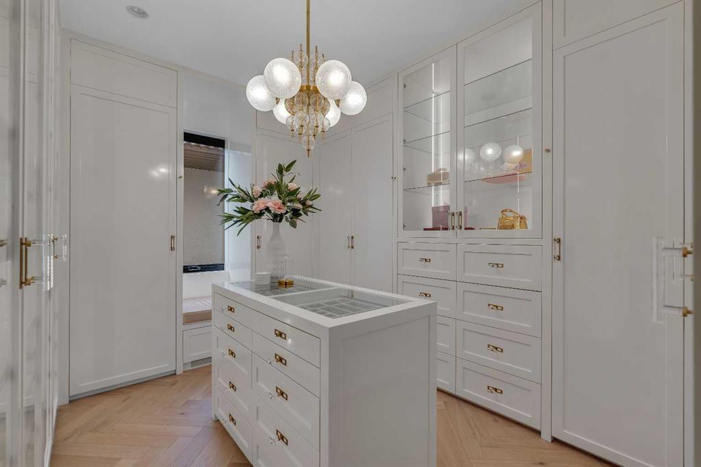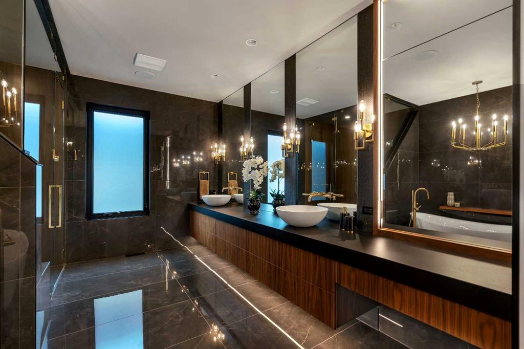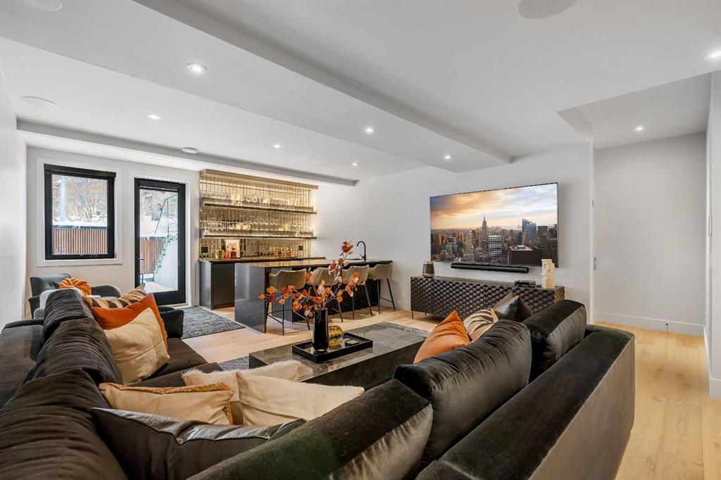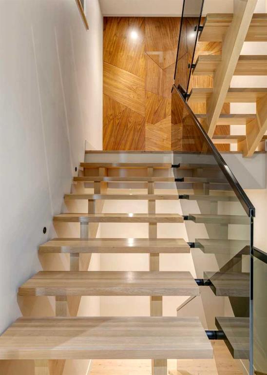 Understated elegance & sophistication describe this gorgeous property located on one of Elbow Park’s most sought after streets. Offering 4+1 bedroom’s, 9 bathrooms and 7,136 SF of livable space this home has been meticulously brought to life by DWK Interiors and was a finalist for Western Living’s ‘Interior Designer of the Year’ Award. You are welcomed in to a large foyer and will immediately feel the bespoke finishing as your view takes in the Pearl White Epoxy floor and smoky finished mirrors. The heart of a home is the kitchen where Black Dekton Stone is freely used for countertops, backsplash and cabinetry that is beautifully contrasted with walnut features. The 60” Wolf Range and SubZero Refrigerator are best in class. The Dekton continues into the Butler Pantry which offers augmented prep space and an oversized 2nd Fridge and Freezer. Take your eyes off of the 16’ Island and oversized rain-drop light fixture and you won’t miss the temperature controlled wine cellar (220 Bottles) that leads right into the rear wall which is a full Nano Accordion Door that fully opens to the outdoor space. A custom wall bar compliments all these spaces as you move into the living room which makes a statement with the Walnut feature wall! From the living room you can easily walk past a chic powder room and find yourself immersed in the event space set up with entertainment in mind. This room exudes class with White Oak herringbone patterned hardwood grounded by a black & gold diamond design built-in. The ceiling is covered in black leather-like wall paper and all leads to a formal dining area lit up by a 10’ gold custom chain link layered fixture. Venture upstairs to 3 secondary bedrooms that are all Suite-Like with exclusive ensuites and customized perfectly for the whole family. The Primary Suite offers 2 separate walk-in closets and an ensuite which features more Dekton counters with accents of gold and white & full slab tiled walls. LOVE the floating bath and the steam shower showcasing Italian wood textured tile. Upstairs laundry room with double washer and dryers completes this floor. The 3rd story loft is perfect as a bonus room, office or craft room with private bathroom and roof-top patio. It offers a fridge, sink and mini dishwasher with custom millwork and built-ins. The walk-up lower level functions perfectly as a family retreat and games space with a full service bar area. A Large fitness room also showcases a custom one-of-kind wall mural by internationally known artist Michelle Hoogsveld. The 5th bedroom and private ensuite is set up for a live-in nanny or house guests. Huge mud-room with lockers and cabinetry allow for hiding all your gear. Oversized triple/tandem garage has slat walks to assist with storage, dog or bike wash and heated epoxy floors. The rear yard offers multiple multiple options for play-time or relaxation with an oversized pool with swim up bar and fully appointed outdoor kitchen including pizza oven! Call for private showing today!