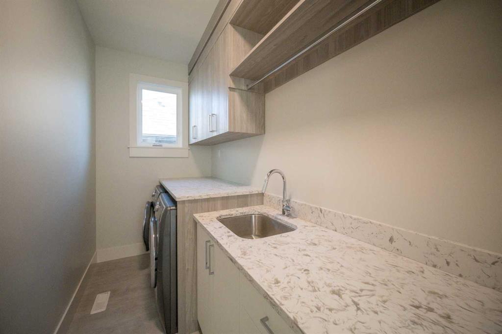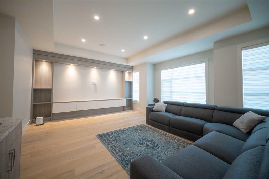 Welcome to this exquisite residence in the highly desirable inner-city community of Winston Heights. Situated on a generous 36.5' x 152' lot, this upscale executive home showcases exceptional craftsmanship and a thoughtfully designed floor plan that spans over 4,300 square feet of luxurious living space, enhanced by soaring 10-foot ceilings. From the moment you enter, you are welcomed by elegant white oak plank hardwood flooring that flows seamlessly throughout the entire home, including the staircase. The stylish chef’s kitchen is a true centerpiece, featuring a large central island, contemporary cabinetry, and High end JennAir stainless-steel appliances. A bright dining nook, framed by two large windows and a chic chandelier, overlooks the landscaped backyard. The spacious living room boasts an elongated gas fireplace with quartz stone surround, flanked by custom built-ins, and oversized sliding patio doors leading to the sunny rear deck—perfect for both entertaining and relaxing. A well-appointed mudroom on the main floor includes a large closet and abundant shelving, offering practical storage solutions for everyday living. Upstairs, the second level features a generous primary suite complete with 9-foot ceiling, a walk-in closet and a spa-inspired 5-piece ensuite that includes double sinks, a luxurious soaker tub, and an oversized steam/rain shower with a bench and 10mm glass enclosure. Two additional bedrooms, a bonus room, a sleek 3-piece bathroom, a dedicated office, and a separate laundry room add both comfort and functionality to this level. The fully developed legal basement suite, enhanced with in-floor heating, offers even more living space and versatility. It includes a spacious entertainment area with a fully equipped kitchen, two additional bedrooms, and a beautifully designed 3-piece bathroom—ideal for extended family or rental opportunities. Step outside to the beautifully landscaped backyard—an ideal setting for gatherings with family and friends. This home is loaded with premium upgrades, including triple-pane windows, basement in-floor heating, an oversized double garage with a 9-foot high door (lift-ready), custom built-ins, solid core doors, built-in ceiling speakers, flat-painted ceilings, programmable Lutron lighting, extra-wide baseboards and trim, and so much more. This is a truly exceptional modern home in one of Calgary’s most sought-after inner-city locations. Book your private showing today!