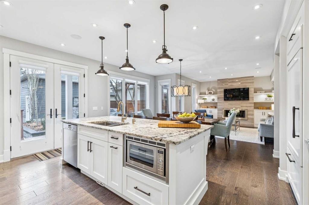 Welcome to 419 47 AV SW, a truly magnificent estate home privately nestled within a highly desirable, quiet, tree-lined residential enclave of Elboya. Graced with 2,635 sq. ft. of harmoniously appointed living space, this home is a testament to timeless design and custom craftsmanship, meticulously crafted by Trademark Renovations. Every room blends luxurious sophistication with thoughtful functionality. The open-concept main floor flows seamlessly, anchored by the professional-grade kitchen—designed as the home's epicenter. This space effortlessly transitions into the formal dining area and the expansive living room, which looks onto the stunning remodeled outdoor living space, perfect for hosting gatherings of all sizes. The main level is completed by a meticulously curated oversize executive office, featuring custom built-ins including a convenient Murphy bed for versatile guest accommodation. Ascend to the upper level to discover the impressive primary wing, a private escape in itself. It boasts soaring vaulted ceilings, a charming juliet balcony, a captivating two-way fireplace, heated floors, and a rejuvenating steam shower. A spacious laundry room, two generous children's rooms, and a well-appointed shared bathroom complete this floor. The exceptional lower level continues to impress, offering an entertainer's dream: a custom wet bar equipped with a wine fridge and dishwasher, a spacious family room featuring a retractable projector screen and movie theater quality audio system. This level also includes a large fourth bedroom and a full third bathroom. Completing this stunning residence is a custom-designed, oversized, heated garage, offering ample space for vehicles and all your storage needs. This stunning family home boasts an unbeatable location: steps to Elboya park, two blocks from Elboya School, and five blocks from the Community Center. Experience the ideal family lifestyle where everything is within easy reach! Be sure to explore the 3D Virtual Open House Tour and request the comprehensive detailed upgrade list for a full appreciation of this spectacular offering.