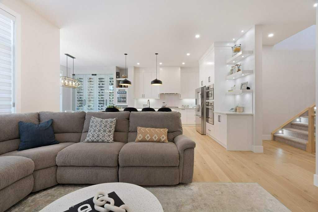A stunning custom-built home in the prestigious community of Discovery Ridge. This 5-bedroom, 4.5-bathroom residence offers nearly 3,000 sq ft above grade of luxurious living space designed for comfort, functionality, and style. The open-concept main floor showcases soaring ceilings, elegant tile flooring, and a sleek linear fireplace, creating an inviting atmosphere ideal for both family living and entertaining. The chef-inspired kitchen is a true highlight, featuring premium appliances, custom cabinetry, Butler’s pantry, thoughtful details like under-cabinet lighting, beverage fridge and Winestation. The adjacent dining area is accented by a beautiful wine wall. The dedicated main floor office is perfect to be productive as it does not intrude into the living and entertaining areas. Upstairs, the spacious primary retreat boasts a spa-like ensuite with steam shower, dual vanities, free-standing tub and a large walk-in closet that can access the laundry room. There are 3 more bedrooms on the upper level with one having its own ensuite. The large family/bonus room completes the upper level. The fully developed basement adds even more versatility with a 5th bedroom, a full bath, large recreation room, wet bar and dedicated gym that could be converted into a 6th bedroom if needed. Oversized double garage with slat wall organizing system. Triple pane windows, dual furnaces and air conditioning for year-round comfort. Enjoy a lovely walk in Griffith Woods Park, this home offers both tranquility and convenience, with quick access to Stoney Trail, Signal Hill Centre, and top-tier golf courses. Ideal for families or entertainers, this Discovery Ridge gem is a rare opportunity in one of Calgary’s most coveted neighbourhoods. The home is also zoned to accommodate a LEGAL SUITE.