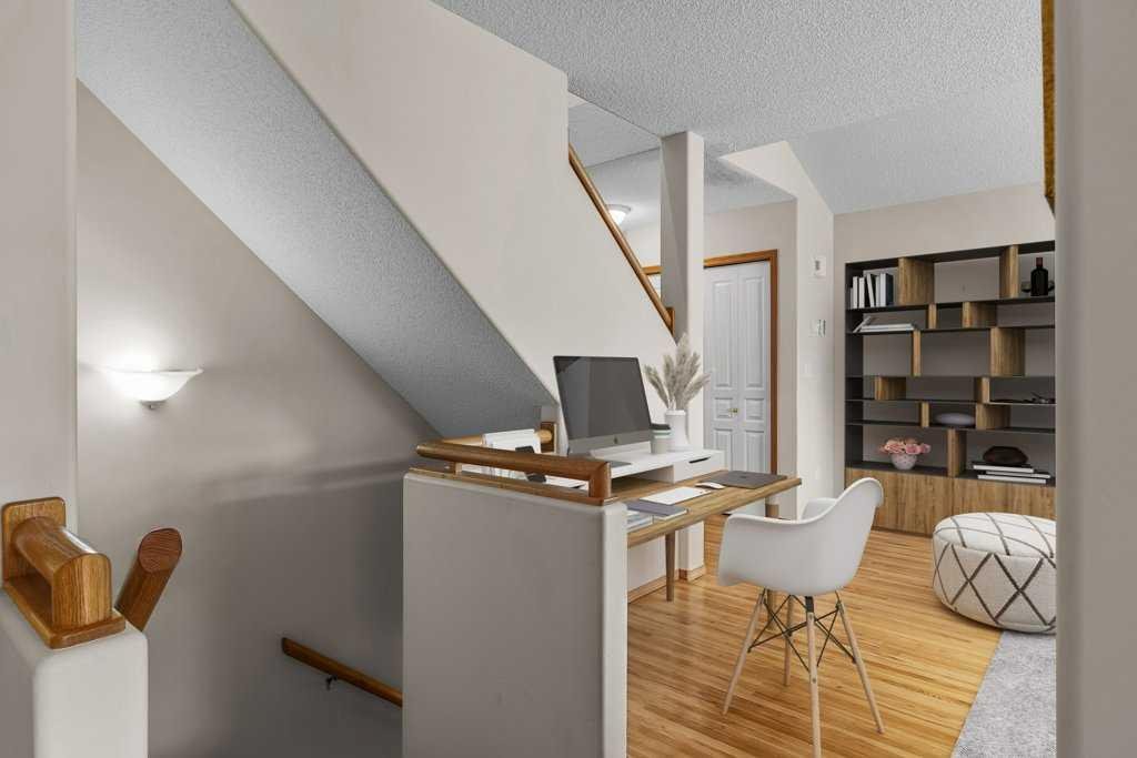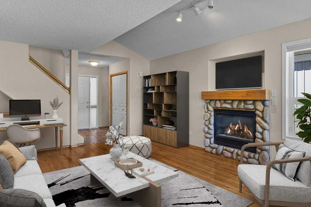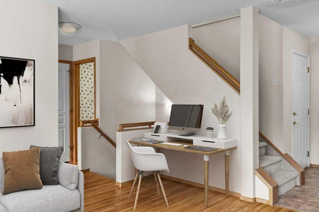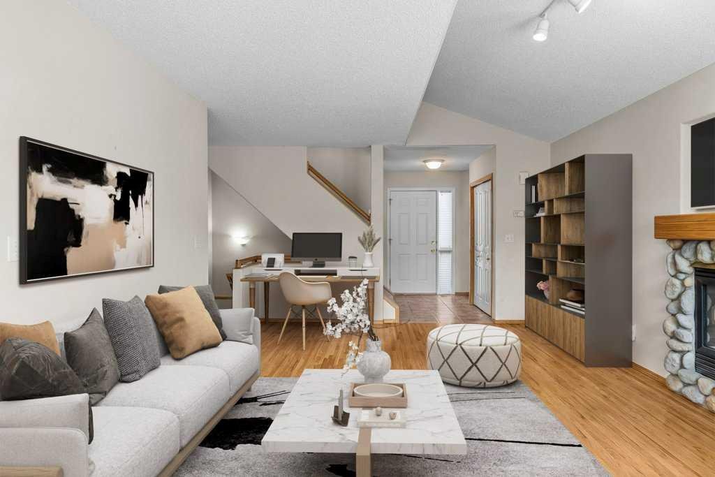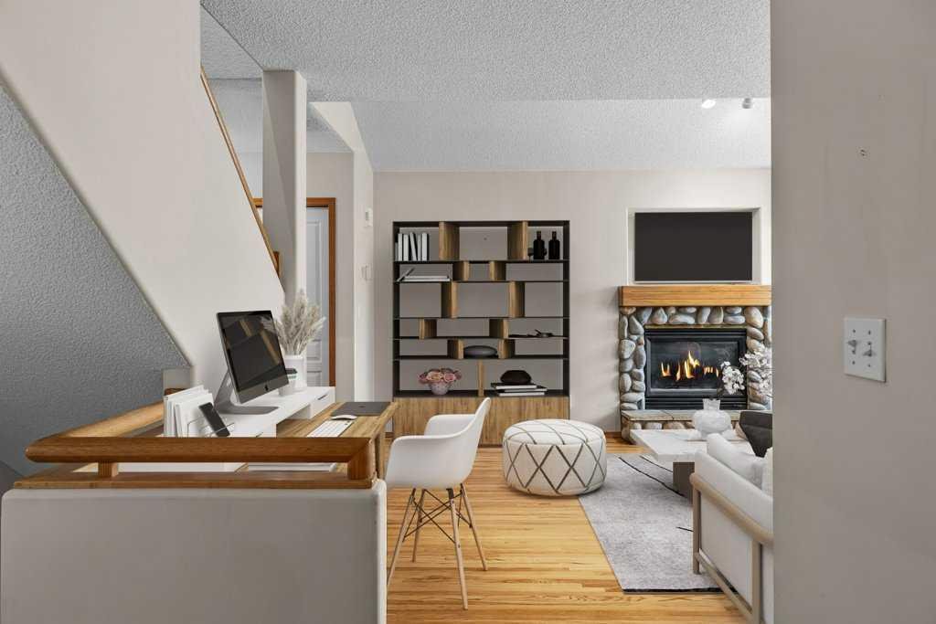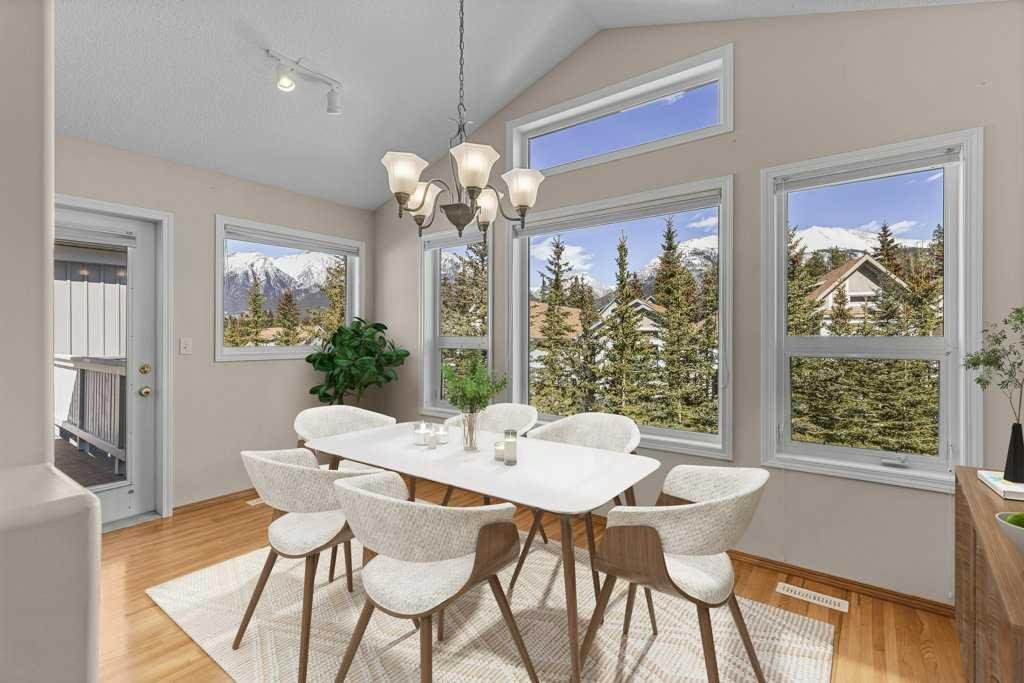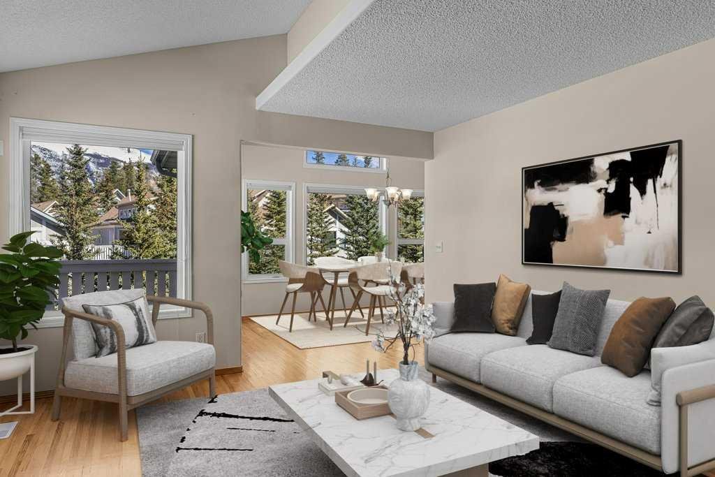 Spacious Mountain Living in a wonderful neighborhood - Set in one of Canmore’s most sought-after neighborhoods, this inviting bareland condo offers the perfect balance of full-time comfort and weekend escape. Just a 6-minute drive to downtown—or an easy, scenic stroll along the Bow River—you’re ideally positioned to enjoy the best of the Rockies. With 1,867 sq ft across three levels, this 3-bedroom, 3.5-bath home provides generous space to relax, host, and unwind. The bright open-concept living and dining area features warm wood floors, a cozy gas fireplace, and peaceful valley views over green space. Lovingly maintained, this home is ready for your personal touch to truly make it shine. A patio and two private balconies invite you outdoors, while the single garage offers room for all your mountain gear. Downstairs, a sun-filled family room adds even more flexible living space—perfect for guests or quiet evenings in. The homesteads are a lovely and very safe and friendly neighborhood, and the property is easy to show. Don’t wait, call now! (Please note, that the home is virtually staged - please use the virtual tour to get an accurate representation of the house as it currently is)