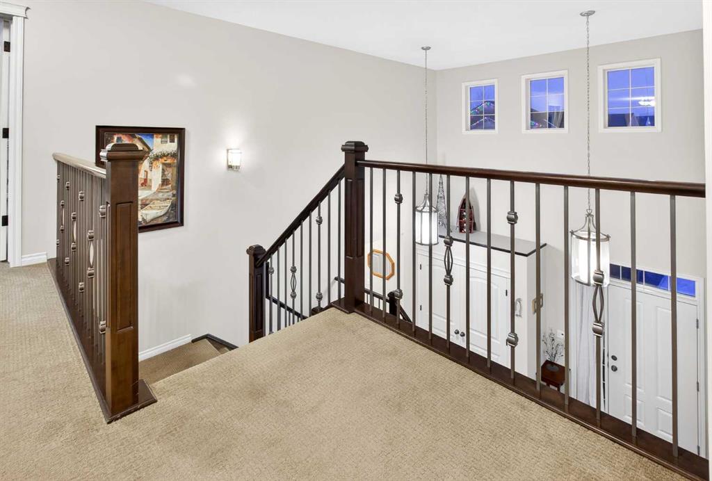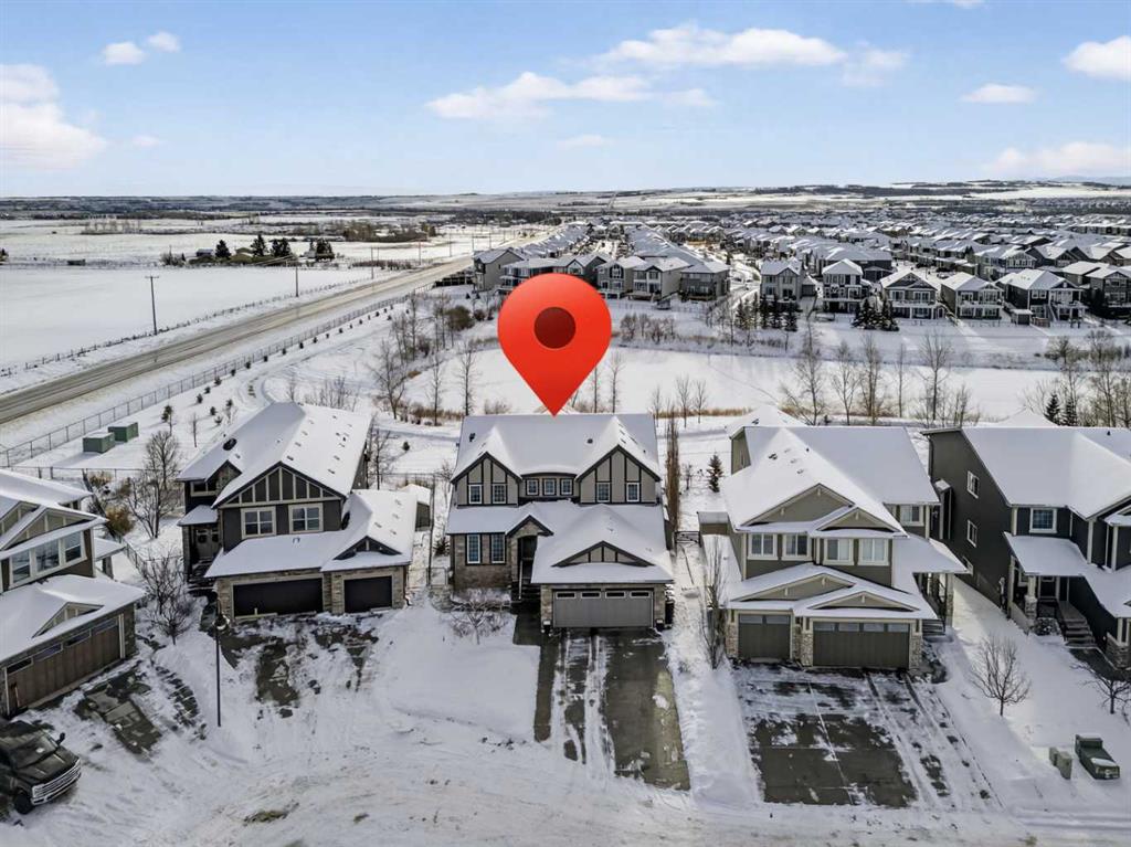 Custom built by Baywest Homes on a partial pie lot, this original-owner walkout home is ideally located in Air Ranch, backing south onto green space, pathways, and a pond. With over 4,200 sq ft of fully developed living space and approximately $185,000 in upgrades since 2020, this property offers exceptional space, functionality, and long-term value. The main floor features vaulted ceilings, hardwood flooring, and large windows that bring in abundant natural light and showcase the views. The open-concept kitchen includes custom cabinetry, granite countertops, stainless steel appliances, and a large island. The living room is anchored by a gas fireplace and flows into the dining nook and upper deck. A formal dining room, main-floor office, oversized laundry room, impressively huge second closet and mudroom complete this level. If you’re looking for main floor living options, the office and oversized bathroom beside could both be converted into a full bath and full bedroom. Up the elegant staircase, you will see a large bonus room overlooking the pond with mountain views to the west. The Primary Suite, aptly called “the west wing”, also with wonderful mountain views, sprawls along one side of the home with a massive 5-piece ensuite (that you can literally do cartwheels in!) and walk-in closet. Two other spacious bedrooms and full bathroom round out the upper level. The fully finished walkout basement with 9 foot ceilings provides additional living and entertaining space with a family/media area, flex area for gym equipment, games/billiards room, guest bedroom, full bathroom, and excellent storage. You will not only be impressed by the customized billiards room that is insulated for sound, but also by the extra space offered by the professionally built sunroom under the newly expanded deck. Here you will find oasis living and a Master Spas Challenger 15D swim spa to exercise or relax in year-round. The main media area in the basement was built with a Polk Audio surround sound system capacity. Out the back patio, the south-facing yard with automated irrigation system for the beautiful landscaping and fruit trees feels private and open at the same time, and backs onto green space and the pond beyond. Additional upgrades and features include 25 solar panels, programmable Trimlights, two high-efficiency furnaces, air conditioning, a Rheem Marathon hot water tank, updated mechanical components, and an oversized double attached garage. Screw piles have even been installed beneath the stamped concrete patio to accommodate the weight of a future outdoor fireplace if desired. This home in one of Okotoks’ most desirable communities has been lovingly thought out and cared for by the original owners and now is ready for new adventures!