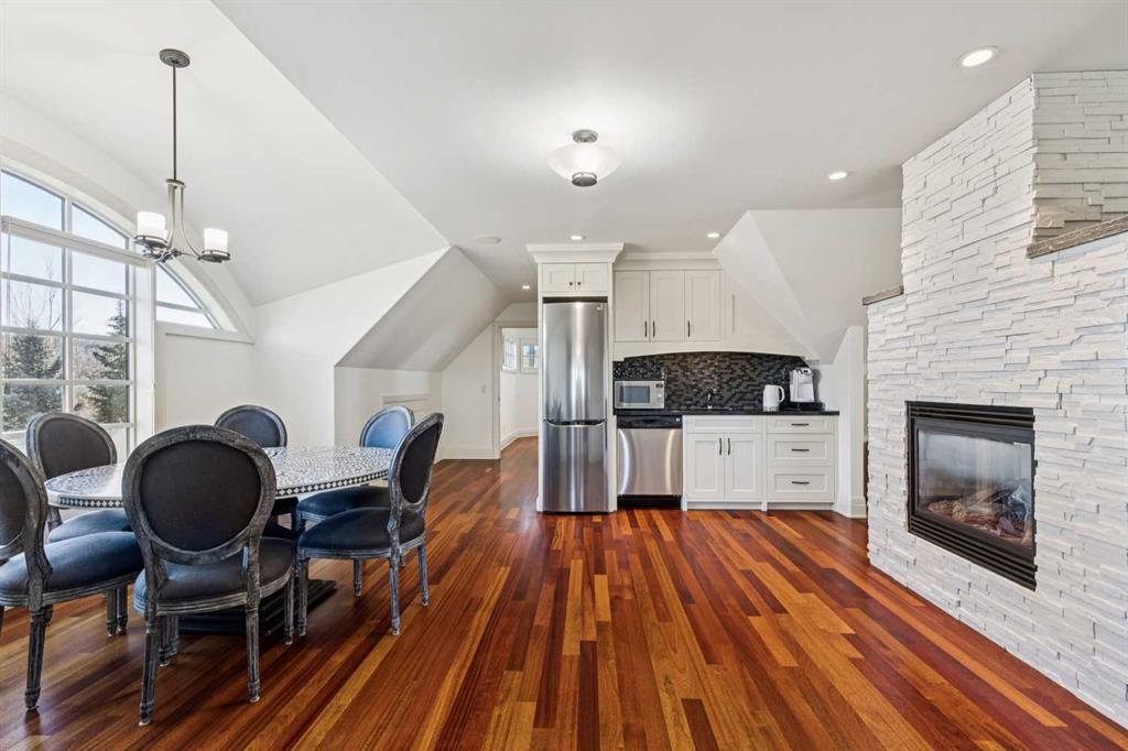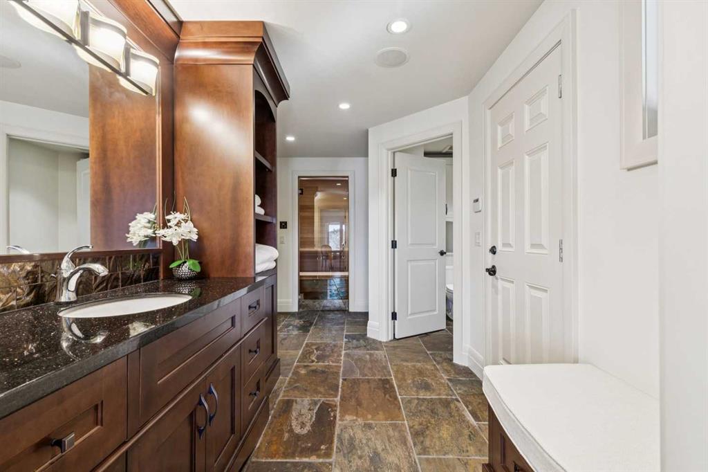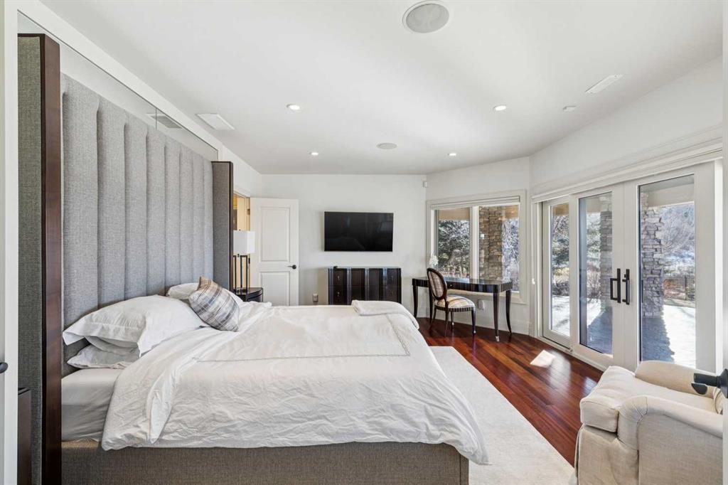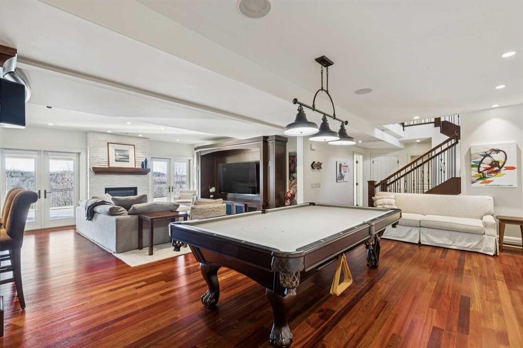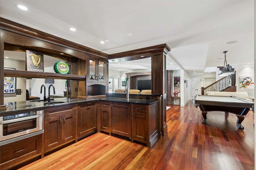 The walkout basement fully capitalizes on the home’s gently sloping lot and spectacular western exposure. An additional bedroom includes its own walk-in closet and full ensuite, a gym—currently utilized as a bedroom—opens through sliding doors to an elevated hot tub perfectly positioned for breathtaking sunset mountain views. A sauna, and steam shower—creating a true private resort experience. Designed for recreation and relaxation, the lower level features 9-foot ceilings, in-floor heating, a wet bar with beer tap, pool table and media area.