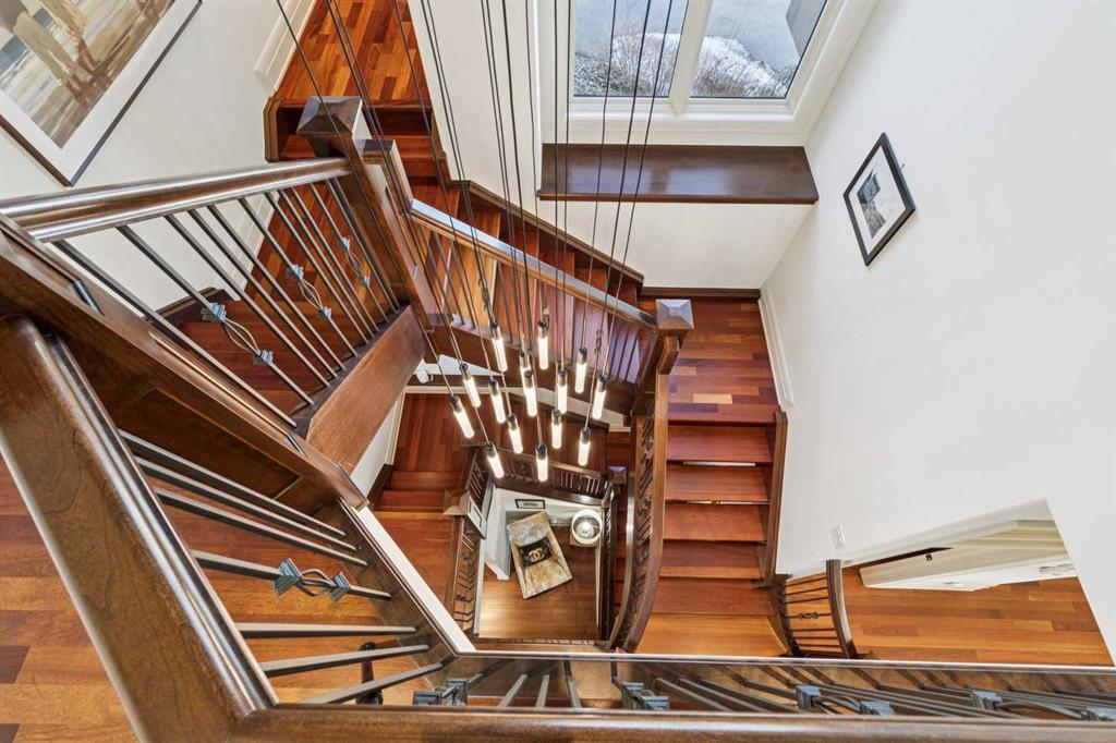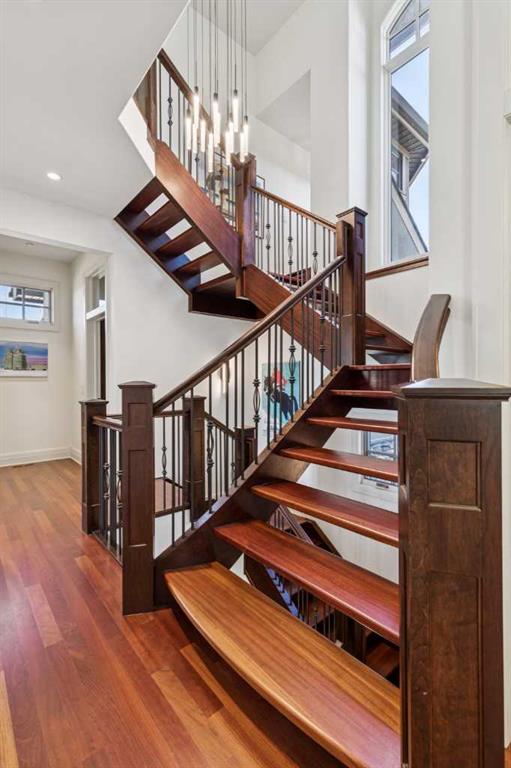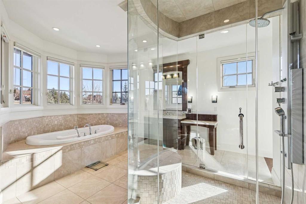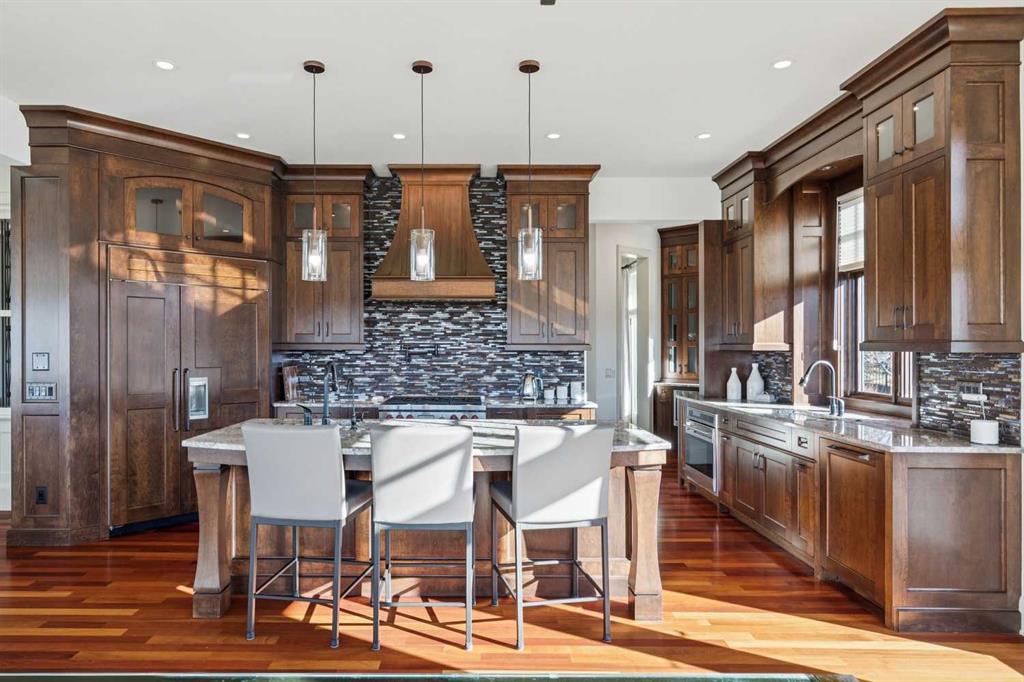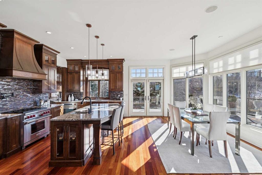 The walkout basement fully capitalizes on the home’s gently sloping lot and spectacular western exposure. An additional bedroom includes its own walk-in closet and full ensuite, a gym—currently utilized as a bedroom—opens through sliding doors to an elevated hot tub perfectly positioned for breathtaking sunset mountain views. A sauna, and steam shower—creating a true private resort experience. Designed for recreation and relaxation, the lower level features 9-foot ceilings, in-floor heating, a wet bar with beer tap, pool table and media area.