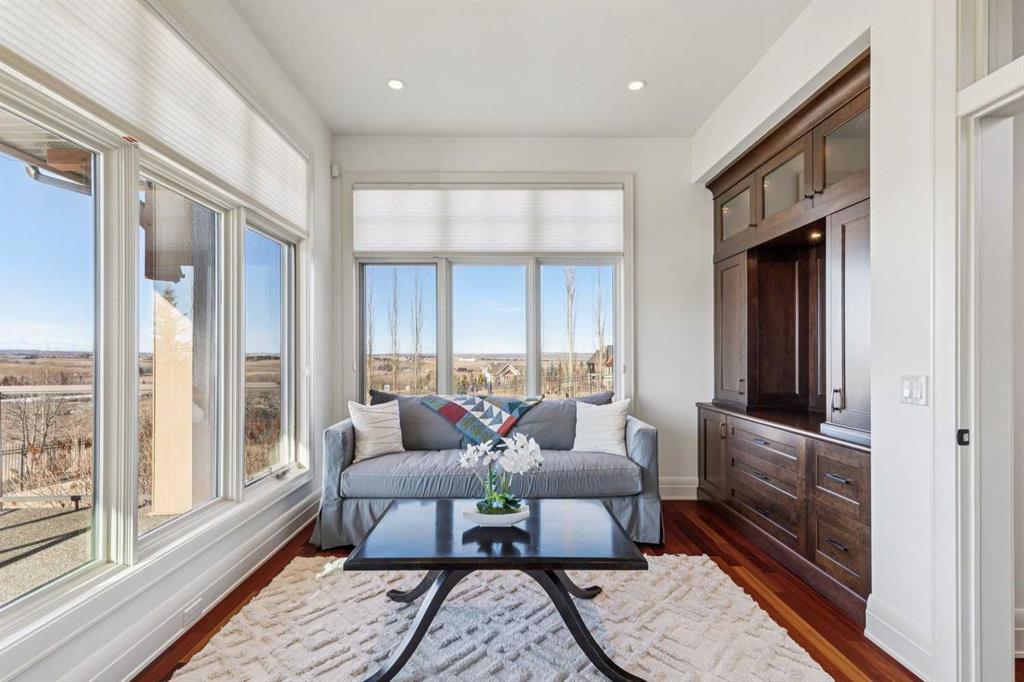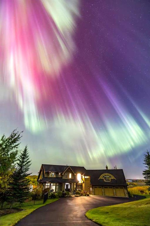 Set on over 4.5 acres this extraordinary John Haddon-designed estate captures commanding mountain and city views from nearly every vantage point. Backing onto a protected environmental reserve and located within Foothills County’s celebrated “Dark Sky Country” nocturnal preserve. The property offers an unparalleled blend of privacy, luxury, and natural beauty—while remaining remarkably connected. Calgary’s Stoney Trail is less than 10 minutes away, Priddis Greens Golf Course is nearby, and the Rocky Mountains are an easy drive from your doorstep.