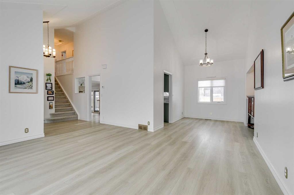 From the moment you step inside, soaring vaulted ceilings and abundant natural light create an open, welcoming feel. The entire main and upper levels have been thoughtfully updated with luxury vinyl flooring, fresh white paint, and stylish new lighting, giving the home a bright, modern feel throughout.