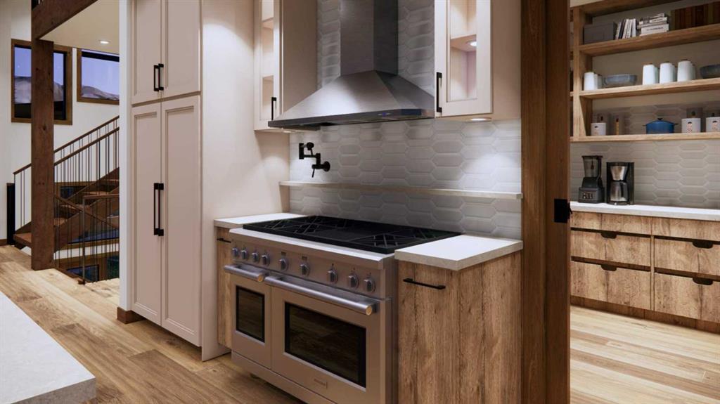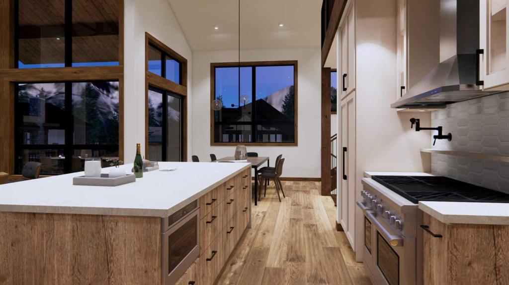 Step into luxurious living with this exceptional estate home, perfectly positioned on the renowned Silvertip Golf Course. Spanning nearly 4400sf, this exquisite residence features 5 spacious bedrooms and countless premium amenities designed to elevate your lifestyle. The home welcomes you with a grand foyer that seamlessly flows into the mudroom where you'll find built-ins, bench seating, and custom cabinetry while the triple car garage offers plenty of space for vehicles and gear. On this first floor, you’ll find a well-appointed home gym with glass enclosure and two of the five bedrooms offering comfort and versatility. The large rec room, complete with a wet bar and second gas fireplace is perfect for entertaining or unwinding after a day on the course. An elevator provides convenient access to all three floors, ensuring every level can be easily navigated. The heart of this home is undoubtedly the kitchen. Adorned with massive vaulted ceilings and nearly 360-degree windows capturing stunning views of Canmore’s most famous mountain ranges. Equipped with a built-in fridge, a generous butler’s pantry, large quartz island, 6 burner gas fireplace, and opulent wine cellar. Centered around a show-stopping stone-facing gas fireplace, the living room opens to a generous wrap around deck with unparalleled views and all day sun. Past the dining room and down the hall, you'll find the primary suite including an 11x17 walk-in closet and dreamy ensuite with double vanities and water closet, and a private balcony. Heading upstairs, you're greeted by an open air loft, 2 additional bedrooms and a Jack and Jill bathroom, providing both privacy and comfort for family members or guests. Blending luxury, comfort, and nature in a pristine golf course setting, experience the pinnacle of mountain living in this premier home built by one of Canmore's most notable builders, Distinctive Homes. *all interior selections can be chosen and customized by the buyers*