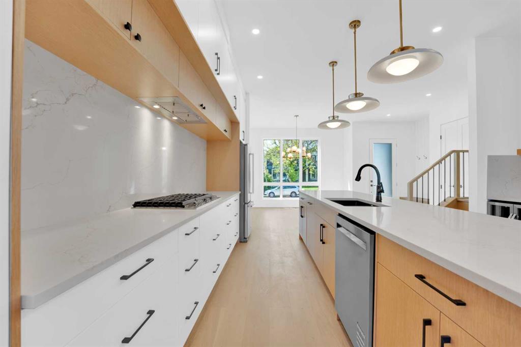 Discover inner city luxury in this brand new 6 bedroom masterpiece with a fully legal 3-bedroom basement suite in the heart of the community of Mount Pleasant NW! Offering over 2,800 sq. ft. of beautifully developed living space, this home combines bold design, top-tier finishes, and everyday functionality. The main level features upgraded 10 ft ceilings, oversized windows, and an open-concept layout combined with patio doors leading to the outdoor deck, perfect for entertaining. The designer kitchen features quartz counters, custom cabinetry, a massive island, built-in pantry, and premium stainless-steel appliances. Relax in the elegant living room with a sleek gas fireplace or step out to your sunny private yard. Upstairs, the primary suite is a showstopper with a spa-inspired ensuite with heated floors and huge walk-in closet, accompanied by two more spacious bedrooms and laundry. The legal basement suite offers a separate entrance, 3 bedrooms, a full kitchen, bath, laundry and tons of storage—ideal for rental income or extended family. Complete with a double detached garage, this residence blends timeless elegance with exceptional convenience—offering effortless access to downtown via Centre Street and 4th Street. Perfectly located just steps from Confederation Park, within walking distance to excellent schools including St. Joseph Elementary & Junior High and École de la Rose Sauvage, and only minutes from The Winston Golf Club, this coveted location truly captures the best of inner-city living.