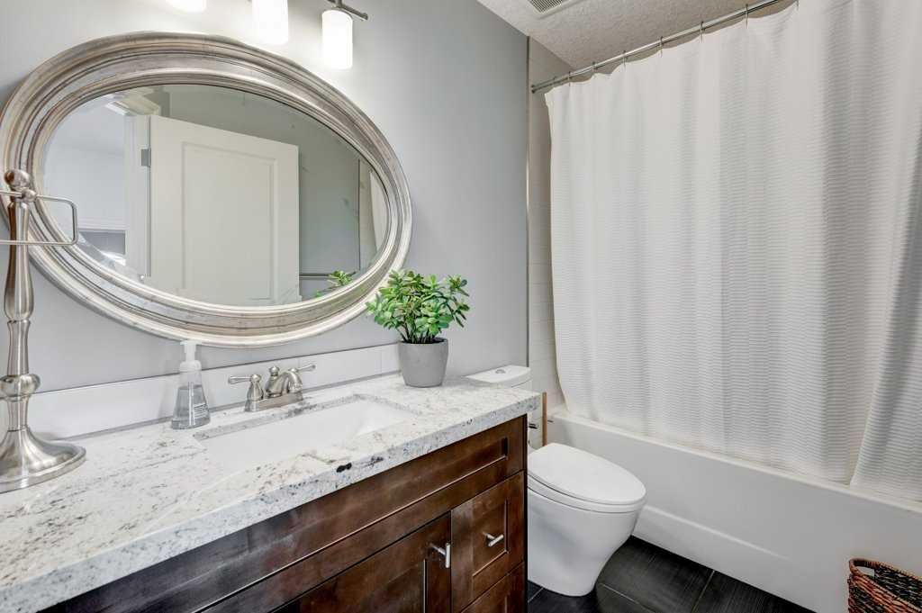The fully developed walkout basement adds even more versatility, featuring a spacious rec room with a full wet bar, a fourth bedroom, and another full bathroom. The basement floors have in-floor heating, ensuring comfort year-round. From here, step directly into your private, east-facing backyard that provides a quiet setting for both relaxation and hosting.