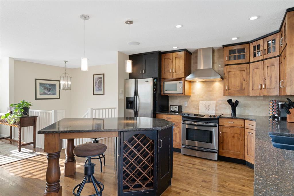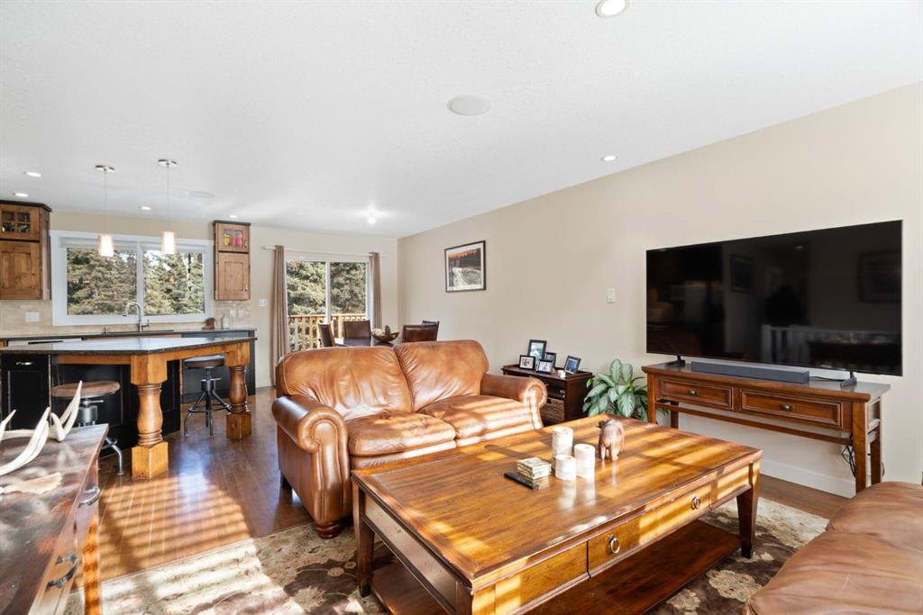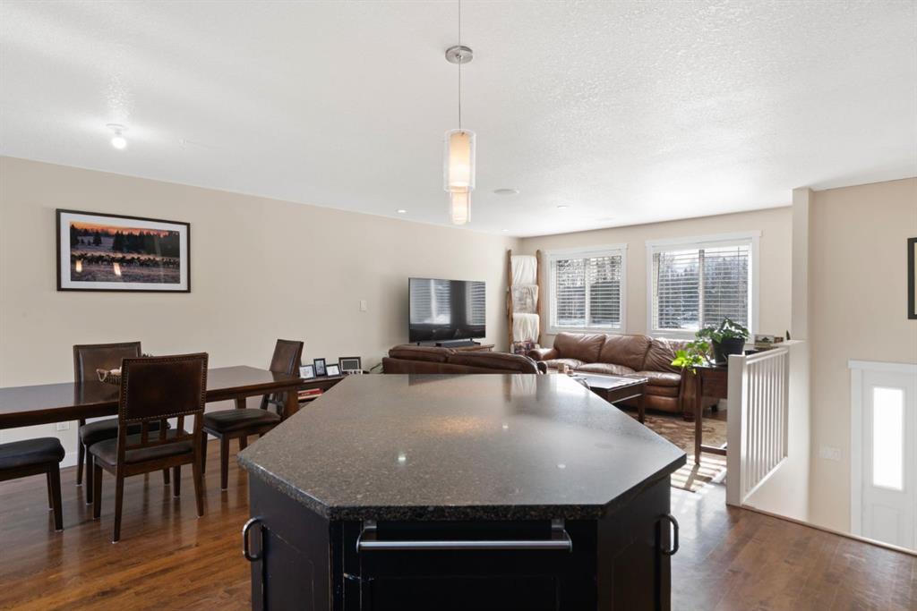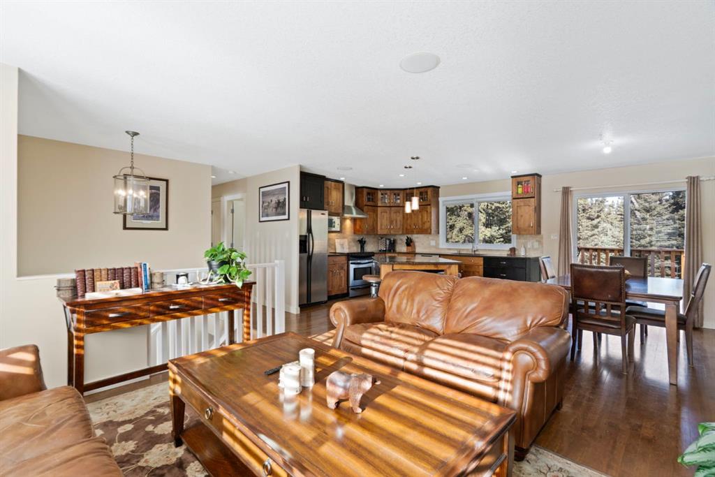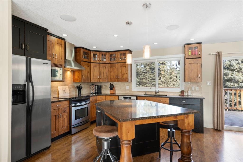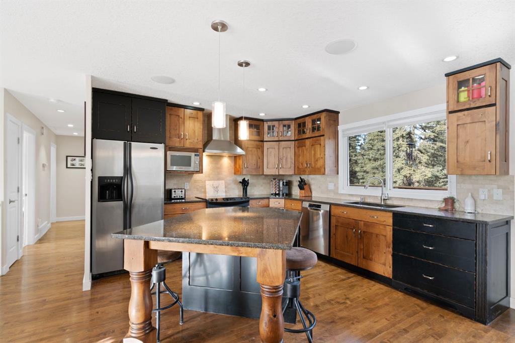 The well-maintained bi-level home features a bright and welcoming main floor with warm hardwood flooring and large windows that capture natural light and views of the surrounding landscape. The kitchen is both functional and inviting, complete with rich wood cabinetry, granite countertops, stainless steel appliances, and a central island with seating. The adjacent dining area opens onto an expansive wraparound deck that spans the length of the home, creating a seamless indoor-outdoor connection and providing incredible space for entertaining, relaxing, and enjoying the peaceful setting.