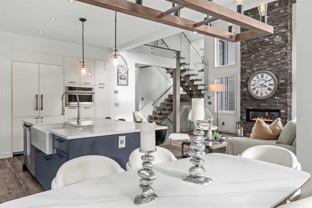 Mountain-Modern Living on the 10th Hole of Stewart Creek Golf Course! Welcome to a rare offering in one of Three Sisters’ most peaceful and private enclaves .A stunning mountain-modern single family home backing directly onto the 10th hole at Stewart Creek Golf Course. Thoughtfully designed with function, style, and environmental consciousness, this 4-bed, 4-bath residence offers over 3,500 sq ft of refined living with beautiful natural light, warm timber accents, and a true connection to the surrounding landscape. Natural timber beams, soaring ceilings, and expansive windows create an inviting alpine aesthetic while framing select views of the golf course and mountains. Enjoy an unobstructed and private backdrop, creating a sense of calm and separation rarely found. A commitment to sustainability and safety elevates this home beyond the ordinary. Featuring solar panels for energy efficiency and Fire-Smart roof sprinklers, the property is designed for both modern living and long-term peace of mind. Inside, the open-concept main level seamlessly blends the chef-inspired kitchen, dining space, and living room, creating a bright and functional hub ideal for gatherings and everyday life.