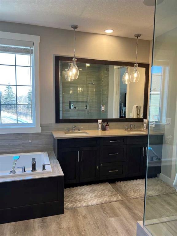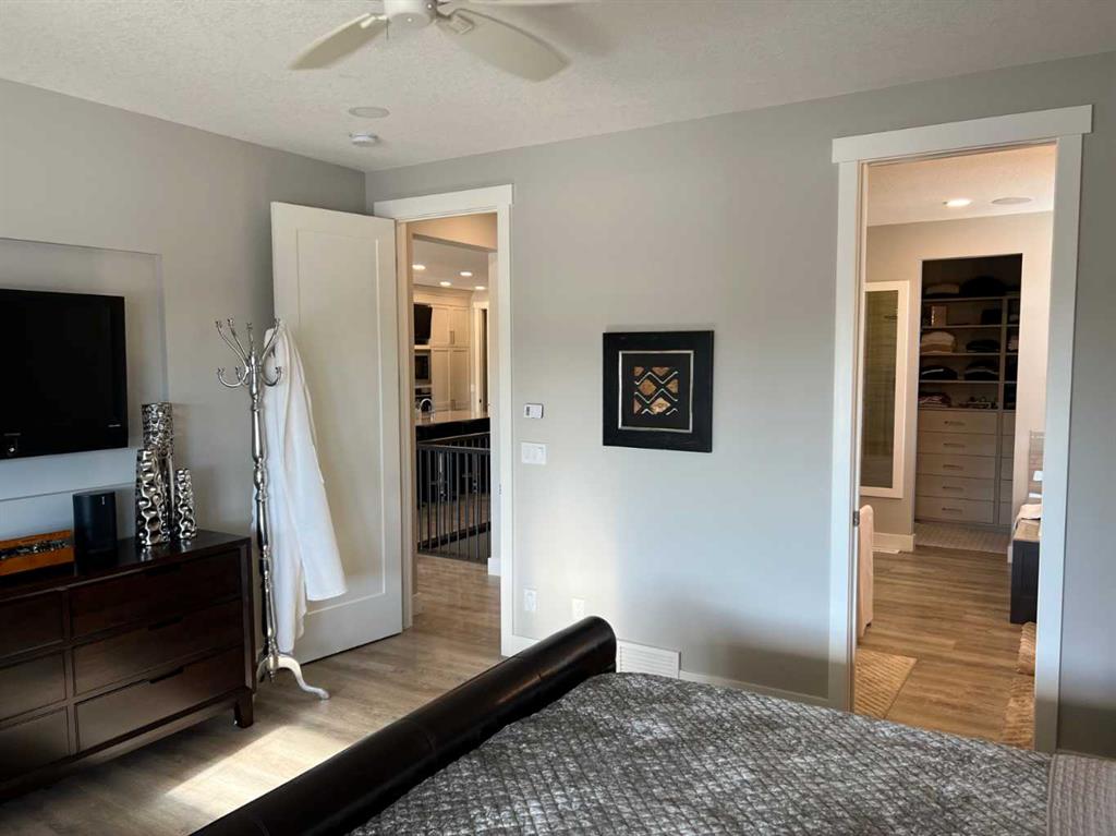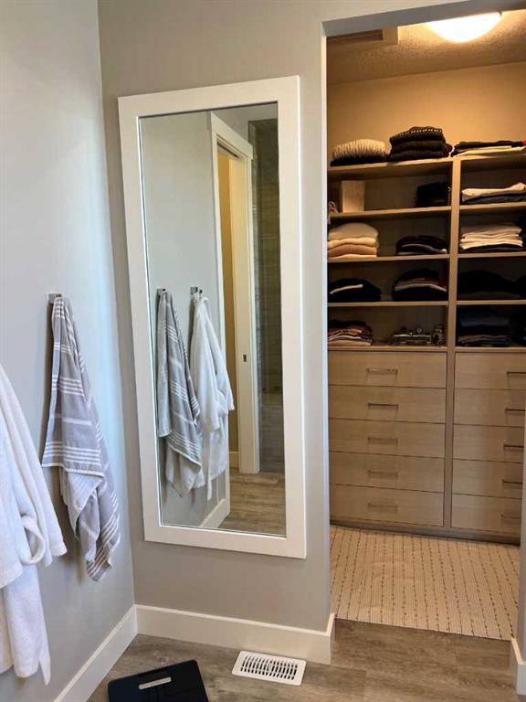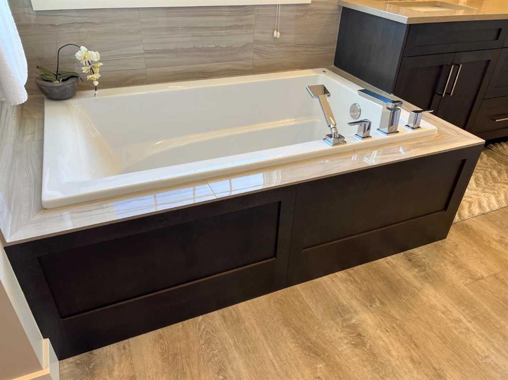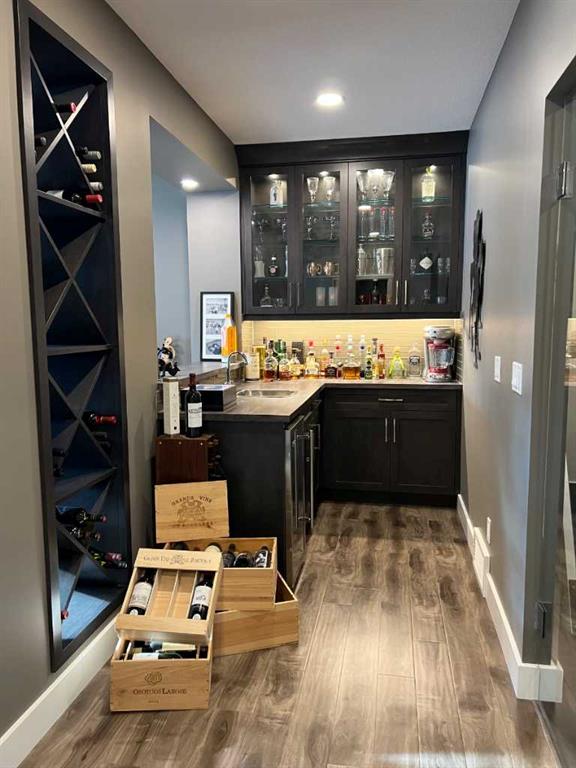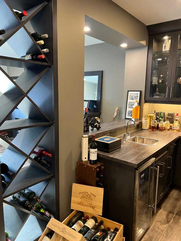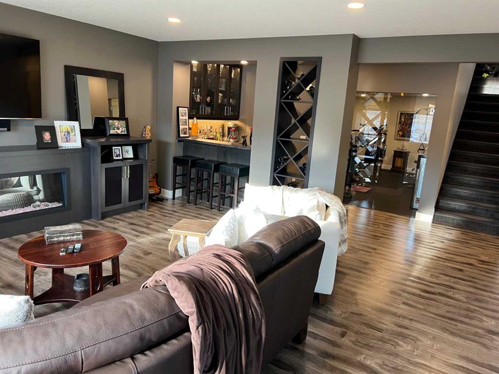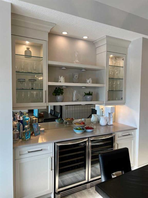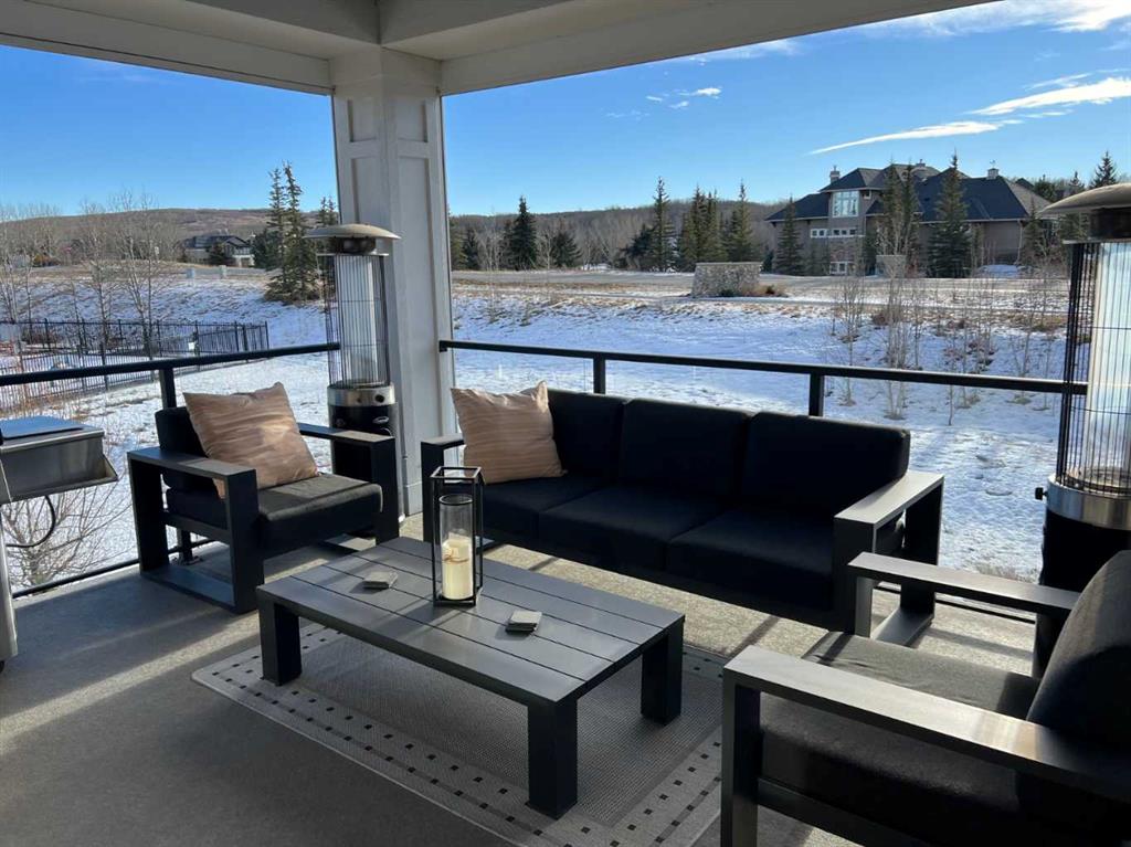 Click Brochure Link for more details. A rare opportunity to own one of the most desirable estate villas in the lock & leave community of Swift Creek Estates, within the prestigious community of Elbow Valley. The last comparable (over a year ago) sold in days - and none have come to market since. Built in 2019 and exceptionally lightly lived in, this move-in ready walkout bungalow offers the largest floorplan with almost 3000 sqft fully developed, the largest garage, and sits on one of the largest lots (.15 acre) in the community. Positioned on a premium south-facing end lot, the home captures both morning sunrises and evening sunsets, surrounded by the beautiful Elbow Springs golf course and Fisherman’s Lake. $200k in carefully selected upgrades elevate the home well beyond the original builder spec. 10 & 9’ ceilings, upgraded flooring, designer fixtures, extensive custom millwork, and built-in home audio with a multi-zone in ceiling SONOS system create a refined yet extremely comfortable living environment. The kitchen features quartz countertops and an upgraded premium stainless steel appliance pkg with a Wolf steam oven, 36” dual fuel range, full-size fridge and freezer, convection microwave, custom pull-out pantry tower, and extensive full-height cabinetry. The dining area showcases built-in glass cabinetry with dual wine fridges, while the lower level offers a fully appointed wet bar with a custom decorative wine wall, built-in glass cabinetry & beverage fridge — ideal for entertaining. The spa-inspired steam shower is complemented by an RO & remin system with dechlorinated water & softene. The on-demand under sink system provides both hot & cold water and the laundry/mudroom contains sink as well as steam washer & steam dryer. The lower level bedrooms feature custom millwork and both family room & rec room boast fireplaces with custom millwork with mesh-cabinetry and hidden electrical for audio components. Built-in mirrors and art niches throughout. Central A/C as well as full-power screens on the upper deck create a true 3-season outdoor living space. The oversized, heated double garage is a standout feature, complete with hot & cold water, dog wash station, full ProSlat wall system, and commercial-grade shelving & can easily accommodate a lift for car enthusiasts. Professionally landscaped with the addition of 27 trees & 55 shrubs, as well as upgraded wifi smart-watering irrigation, the property offers both privacy & beauty. Security is thoughtfully addressed with home monitoring as well as the on-site manned community security — ideal for a lock-and-leave lifestyle.