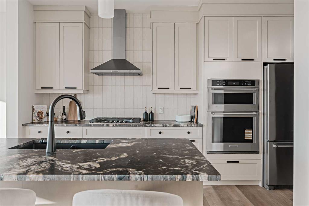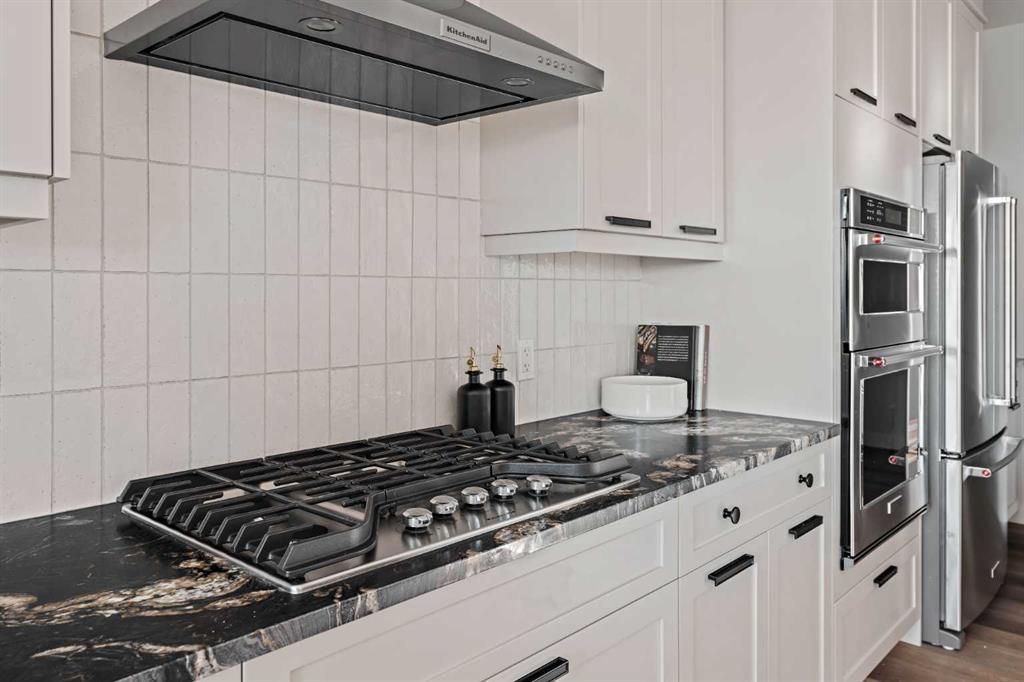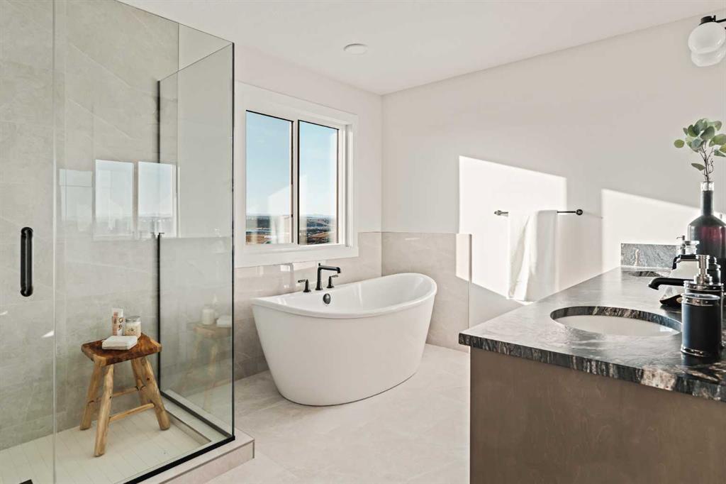 Welcome to the brand-new Accadia by Brookfield Residential, a thoughtfully designed home that blends modern luxury with functional living. Featuring 7 bedrooms and 5 bathrooms, including a legal 2 bedroom suite, this home is perfect for a large family, multi-generational living, or investors that want exceptional value today with incredible resale value long term in this versatile plan that provides endless opportunities. Perfectly situated on a 36' wide traditional lot with a 28’ wide home, this striking residence offers a seamless combination of style and comfort for today’s lifestyle. Elevated interior design carries throughout this stunning entire estate home, providing a timeless space where you'll not only be proud to live but excited to host and entertain. Step inside and be greeted by a bright, open-concept layout featuring 9’ ceilings throughout the main level, designed to maximize space and natural light. The main floor boasts a gourmet kitchen complete with under-cabinet lighting, built-in appliances including a gas cooktop, a full butler's pantry, and high-end finishes including two tone cabinetry with leather finish granite - all designed to make cooking and entertaining effortless. Adjacent to the kitchen, enjoy a spacious dining area with patio doors leading to the rear deck and expansive backyard. The dining space opens to the main living area which has a central fireplace with a beautiful arched surround. A wall of windows across the back of the home capitalize on the southwest backyard exposure - maximizing natural light all year long. Convenience and flexibility are at the heart of this home with a main-floor bedroom with full bathroom that features a tiled shower with 10mm glass, making it ideal for guests or multi-generational living. Natural wood & iron spindle railing lead to the upper level where you're greeted by an expansive central bonus room that separates the primary suite from the other three bedrooms - adding privacy & everyday functionality. The main primary suite spans the entire width of the home and overlooks the backyard, complete with a spa-like 5 pc ensuite with an oversized tiled shower with 10mm glass, soaker tub, tile wainscotting, dual vanity, private water closet & a sprawling walk-in closet. The upper level is complete with a second primary suite complete with its own full ensuite and walk-in closet. The upper level is rounded out with two more bedrooms (4 total), a 5pc main bathroom, laundry room and linen closet. The lower level offers a spacious 2 bedroom legal suite complete with a full kitchen, dining area, living room, bathroom and laundry - all accessed by its own private entry! Lastly, enjoy an oversized double attached garage and optimal sunshine in the private southwest-facing backyard. With both builder’s warranty and Alberta New Home Warranty, enjoy complete peace of mind with your purchase. Discover the perfect blend of style, comfort, and functionality in this remarkable Brookfield Residential creation.