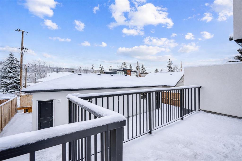 This BRAND NEW, MOVE-IN READY infill in MONTGOMERY checks all the boxes for stylish, functional inner-city living—with the added bonus of a fully private 1-BED WALKOUT SUITE (approved with permits and subject to final inspection). Whether you're looking for extra income, space for guests, or a little more flexibility in your day-to-day, this one delivers. Step inside to a bright, welcoming foyer with a full coat closet—simple, clean, and easy to come home to. At the front of the home, the dining area offers space for a full-size table and flows naturally into the heart of the home: the kitchen. The kitchen brings a timeless feel with classic SHAKER-STYLE CABINETS, a custom-built hood fan with oak accents, glass display shelves with LED lighting, and a quartz-topped island with waterfall edges. You’ll also find an upgraded KITCHENAID APPLIANCE PACKAGE, including a gas range with pot filler and a large KitchenAid French door fridge. There’s also a convenient coffee or beverage station, complete with room for a beverage fridge. The living room is warm and elevated, featuring an INSET GAS FIREPLACE with full-height tile surround and built-in display shelving with closed cabinetry for extra storage. Natural light pours in through large rear sliders, leading out to the sunny SOUTHWEST-facing back deck with privacy screens already installed. Off the rear entry, the mudroom includes built-in shelving, a bench, and cubbies, with access to the powder room—private, polished, and finished with a skirted quartz counter and decorative framed mirror. Upstairs, the primary suite is a calm retreat with a tray ceiling, spacious walk-in closet, and a stunning ensuite that includes a freestanding soaker tub, walk-in shower with DUAL RAIN HEADS, and double vanity. Two more bedrooms, a full bath with attractive STACKED HORIZONTAL TILE, and a laundry room with designer tile flooring complete the upper level. Downstairs, the WALKOUT SUITE (approved, subject to final inspection) is bright, smartly designed, and full of quality finishes. The living room has a BUILT-IN FLOATING MEDIA CENTRE, and the full kitchen mirrors the same modern style as upstairs, with warm oak flat panel cabinetry and quartz countertop. There’s a full bathroom, stacked laundry, and a large bedroom with walk-in closet—plus its own separate entry for total independence. Montgomery offers easy access to main routes like 16th Ave and Memorial Drive while keeping you steps from nature. Walk to Shouldice Park, Bowmont Park, and the Bow River Pathway system for daily runs, dog walks, or weekend bike rides. You're minutes from Montalcino Ristorante, NOtaBLE, and lots of local coffee shops, restaurants, and bars for food and coffee favoUrites. Groceries, schools, Market Mall, U of C, and Foothills & Children's Hospitals are all close by, making this one of Calgary’s most livable and up-and-coming inner-city communities. Call today to view! *Photos from Show Suite