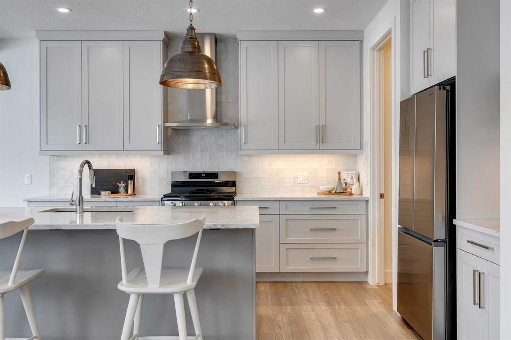 This Gorgeous Home is situated in the community of Rivercrest near schools, parks, sports facility and other amenities. Backing onto a greenspace is a walking path with plenty of trees and you may possibly see some wildlife. Inside starting in the foyer on the main floor, you will notice 9ft walls and towering 8ft doors that grant you access to the mudroom, pantry, kitchen, nook, living room and half bath. The picturesque windows gives so much light that you don’t even need to turn on the lights until dusk. The living room’s focus is a 56” linear gas fireplace with mantle. The spacious designer kitchen includes quartz counters, under cabinet lighting and taller cabinets to ceiling that are equipped with soft close doors and drawers. The Kitchen Island houses a microwave cabinet and dishwasher and is capped off with a 15" overhang quartz counter that includes an undermount graphite sink. This chef’s kitchen is complete with Stainless Steel refrigerator, gas stove, decorative funnel fan, dishwasher and built in microwave with trim kit. On the upper floor you will be greeted by a beautiful bonusroom, also included on the upper floor is a spacious laundry room complete with a window for additional light, cabinet with top mount sink and built on site shelving. Stunning vaulted ceilings add incredible height and an airy feeling in the Primary bedroom and bonusroom. PRIMARY ENSUITE has an executive full tiled shower with rain head, hand shower and bench all enclosed with a 10ml glass pivoting shower door and side panel. The ensuite’s taller vanity cabinet is equipped with plenty of storage space and has double undermount sinks that complimented with quartz. Across from the vanity you will find a stunning oval freestanding soaker tub perfect for the end of day “me time”. The MAIN BATH is finished with a fiberglass deep tub and tiled walls and the vanity is topped with quartz and undermount sink. Janssen Homes is known for their built on site finishing's which include the deacons bench in foyer, solid pantry shelving, lockers in mudroom, closets and built in linen on upper floor hallway which all helps with keeping life organized. Now, for the flooring, on the main area, stairs going up to and in bonsuroom is finished with Luxury Vinyl Plank, which is perfect for those busy homes. There is tile in the laundry room, all baths, surrounding basement wet bar and entrance area in front of walk out patio doors. Tile in the primary and basement bath include programmable in floor heat. There is carpet on upper hallway, bedrooms, closets, recreation room and stairs going down to walk out level. Walk out basement is finished with a wet bar cabinet with sink and topped off with quartz, a recreation, family room, full bath and bedroom. The OVERSIZED double garage will hold two vehicles comfortably and still leave room for storage. This beautiful home will be available end of January, Happy New Year!