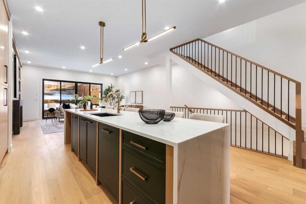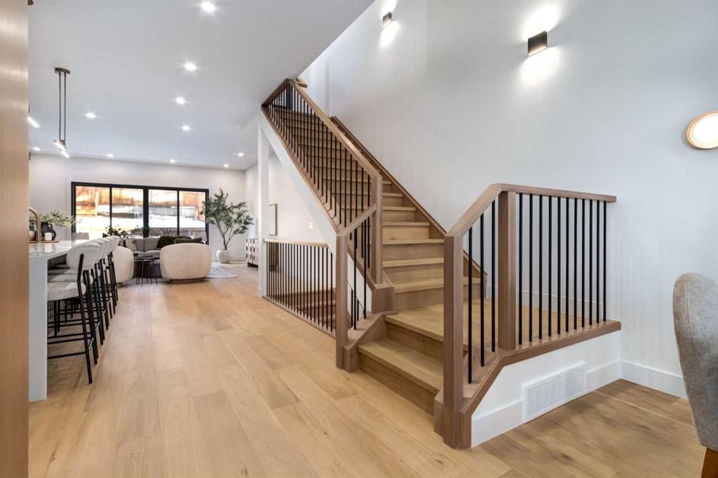 Click brochure link for more details** OPEN HOUSE: SATURDAY & SUNDAY (NOV 29 & 30) 1:00 PM - 3:00 PM. Introducing an unparalleled opportunity by Elite Craft Builders. Discover brand-new, bespoke luxury in one of Montgomery's most desirable locations. This stunning semi-detached residence offers 3155 sq ft of total living space with 2,379 sq ft above ground of exceptional, high-end living space, featuring white Oak hardwood and exquisite finishing throughout. The main floor boasts a gourmet kitchen centered around a magnificent waterfall island with high-end quartz, complete with a panel-ready Dacor fridge and a pot filler. The bright living area features a sophisticated gas fireplace with a custom mantel, alongside a dedicated office space. Upstairs, the primary retreat provides a true sanctuary with its own private balcony and spectacular River Valley Escarpment views, complemented by a luxurious ensuite that includes a smart toilet. The home is completed by a versatile bonus room/loft, which can be used as a spacious lounge or flex room, a fully finished lower level with a wet bar, and an attached front garage. Location is paramount: you are steps from the Bow River Pathway and Shouldice Park, and just minutes from Market Mall, Foothills, and Children's Hospital. This address offers the perfect blend of luxury, privacy, and ultimate connectivity.