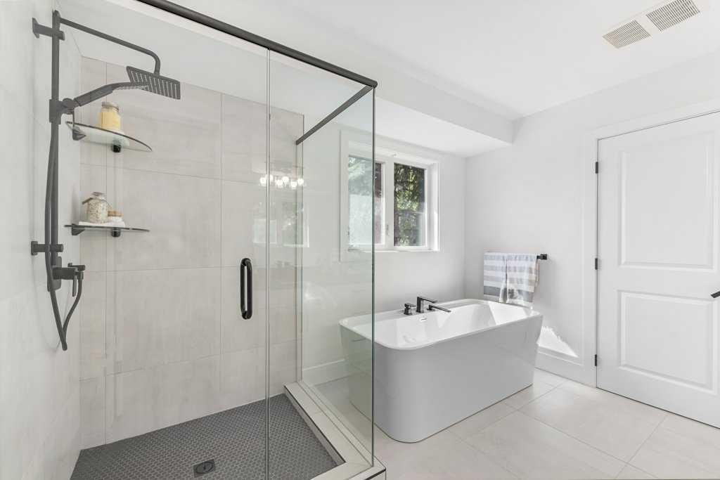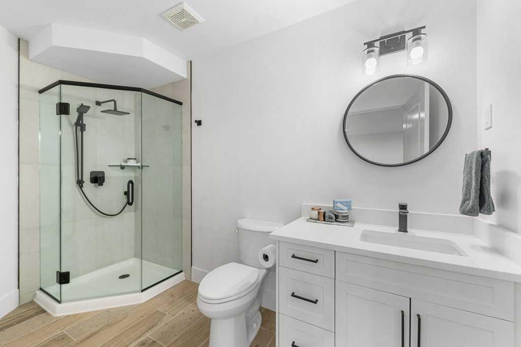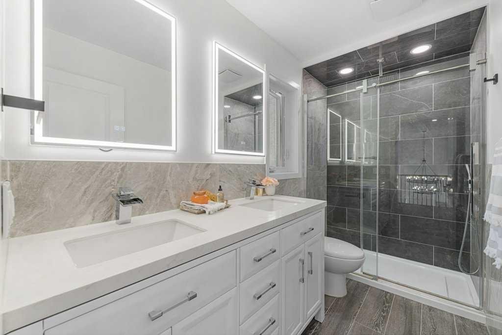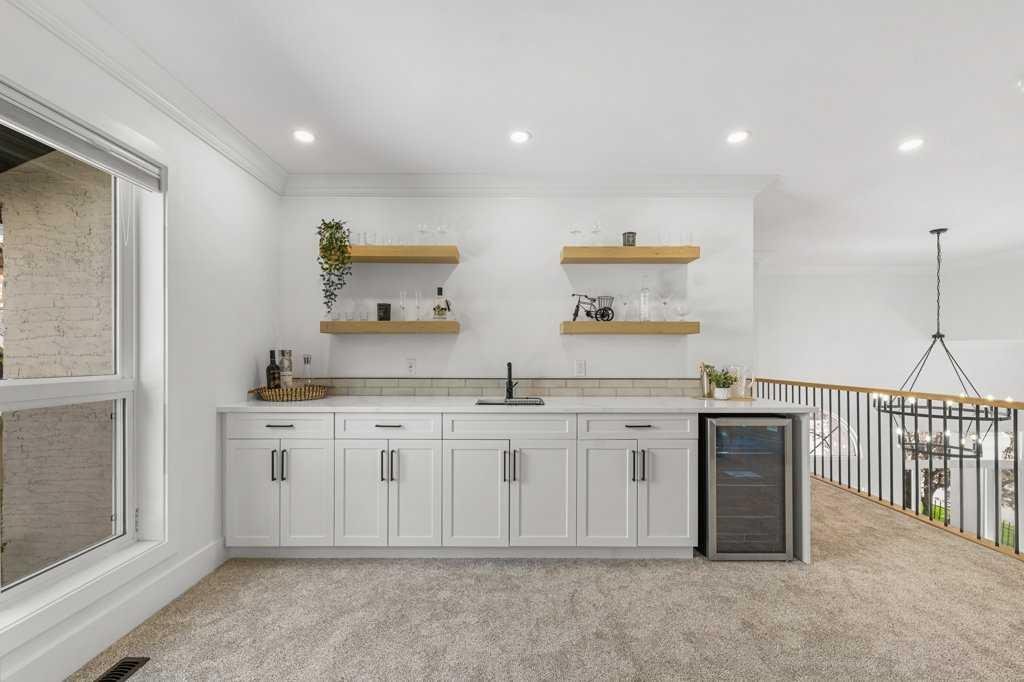 Upstairs, you'll find three generous bedrooms, including a serene and luxurious primary retreat with a spa-inspired ensuite featuring dual vanities, an oversized glass shower, and a deep soaker tub—all framed by beautiful modern tilework. The upper level also features a spacious bonus/family room complete with a wet bar, perfect for entertaining or relaxing evenings.