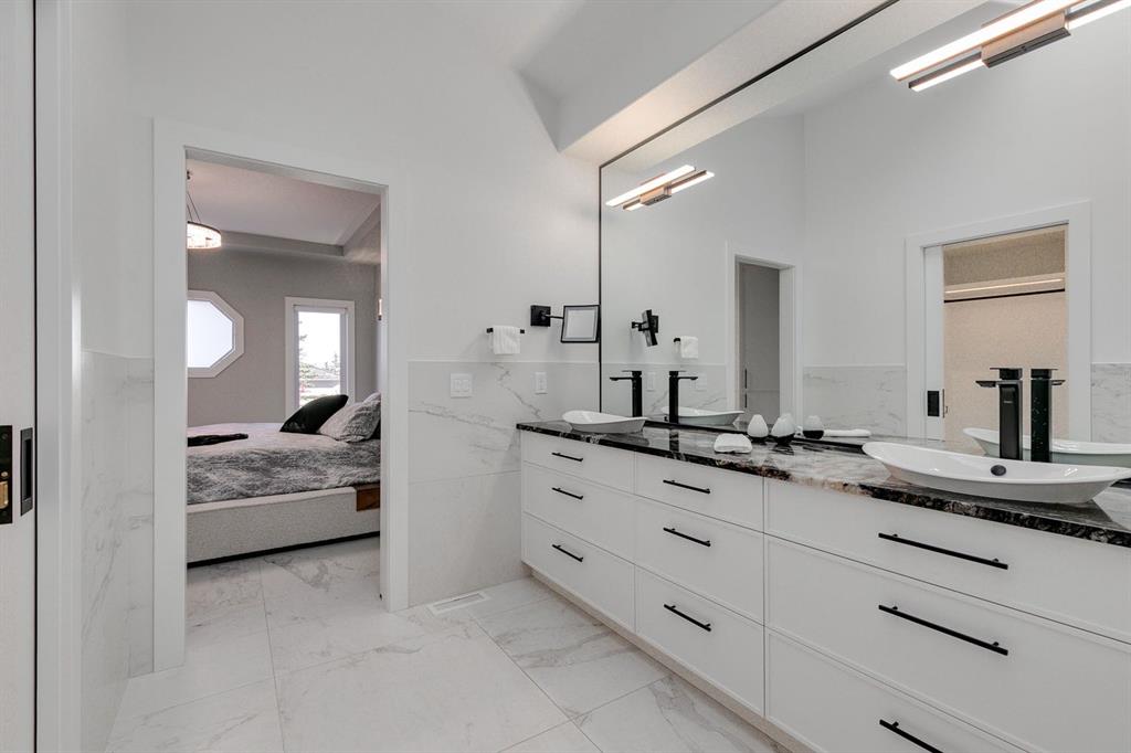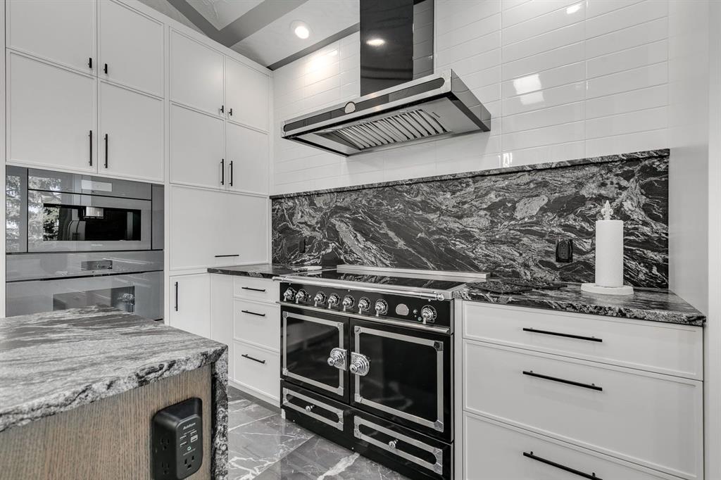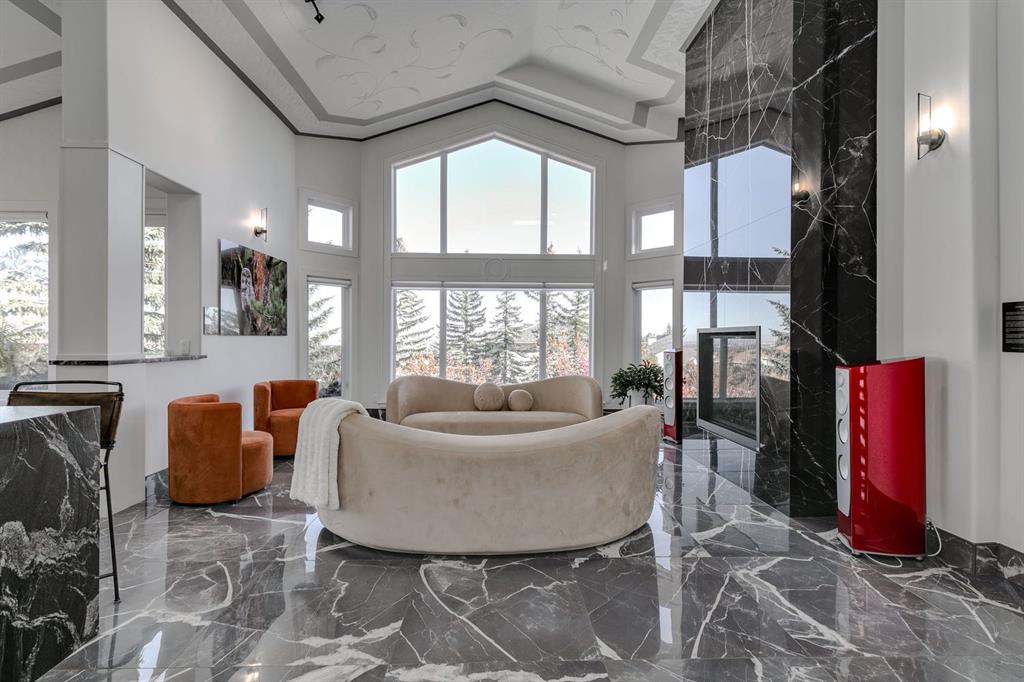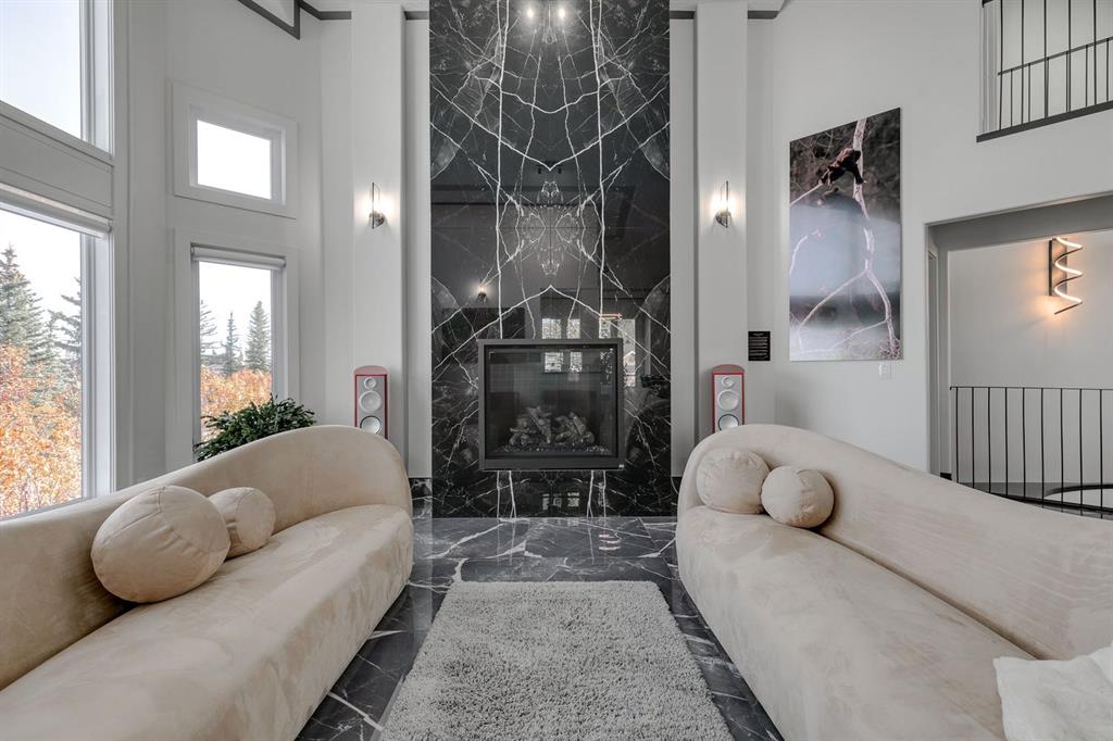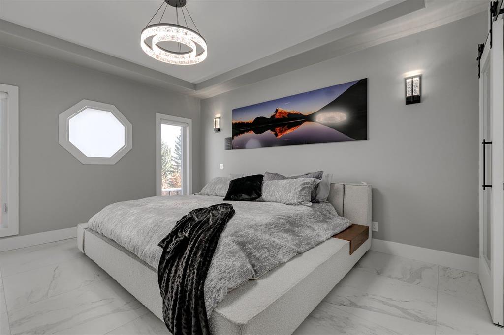 Outside, the oversized city corner lot provides a private oasis, surrounded by green space pathways and offering breathtaking city views. Imagine enjoying the built-in BBQ area, cozying up by the wood-burning fireplace, or unwinding in the private hot tub—truly a serene retreat for outdoor living.