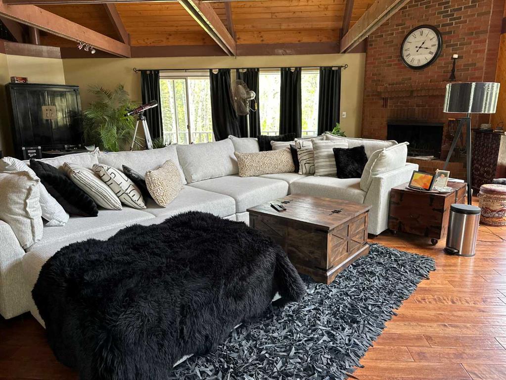 Experience ultimate privacy and serenity at this exceptional acreage in Water Valley. Nestled in a secluded setting just 30 minutes from Cochrane This very private treed acreage is a mix of forested areas and fenced pastureland and open spaces. Located just 30 minutes from Cochrane, this one-of-a-kind acreage is ready for those seeking space, privacy, and direct access to the outdoors The 1.5 Storey home offers 2700 sq/ft of living space with 3 bedrooms and 2 baths, including a stunning Master loft bedroom with vaulted ceilings, ensuite and sitting area. The huge Living room features Open Beam Vaulted Ceiling, cozy up to the large wood burning fireplace on those cool winter nights or go out to your beautiful west facing deck on those warm summer days. This room also features, new hardwood flooring, and lots of windows. The Country kitchen has lots of room for those family gatherings with upgraded appliance lots of cabinetry, large eating area and opens to a large, enclosed deck. The basement is partly finished with a large Family room, Storage room, and laundry room. A new water well was drilled four year ago and supplies the home with over 10 gallons of water per minute. There is an Oversized Double Detached Garage/shop, a fenced dog kennel, chicken coup and a 40x60 Barn/shop that has electricity, water installed with natural gas available. New shingles were put on the House, Barn, Garage and Shed. You will find this property enchanting. Please don’t let this one slip away. Call today to view!