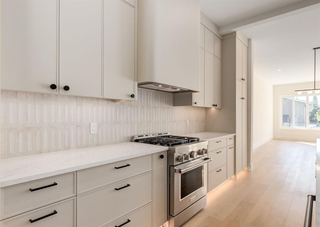 Spectacular custom built home situated on a WIDE 30+ foot lot in the heart of Winston Heights with over 3750 SF of living space. This stunning new build combines thoughtful design, high-end finishes, and a sun-filled south-facing backyard. The open-concept main floor showcases engineered hardwood, a chef-inspired kitchen with curved island and hood fan, striking quartz countertops, designer tile backsplash, 30” commercial gas range plus an additional wall oven with built-in microwave, 65” of refrigeration, a walk-in pantry, and custom locally made cabinetry with undercabinet and toe-kick lighting. The full-width family room is anchored by an inviting gas fireplace, and large windows frame views of the backyard. Upstairs you’ll find three bedrooms—each with a walk-in closet—plus a bright bonus room, convenient laundry with sink, and hardwood throughout. The primary suite is designed for relaxation, featuring a spa-inspired ensuite with heated floors, freestanding tub, oversized shower with bench, large format tiles, and dual vanities. The fully finished basement offers a spacious rec room with wet bar, guest bedroom with walk-in closet, dedicated gym, guest bath, and is roughed-in for hydronic floor heating. The oversized ATTACHED double garage impresses with 14’1” ceilings, insulation (ceiling is spray foamed), drywall, gas heater, and aggregate concrete driveway. Enjoy Calgary’s sunny days in the landscaped backyard featuring lush grass, and a full-width Dura Deck with glass railings. Move-in ready and backed by new home warranty, this home blends luxury, functionality, and peace of mind — walk to The Winston Golf Club, Lina’s Italian Market, Co-op, local school, and so much more. Floor plans and a 3D tour are readily available, providing a glimpse into this stylish home!