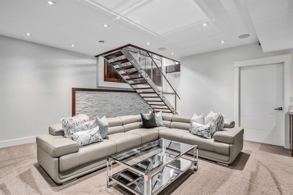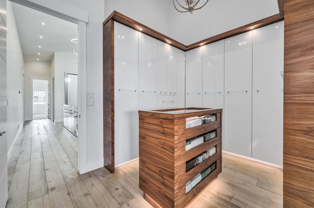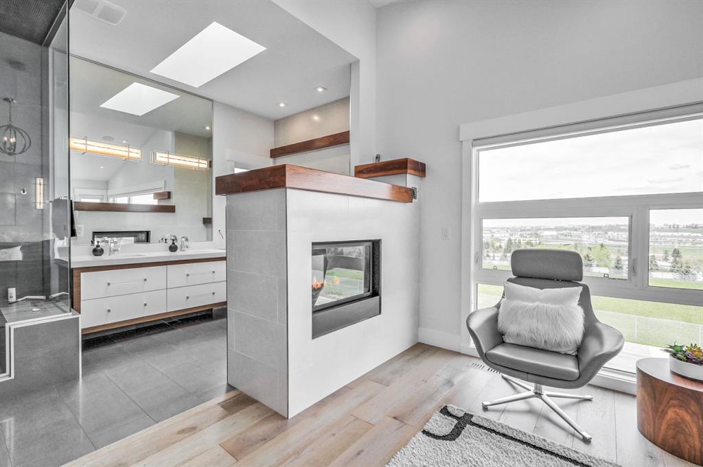 Design details elevate every corner of this home, including a custom solid wood staircase paired with a matching feature wall, premium light fixtures, an Ortal 150 fireplace, LED accent lighting, and extensive custom woodwork — a cohesive design theme carried throughout all levels.
