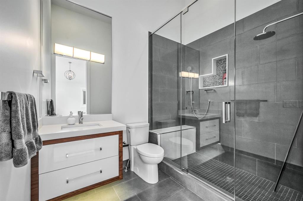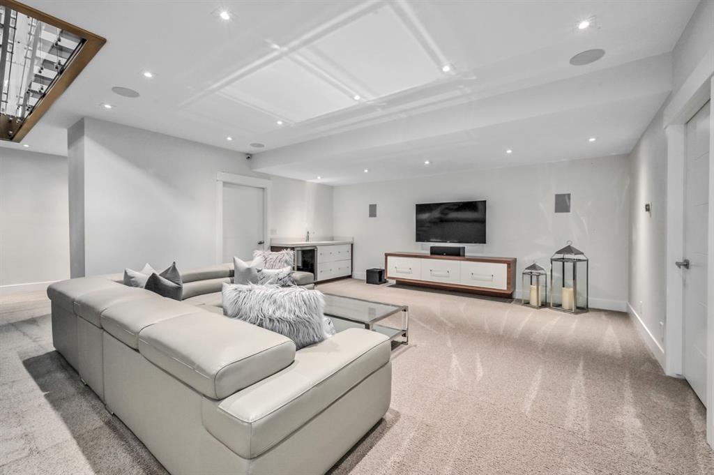 The lower level offers even more space, including a generously sized living room with a second wet bar, a guest bedroom complete with built-in desk, and a full 3-piece bathroom — ideal for visitors, teens, or a private home office setup.