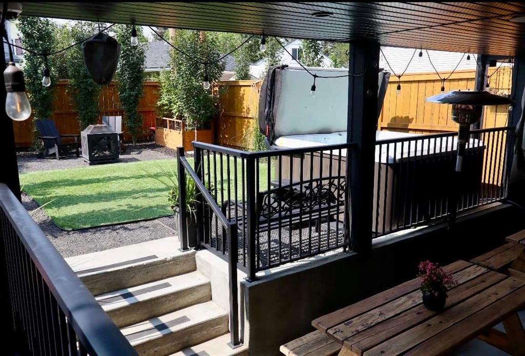 The walkout basement is designed for elevated living, featuring a generous rec room, wet bar, and seamless access to a covered patio with second gas line. Outdoors, enjoy a low-maintenance yard with fia re pit and hot tub—perfect for year-round enjoyment.
