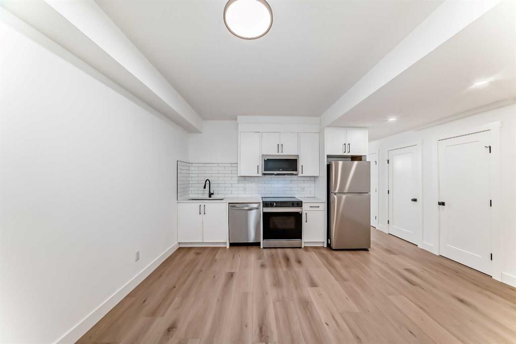 The fully finished legal basement suite offers excellent flexibility and income potential, showcasing vinyl plank flooring, a spacious recreation room, an eat-in kitchen with Samsung stainless steel appliances, two bright bedrooms, a full bathroom, and laundry hookups.