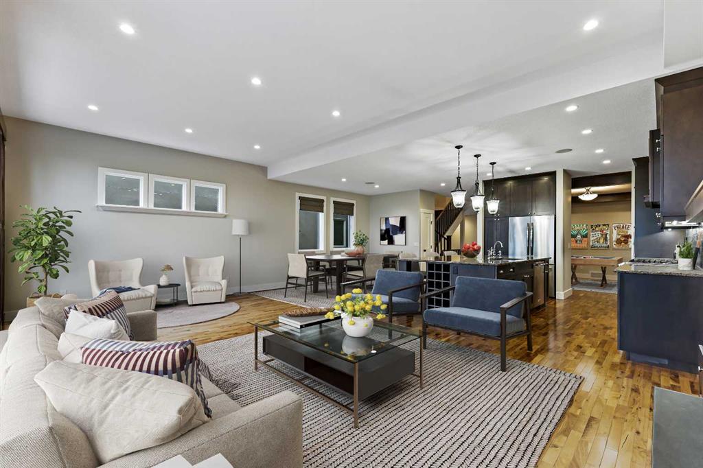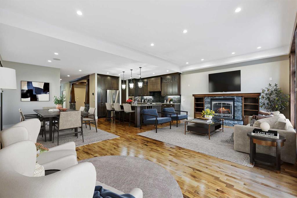 The fully finished lower level adds a fourth bedroom with a walk-in closet and built-ins, a 3-piece bathroom, and a generous family/games room. The backyard is fully fenced and professionally landscaped with mature trees and a Rundle Rock wall. The garage includes epoxy flooring and smart storage. Key upgrades include a brand new high-efficiency furnace, humidifier, smart thermostat (2025), multiple new windows (2016), updated fridge (2022), and a recently updated deck and stairs (2023). Located in a cul-de-sac, just a 10-minute walk to the LRT, Westside Rec Centre, and Aspen Landing. Quick access to Stoney Trail makes commuting easy. Zoned for Public, Catholic, and top-tier private schools including Rundle College and Webber Academy.