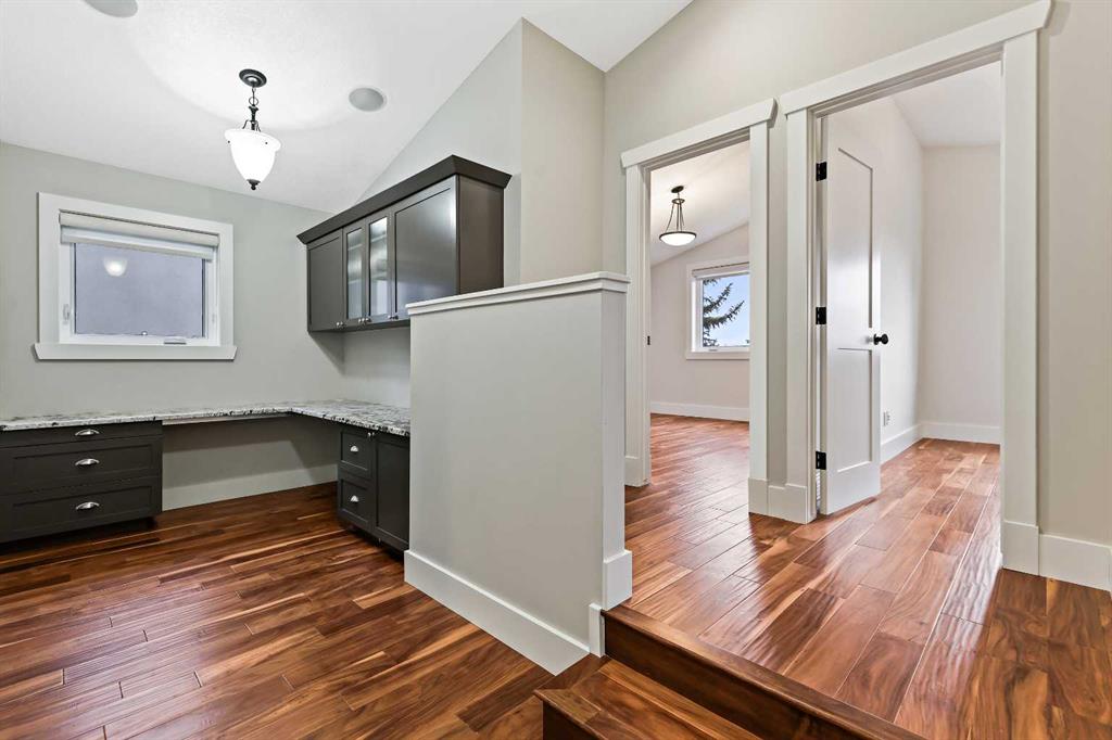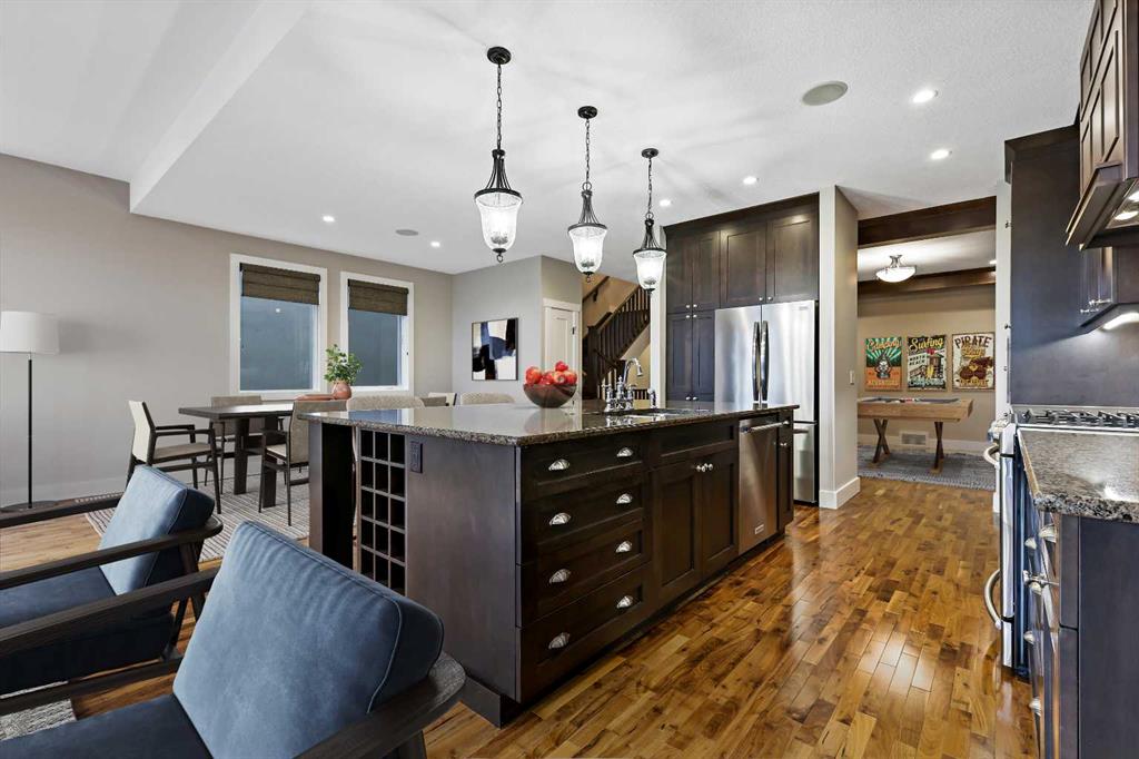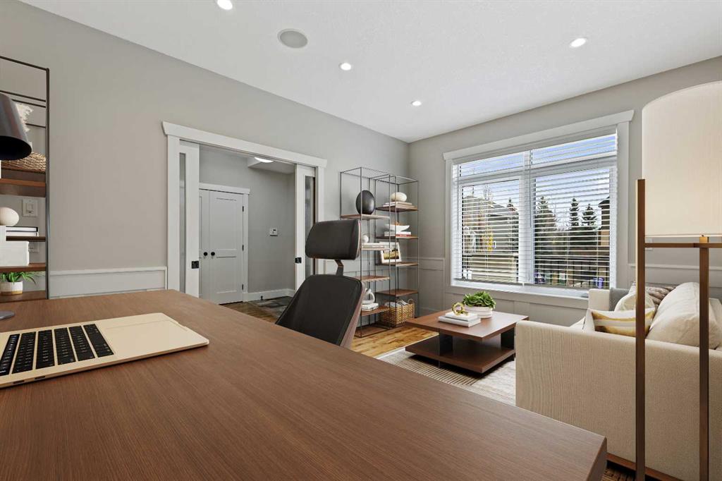 Welcome to 52 Aspen Meadows Green SW. This executive 2-storey brownstone home offers a total of 4 bed and 3.5 bathroom and blends classic design with comfort and functionality. Pride of ownership is felt from the moment you enter. The main level features 9- and 10-foot ceilings and expansive north-facing windows that flood the home with natural light. A large office just off the entryway offers privacy and flexibility, complete with oversized south-facing windows. The kitchen is outfitted with granite counters, gas range, built-in microwave, and a central island overlooking one of the dining areas and the living room with fireplace. A spacious mudroom off the garage includes built-in lockers and a separate storage room — ideal for busy households.