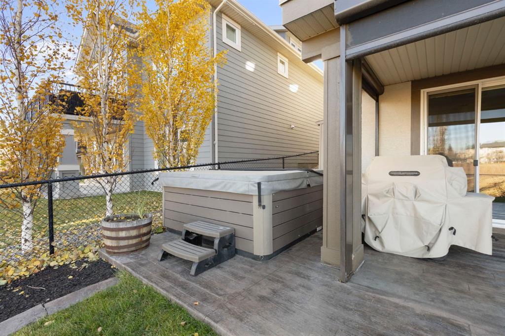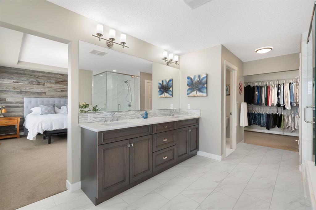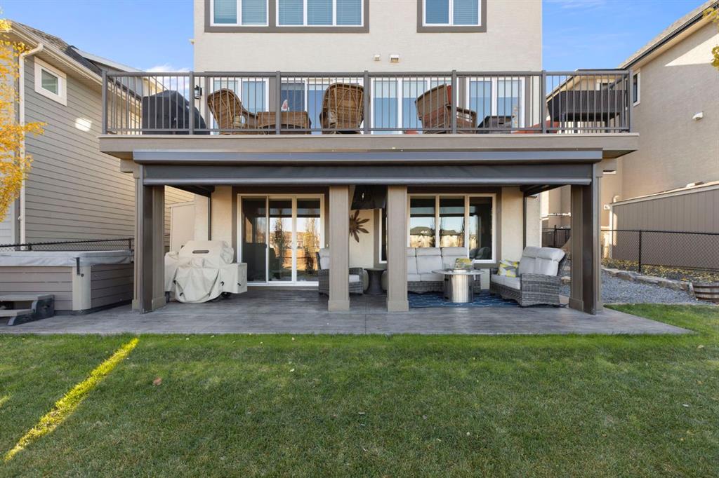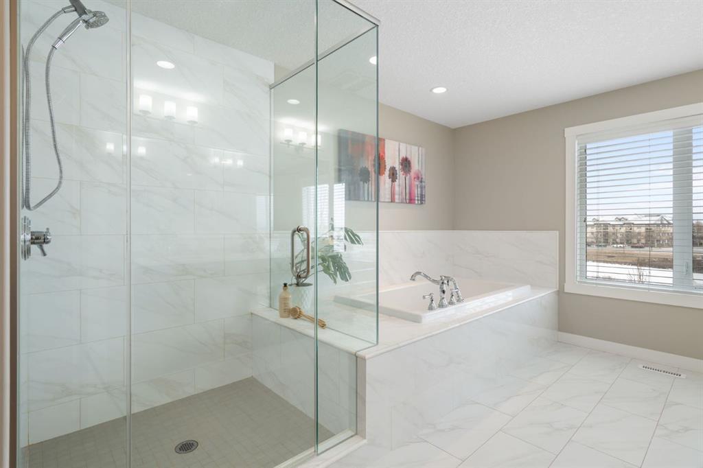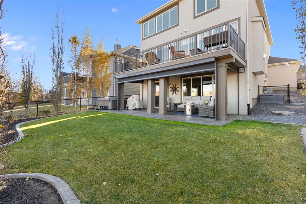Located in the Estate section of Mckenzie Towne on a quiet street with a picturesque pond as your backdrop, this custom-built home features four bedrooms and four bathrooms across nearly 4,400 sq. ft. of developed living space. Arriving at 52 Elgin Estates View, you will be impressed by the stunning curb appeal, Gemstone lighting, and an oversized, heated triple-car garage with epoxy floors. Inside, the formal foyer leads to a generous main-floor office with French doors. The stunning white kitchen is equipped with quartz countertops, a six-burner gas range, stainless steel Bosch appliances, and a walk-through pantry. Adjacent to the kitchen is a spacious living room with a gas fireplace and a large dining area. The back of the home is flooded with natural light through expansive windows, offering access to a vinyl deck with beautiful east-facing views of the pond. The main floor is completed by a large mudroom with direct garage access and a powder room with granite countertops. Upstairs, you will find a bonus room, two secondary bedrooms, and a five-piece bathroom. The primary bedroom offers impressive proportions and additional pond views. The primary ensuite serves as a perfect retreat with a double vanity with granite countertops, a large tub, and a spacious standalone shower. A large walk-in closet provides direct access to the laundry room, which is also accessible from the hallway. The walkout basement is an entertainer’s dream, featuring a wet bar, a large entertainment space for movie nights or sports, and room for a pool table. This level also includes a fourth bedroom, a four-piece bathroom, and additional storage. Outside, the ground-floor covered patio features stamped concrete and an automatic bug screen for summer comfort. The professionally landscaped backyard includes an in-ground sprinkler system and direct access to walking paths around the pond. Additional features include dual-zone furnaces, two AC units, new hot water tank (2025), Gemstone lighting and Hunter Douglas blinds. This property is located on a quiet street and is just steps from a large soccer field, all the shopping and amenities one could need and easy access to major road ways all while being nestled on a quiet pond.