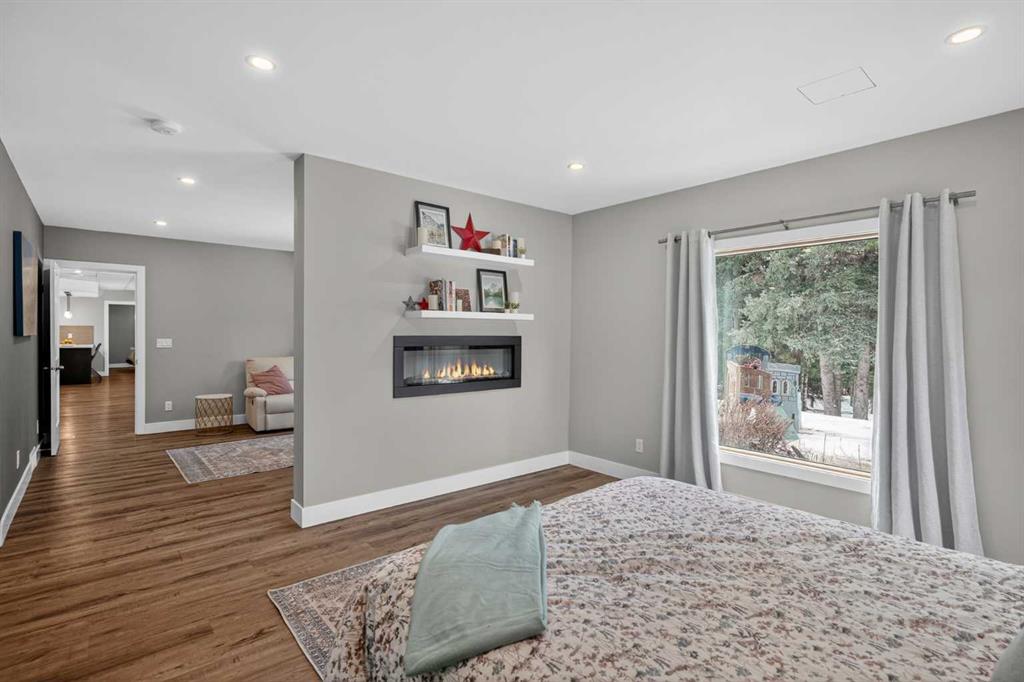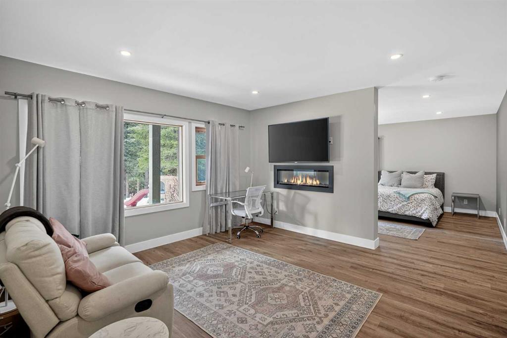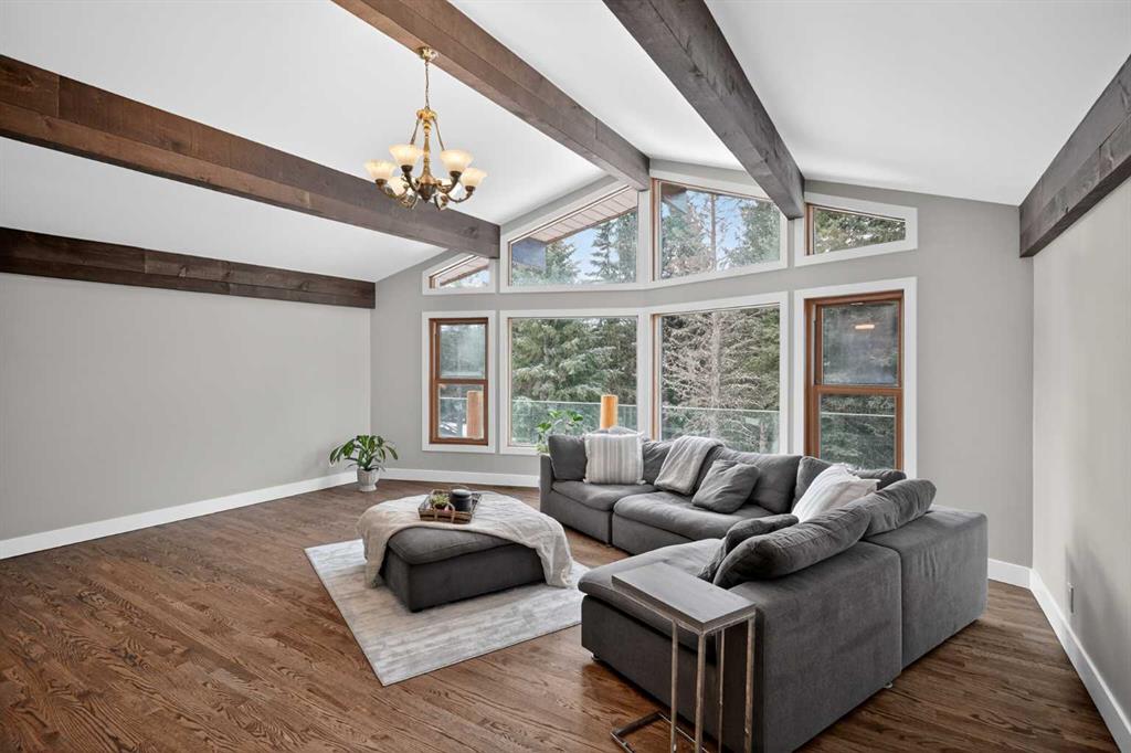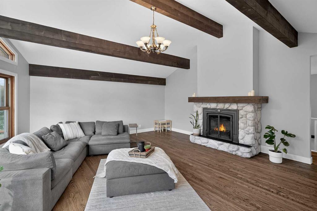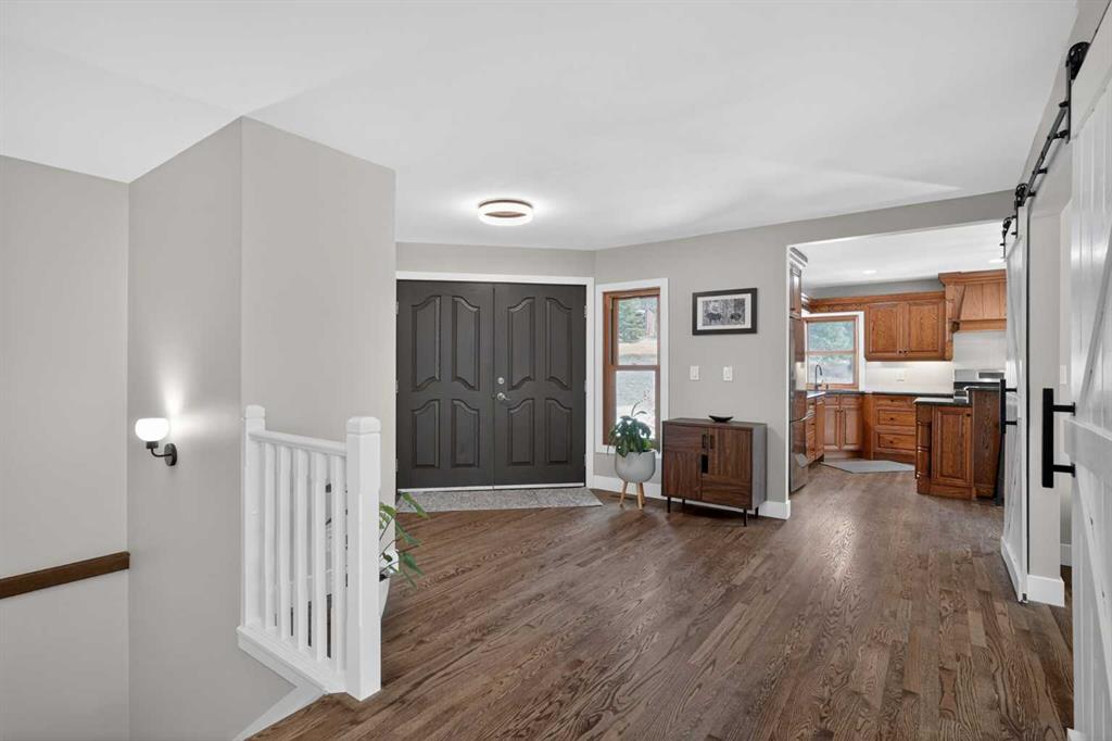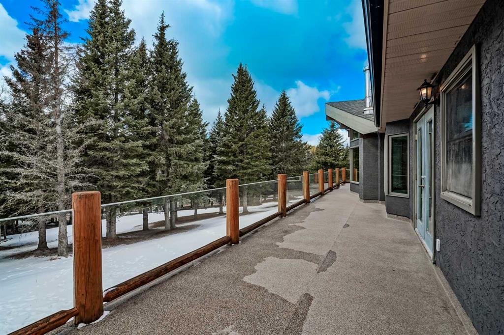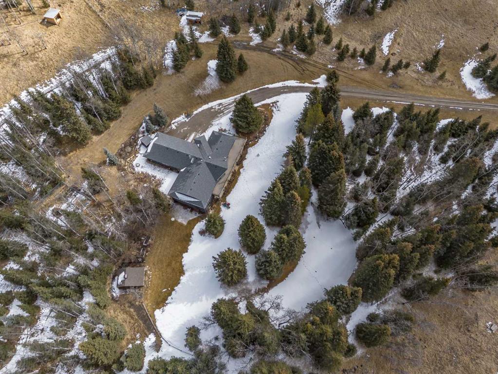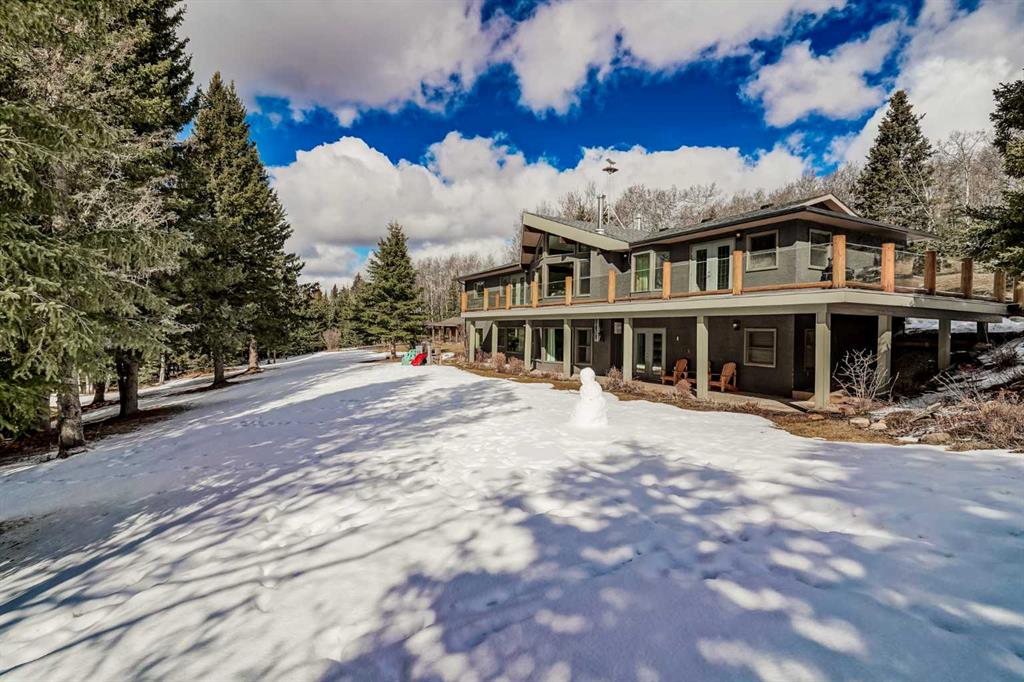 Discover your own private paradise on this stunning 19.85-acre estate, where the Dogpound Creek meanders through a park-like landscape at the rare convergence of lush forest, rolling foothills, and tranquil water features. This beautifully updated walkout bungalow offers a sprawling 4,195 square feet of developed living space, featuring 5 spacious bedrooms and 4 updated bathrooms that provide a cohesive feel throughout. Recent transformations include the addition of a second kitchen and a luxurious second primary suite in the walkout basement—perfect for multi-generational living—while the main level shines with stunning a-frame style living room overlooking your land, and a 2020 exterior overhaul consisting of a new roof, gutters, and a complete deck rebuild. Nestled within a forest of aspen, spruce, and pine, the property is a haven for local bird species and an equestrian’s dream, boasting full fencing, three paddocks, horse shelter, hay shed and an automatic watering system across beautiful undulating terrain. Perfectly positioned for families, you are located on bus route just 15 minutes from the highly regarded Westbrook School, and the home is rounded out by an oversized, heated attached triple garage. This rare sanctuary perfectly balances secluded country living with everyday accessibility, only 30 minutes to Cochrane, a lifestyle that is truly second to none.