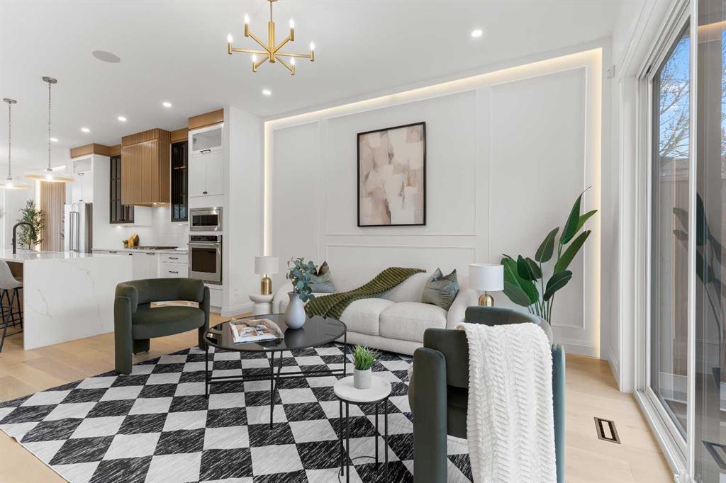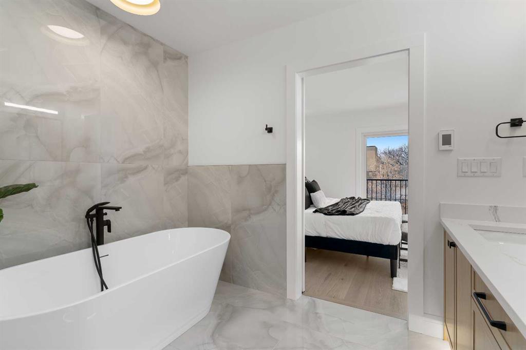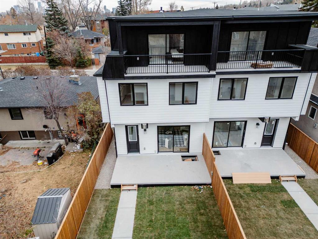 Construction Now Completed!! ~ Situated just steps from the river in Parkdale, one of Calgary’s most desirable central communities, this striking modern residence offers 2700 sq ft of masterfully designed living space across the three upper levels, with another 891 sq ft below grade. The main floor welcomes you (under flat painted ceilings on all levels) with a spacious dining area off the entry; flowing seamlessly into a designer kitchen, featuring a showstopping 10 foot quartz island and sleek modern finishes. At the rear of the main, a bright and airy living room with a contemporary gas fireplace opens with sliders to the west facing backyard expanding onto a large vinyl deck. A mudroom, tucked away powder room, and main floor office with a glass door, complete this gorgeous space. The second floor offers a true primary retreat with a massive ensuite featuring heated floors; a steam shower, and walk-in closet, alongside two additional bedrooms ~ each with their own walk-in closet ~ a full bathroom, and a well ~ appointed laundry area. The upper loft level is a standout feature; with a second primary bedroom, full ensuite (again with heated floors) and HUGE shower, dual walk-in closets, a versatile bonus area, and both front and rear balconies, offering stunning outdoor escapes. A fully legal basement suite (pending final approval by the city) adds even more flexibility, complete with two bedrooms, shared living area, and a full kitchen~ ideal for guests, rental income, or multigenerational living. With no shortage of bedrooms or closet space, this home is as functional as it is beautiful. Additional highlights include; a roughed-in security system, roughed-in air conditioning, a roughed-in vacuum system, exposed aggregate steps and sidewalks, full landscaping, and an unbeatable location. Surrounded by nature, amenities, parks, pathways, cafes, the Bow River, and everything inner-city Calgary has to offer, this is not one to miss!!