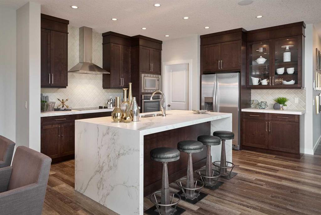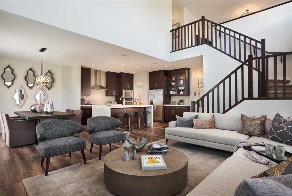 The stunning Savona 3 Estate model by Brookfield Residential is now available in the community of Livingston. Situated on a premium walkout lot backing directly onto green space, this home offers the rare luxury of no neighbours directly behind. This fully developed residence features 4 bedrooms, 3.5 bathrooms, 3 spacious living areas, and a dedicated office, offering the perfect blend of design, functionality, and high-end finishes. Set on a 4,844 sq. ft. east-facing lot, this beautiful property boasts over 3,500 sq. ft. of developed living space across three levels. The main floor features a bright, open-concept layout with 9’ ceilings, 8' doors and hardwood flooring throughout. Expansive rear-facing windows flood the home with natural light throughout the day, creating a warm and inviting atmosphere. The gourmet kitchen is equipped with full-height cabinetry and a premium suite of stainless-steel appliances, including a gas cooktop, chimney-style hood fan, built-in wall oven and microwave, and a French-door refrigerator. A large walk-through pantry adds both functionality and additional storage. The kitchen flows seamlessly into the adjacent dining area, which easily accommodates a full-sized dining set, and the impressive rear great room featuring an open-to-above design and a full-height tiled gas fireplace overlooking the backyard. Completing the main level is a generous front foyer, a versatile office/flex room, a 2-piece powder room, and a rear mudroom with a large walk-in closet for added storage. Upstairs, the primary suite (14’ x 13’) overlooks the backyard and includes a spa-inspired ensuite with a fully tiled glass shower, deep soaker tub, dual sinks, and a walk-in closet complete with storage. Two additional bedrooms, a well-appointed 4-piece bathroom, a large bonus room, and an upper-level laundry room complete this floor. The fully developed walkout basement adds nearly 1,000 sq. ft. of additional living space, including a fourth bedroom, full bathroom, and a bright recreation/media room with large windows. A wet bar and flexible open area make this an ideal space for a home gym, playroom, or entertainment zone. The west-facing backyard offers ample space for children, pets, and outdoor entertaining. A triple-car garage completes the property, providing exceptional storage and secure parking year-round. Backed by Brookfield’s comprehensive builder warranty and the Alberta New Home Warranty Program, this move-in-ready home offers both quality and peace of mind. Located in the vibrant community of Livingston, residents will enjoy access to parks, pathways, and future commercial amenities. Please note: Photos are of a show home model and may not be an exact representation of the property for sale.