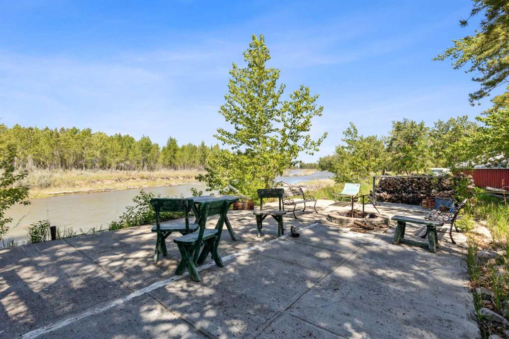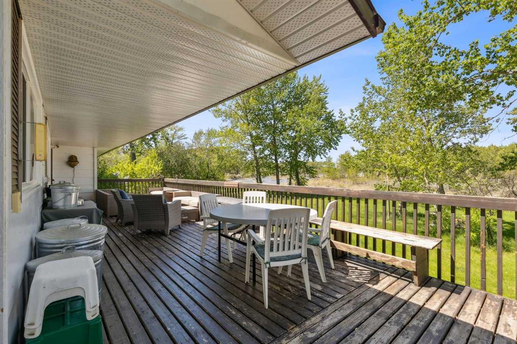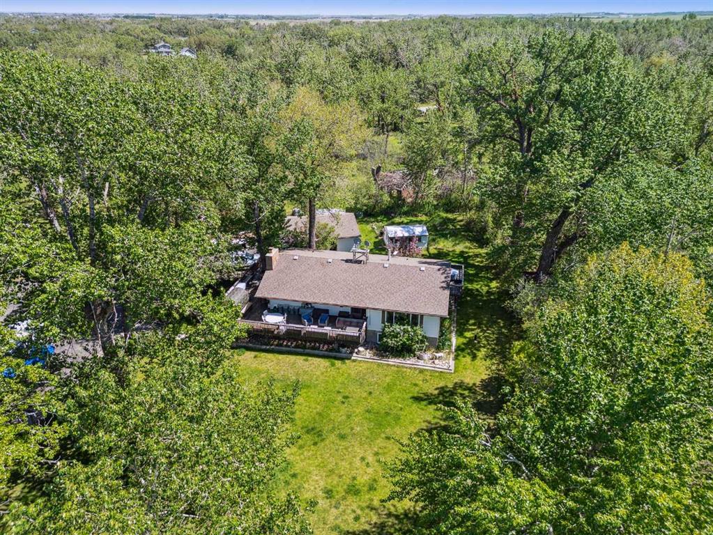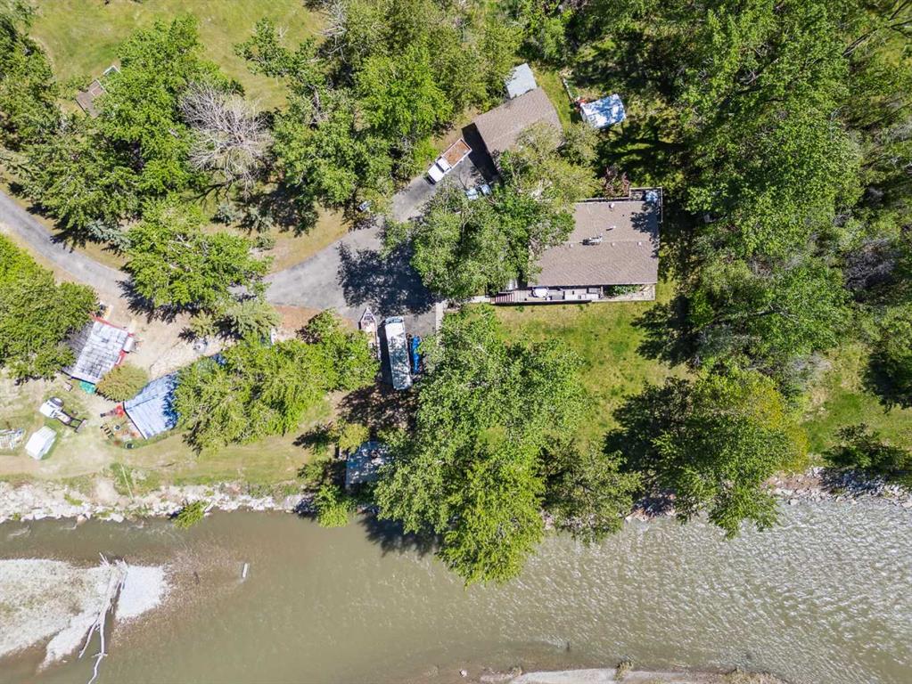 Discover the perfect blend of tranquility and recreation just outside of town with this exceptional property, set on 10 beautifully staked acres with 1,200 feet of private riverbank. This unique retreat offers year-round serenity and a wealth of outdoor activities, including swimming, snorkeling, tubing, and canoeing in the summer, as well as snowshoeing in the winter.The property sits 18 feet above the flood barrier berm in SW High River, ensuring safety and peace of mind. The basement experienced about 3 feet of water and river mud in 2013, but it was fully remediated, making it ready for your personal touch. The main house is a charming raised bungalow featuring 1,385 sq ft of comfortable living space, including 3 bedrooms and 1.5 bathrooms. It boasts an original kitchen with updated appliances, new windows, and a spacious living area. Step through the dining room access door onto a massive 1,300 sq ft deck, designed for relaxation while you listen to the soothing sounds of the river and the gentle rustle of trees. Unwind in the inviting cedar sauna, perfect for enjoying after a long day. Recent updates include new soffits and eavestroughs, replaced in 2022. Embrace the bounty of nature with chokecherry trees, saskatoon berries, raspberry bushes, a pear tree, an apple tree, ornamental cherries, and rhubarb flourishing on the property. The greenhouse, complete with blueberries, strawberries and edible cherries, and the garden is currently thriving with potatoes, chives, and asparagus. Additional features include a detached double garage next to the house, a small workshop behind the garage, and a larger 22.11'x22.11' shop with electricity. The owner has taken tremendous care and maintenance to riprap the riverbank to create stability and security. He planted willows as well to further stabilize the soil. This property is truly one-of-a-kind! Although you sit on the outside of town within 5-10 minutes you have access to the hospital, grocery stores, banking and anything else you need. Schedule a showing today to experience the beauty and potential for yourself!