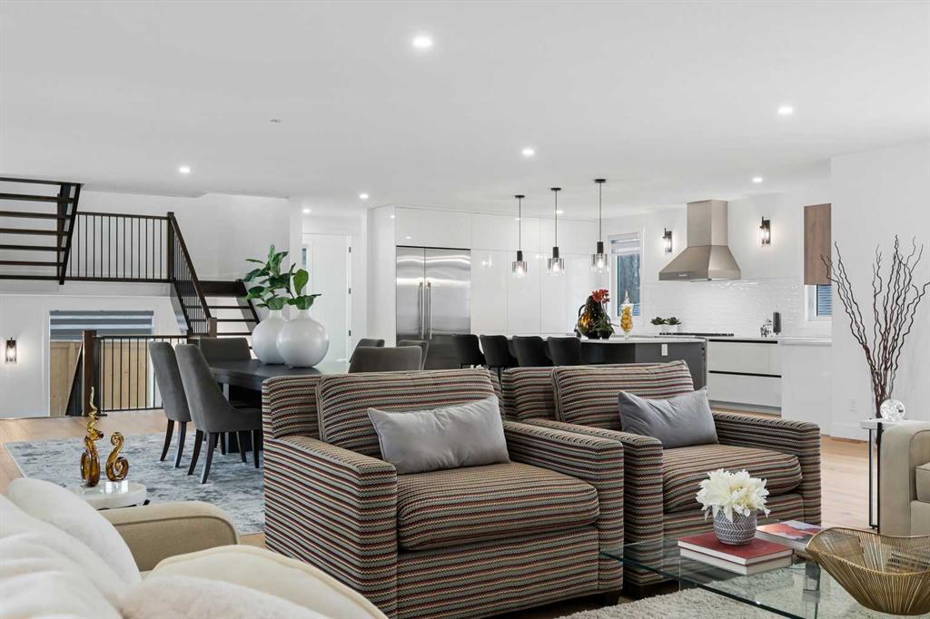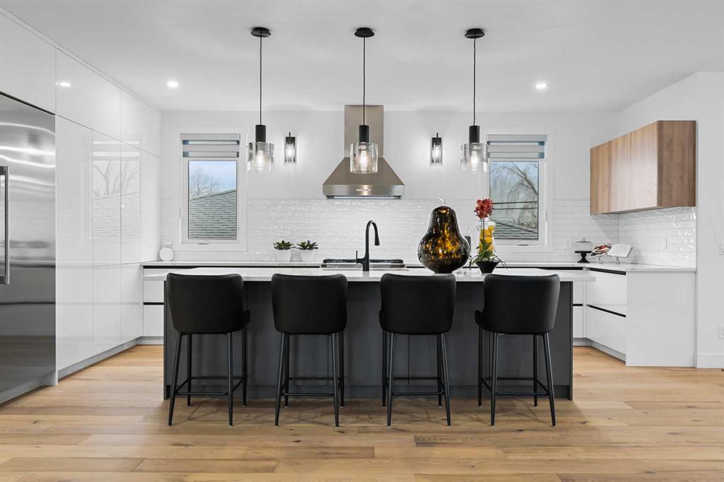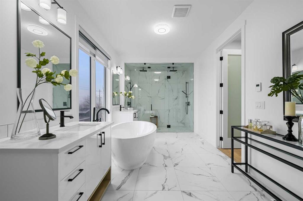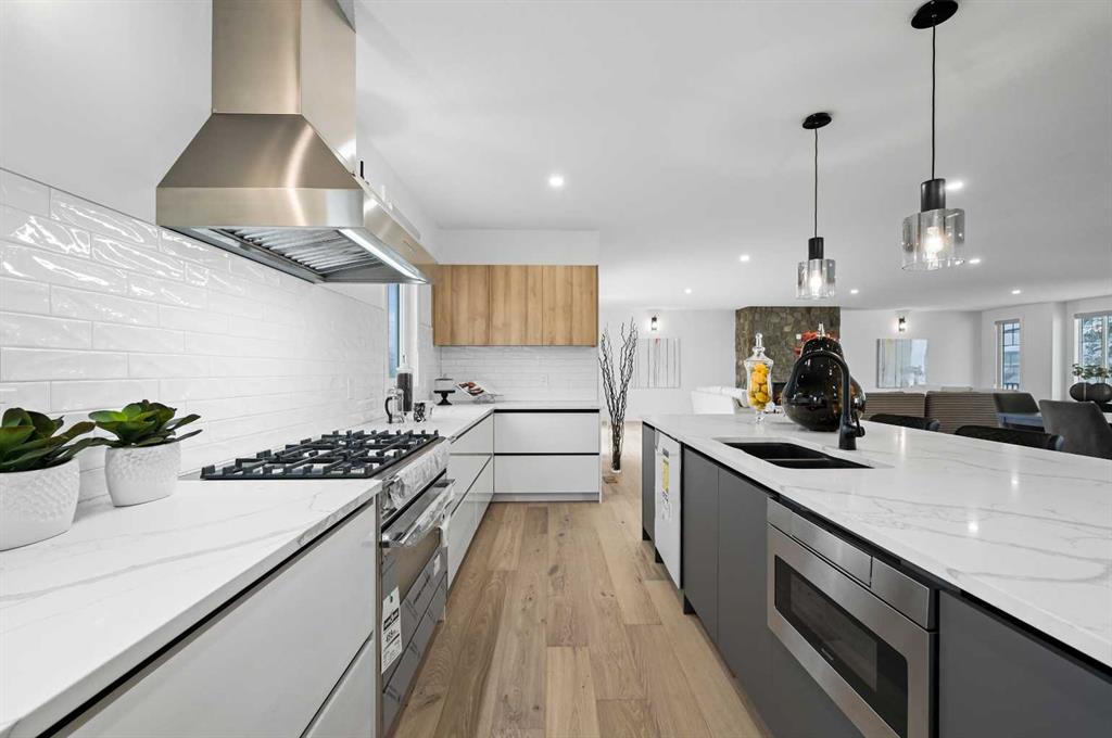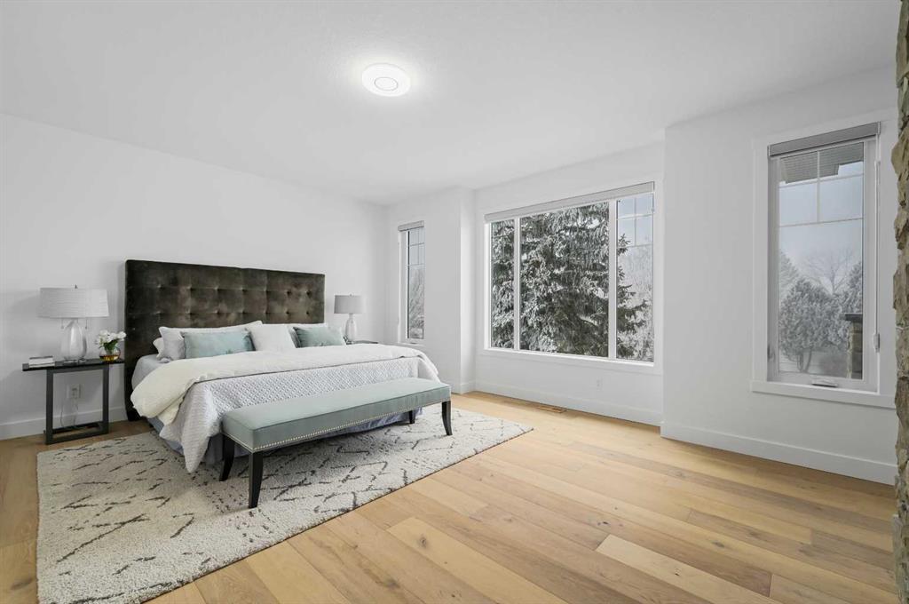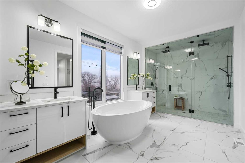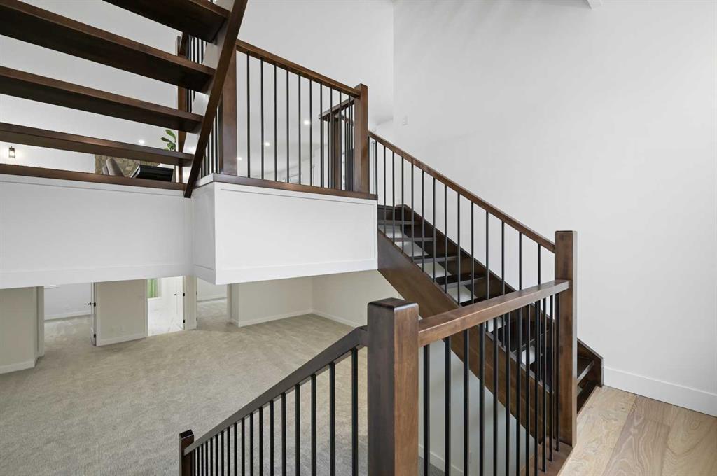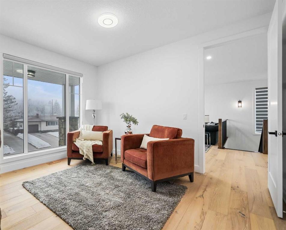 Welcome to this beautiful executive custom built home in the up and coming community of Meadowlark Park. The home offers 5 bedrooms, 4 bathrooms, and over 6000 sqft on all 3 levels. The home has been built with convenience in mind with various custom upgrades. Walking into the property, you are greeted with an open concept space with light pouring in from every window. Beautiful engineered white oak floors flow throughout making for a seamless transition into every room. The large entryway opens up to the entire first floor making for a very bright and open floor plan. The dining area and living area are perfect for hosting and entertaining friends and family. A beautiful stone packed gas fireplace makes for a warm and cozy feel over the entire living room. Just off of the living room are sliding glass doors that lead out to a large deck with access to the backyard and triple detached garage. The kitchen comes equipped with top of the line stainless steel appliances, a large breakfast bar, designer tile backsplash and convenient built in features. Just off of the kitchen is a two piece powder room and a convenient mudroom with built in features with doors to another deck granting access to the garage and backyard. The second level features a large great room as well as a main 4 piece bathroom and laundry room with a sink. The primary bedroom is perfect for unwinding after a long day. The double sided gas fireplace makes for a comfortable, serene setting. Heading into the 5 piece spa like ensuite, you'll first come across his and hers walk in closets with built-in's. The ensuite consists of many features such as a large soaker tub, two rain shower heads, and double vanities. Two other good sized bedrooms can be found on the second level. The walk-up basement is fully finished with a wet bar as well as in floor heating throughout. The basement has a separate entrance from the backyard which has a mudroom with built in features for added convenience. The basement has two good sized bedrooms and a 4 piece main bathroom with rough in for a washer and dryer. This home is located within walking distance to schools, transportation, and amenities. Must see to appreciate the detail of this custom built home. Exceptional value!