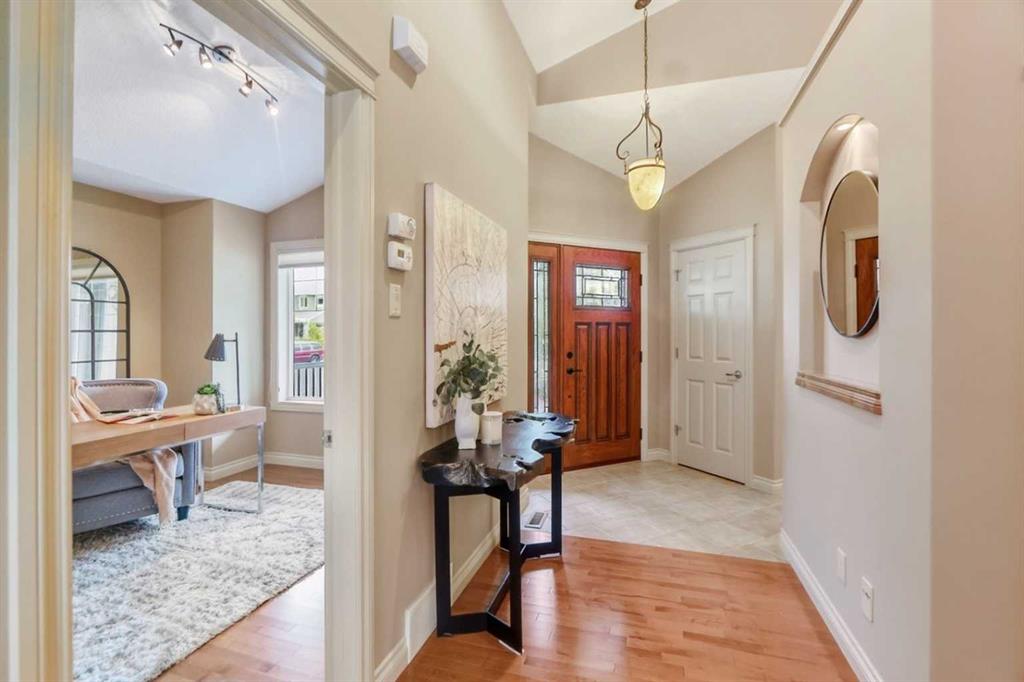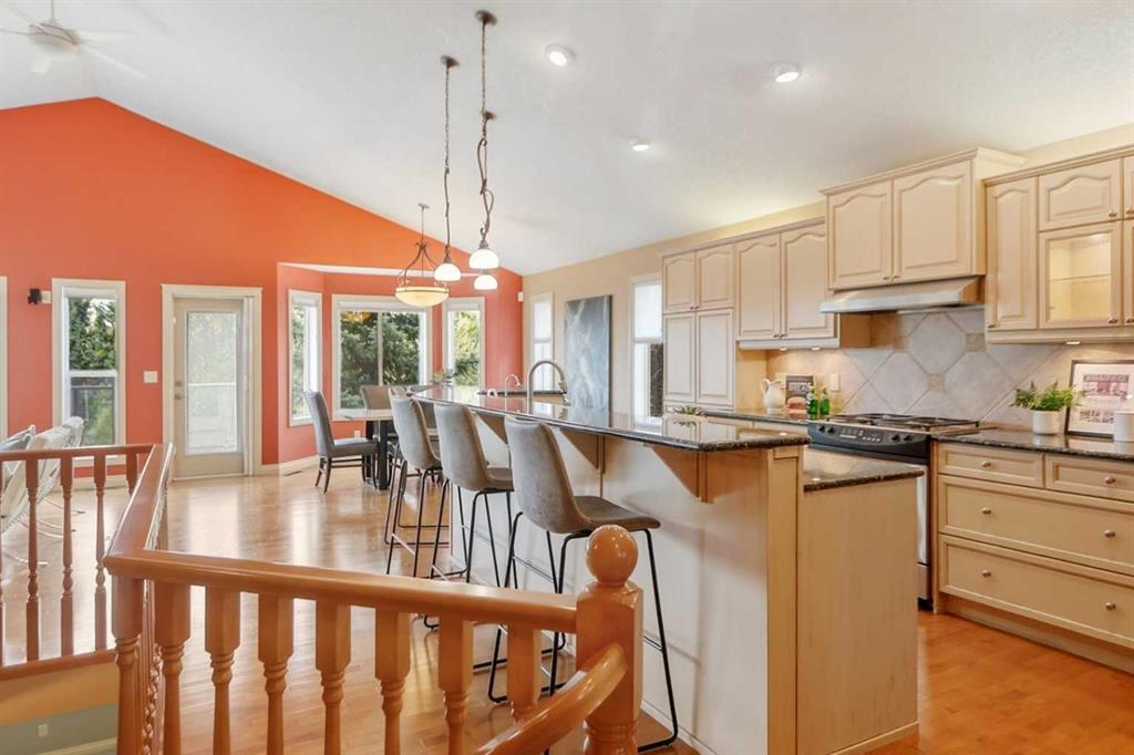 ** EXECUTIVE bungalow in Okotoks – “Air Ranch” - with STUNNING mountain, lake and natural environmental reserve views! – AMAZING sunsets!! ** QUIET cul-de-sac location, beautiful south-west facing backyard with low maintenance landscaping and perimeter fencing. ** OVERSIZED, heated double garage with ceiling-mounted storage racks, several storage lockers, and closets. ** COZY front porch with poured concrete walks & patio stone accents. ** BRIGHT, spacious open foyer with direct access to garage and the 2 pce powder room. –- OFFICE/den at front door with vaulted ceilings & lots of natural light (could be a second bedroom – with adding a wardrobe or closet). ** PRIMARY bedroom & ensuite – an oversized room with vaulted ceilings, scenic views from the window – and featuring a 4 pce ensuite with double sinks, custom vanity and stand-up shower. -- PLUS, a large walk-in closet – PLUS a separate ensuite laundry room with extra shelving and washer / dryer. ** OPEN concept floor plan – SPACIOUS kitchen with loads of custom cabinets, QUARTZ counter tops, a corner pantry and a full complement of Stainless-steel appliances. ** an EXPANSIVE formal dining area with great flow into the living room that features VAULTED ceilings tons of natural light (GREAT views) a gas fireplace and patio door to the massive back deck. AMAZING views of the mountains, lake, and natural reserve areas. ** DEVELOPED walk-out basement with expansive family room / games room area – with direct access to large, covered patio area and private landscaped backyard. ** LARGE lower-level bedroom, a full 4 pce bathroom with tub/shower. ** ADDITIONAL hobby/storage//utility room – PLUS a massive storage utility room with loads of shelving. (GOOD potential to add another large bedroom if needed) ** A very functional & meticulously maintained Executive bungalow featuring hardwood floors, vaulted ceilings, Quartz counter tops, Stainless Steel appliances and so much more!! ** TRULY a rare property that needs to be seen!! ** CALL your favorite REALTOR – or come by our OPEN House – both Saturday & Sunday from 1:00 pm -to- 4:30 pm. ** COME and CHECK-it-OUT! *** NOTE: this is a “stand alone” – single family “Bareland Condo” ***