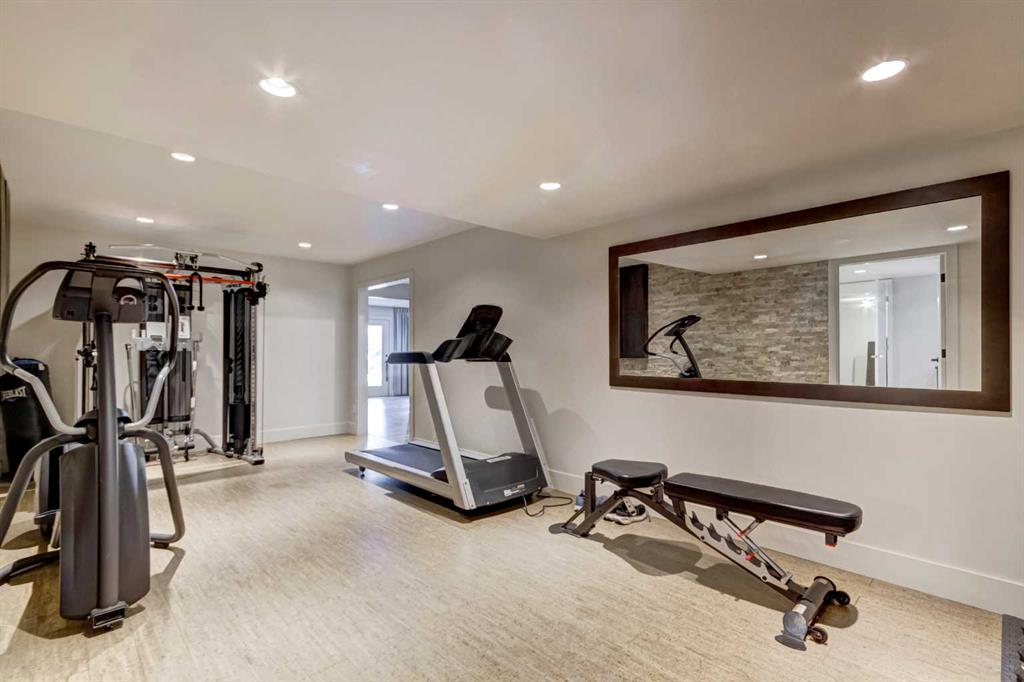 The fully developed walk-out basement expands the home’s versatility with in floor heating, a spacious recreation room with wet bar, a private gym, and a second den or home office. Every square foot is designed for both relaxation and functionality. Thoughtful additions such as an oversized triple garage with in floor heating, a main floor laundry room with full cabinetry, a mud room, and abundant storage space enhance convenience and comfort throughout.