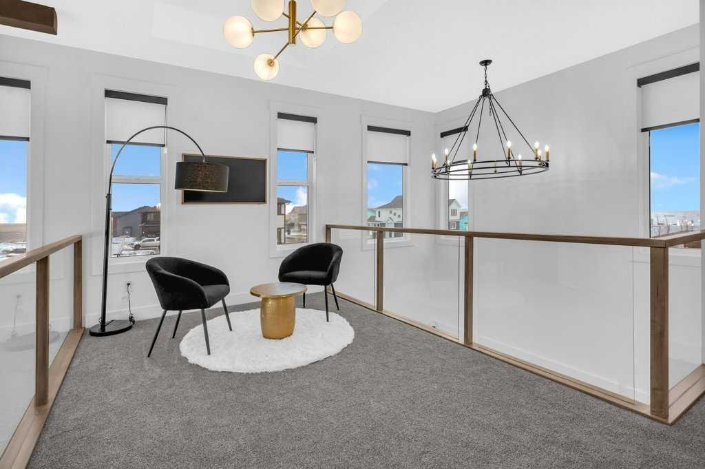 Welcome to this stunning luxury home by Brilliance Homes in the community of Goldwyn Estates. With a triple car garage, 6 bedrooms, and 6 bathrooms spread across just under 3,500 square feet, this home offers thoughtful design, top tier finishes, and all the bells and whistles you’ve come to expect from the Showhome. Nestled in a prime location with quick access to both Airdrie and Calgary, Goldwyn Estates offers the best of both worlds. You'll enjoy being just minutes from the amenities of CrossIron Mills while still surrounded by peaceful green space, walking paths, a pond, and a beautifully landscaped park and playground just steps away. Inside, you're greeted by 10 foot ceilings and a flowing open concept layout. The spacious main floor features a walk through mudroom, a private bedroom with a full bathroom, perfect for guests or multi generational living, and a separate office or den. The living room showcases dramatic open to below ceilings that seamlessly connect to the chef-inspired kitchen, complete with quartz countertops, sleek built-in appliances, and a fully equipped spice kitchen. Upstairs, the primary suite is a true retreat with tray ceilings, a beautifully finished ensuite, and a generous walk-in closet. You'll find three more bedrooms upstairs, with three full bathrooms as well. Say goodbye to morning chaos. A full laundry room and a bonus room with tray ceilings complete this level, offering space for the whole family to unwind. The fully finished walkout basement is where function meets fun. With two more bedrooms, a full bathroom, a home gym, and a spacious rec. room with a wet bar, this level is ready for movie nights, fitness goals, and everything in between. The backyard opens directly onto a scenic walking path, offering the perfect balance of privacy and connection to nature. Now is the time to secure your future dream home! Don’t miss your chance to live in luxury with Brilliance Homes at Goldwyn Estates.
