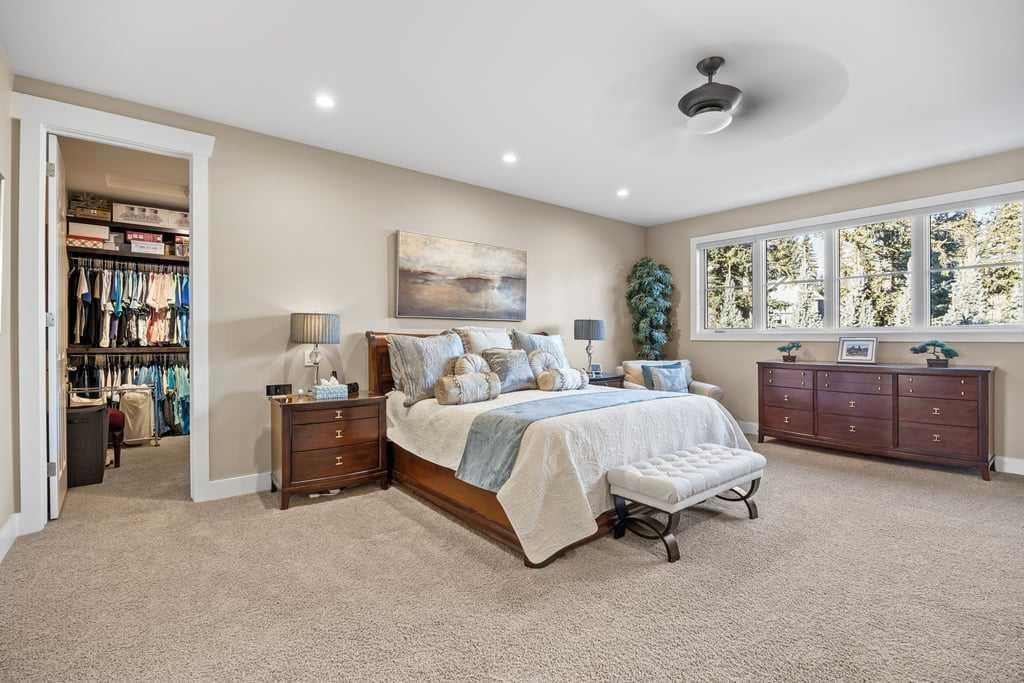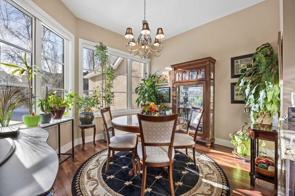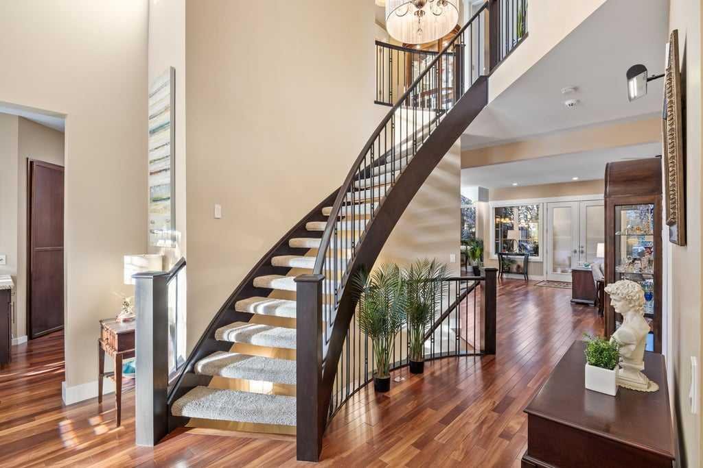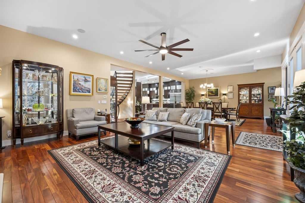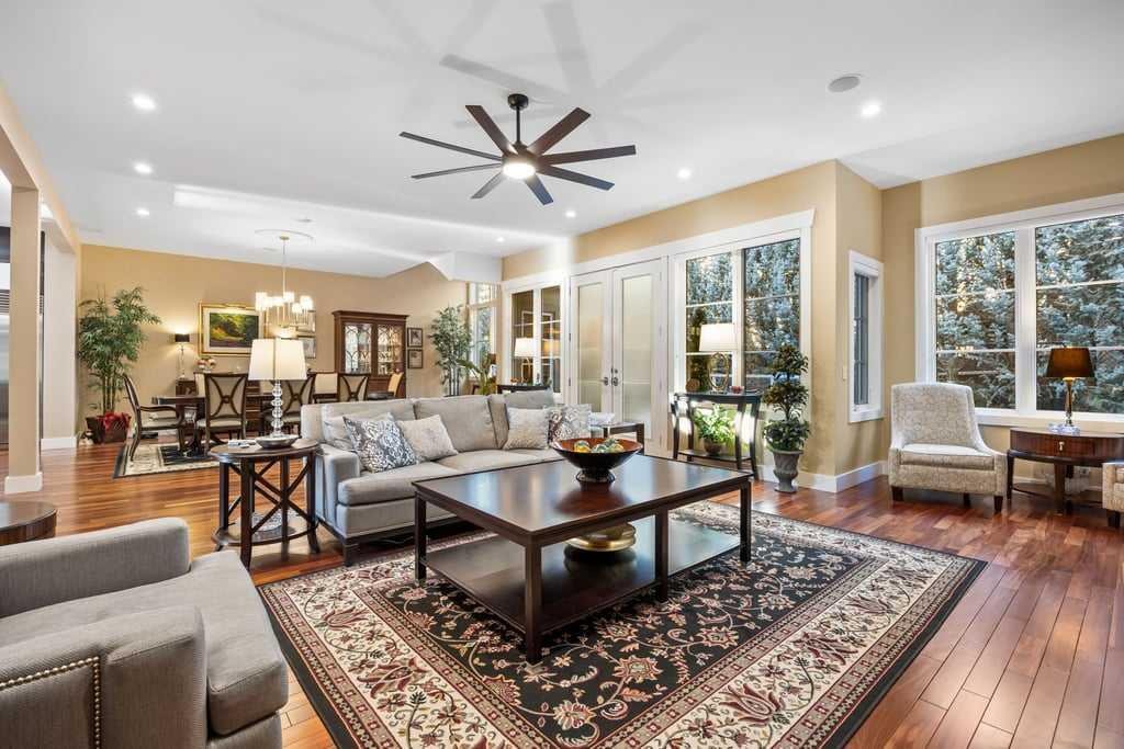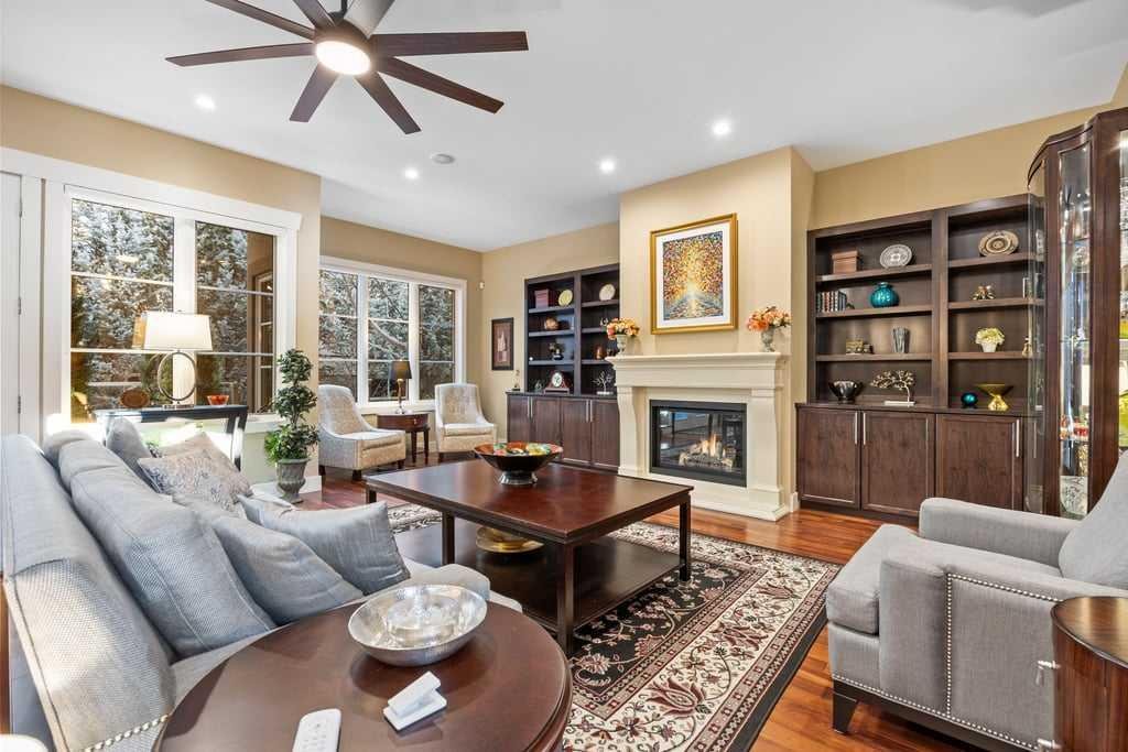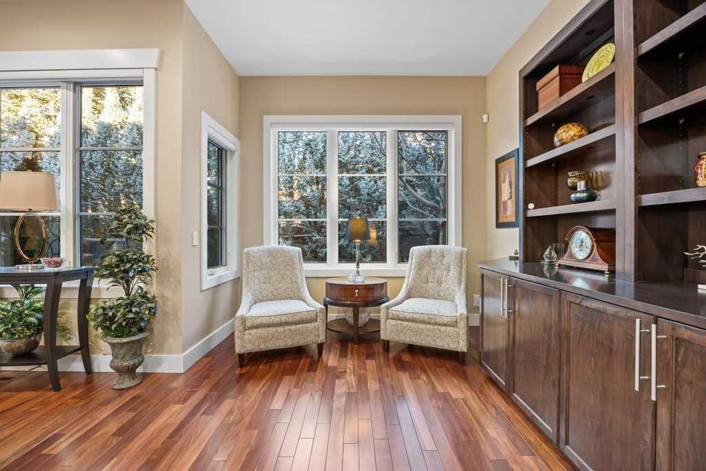 Modern comfort is woven throughout the home with central air conditioning, a new two-stage furnace with UV air filtration, a new combi boiler, whole-home water filtration, and soft water—creating a healthier, more comfortable living environment. A Russound six-zone sound system, Hunter Douglas blinds, and Telus PureFibre internet ensure the home is as connected as it is refined.