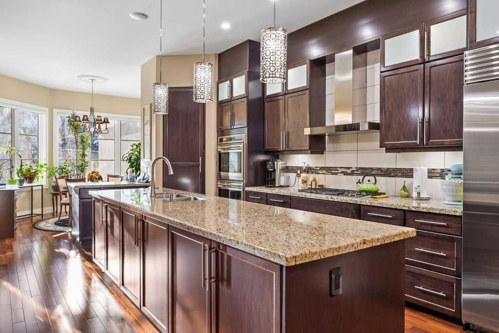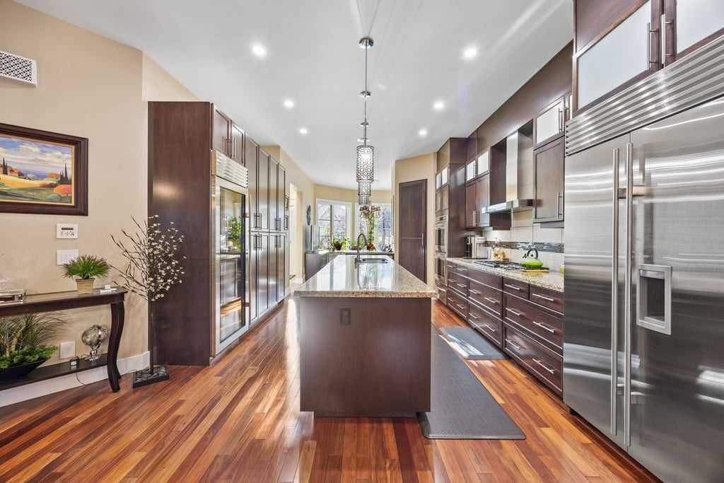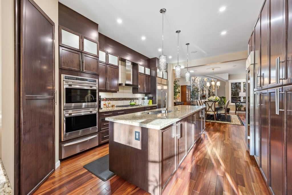 The heart of the home is a luxury, high-end kitchen designed for the discerning chef, complete with premium Sub-Zero, Wolf, and Miele appliances. Highlights include a 48” Sub-Zero refrigerator, 147-bottle dual-zone Sub-Zero wine refrigerator, Wolf double ovens with dual convection, a 36” five-burner gas cooktop (wired for future induction upgrade), 36” hood fan, drawer microwave, Miele dishwasher, and a KitchenAid warming drawer—perfect for entertaining at any scale.