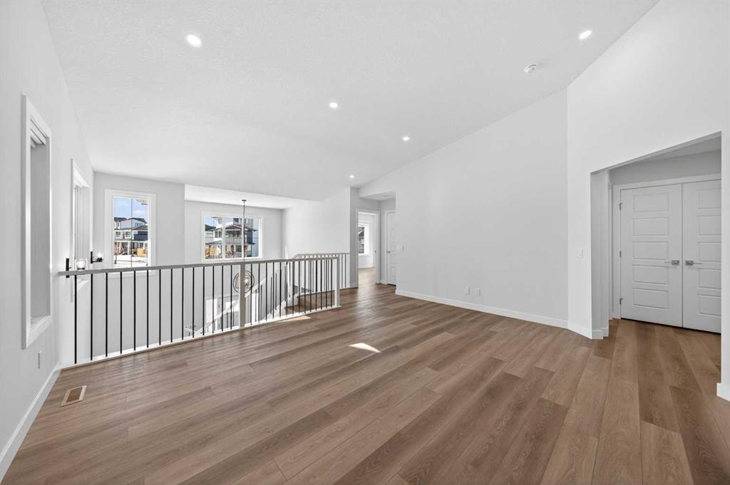 The upper level showcases exceptional living with a soaring 12-foot vaulted Bonus room at the centre of the floorplan—an impressive space perfect for family movie nights or a private retreat. The luxurious Primary suite features a 10'6" vaulted ceiling, generous walk-in closet with convenient cheater door to the Laundry room (with sink rough-in), and a spa-inspired 5-piece ensuite bath with separate double vanity, freestanding soaker tub, oversized separate shower, and elegant quartz countertops. Three additional spacious bedrooms complete this level—two featuring walk-in closets—sharing a well appointed 4-piece bath.