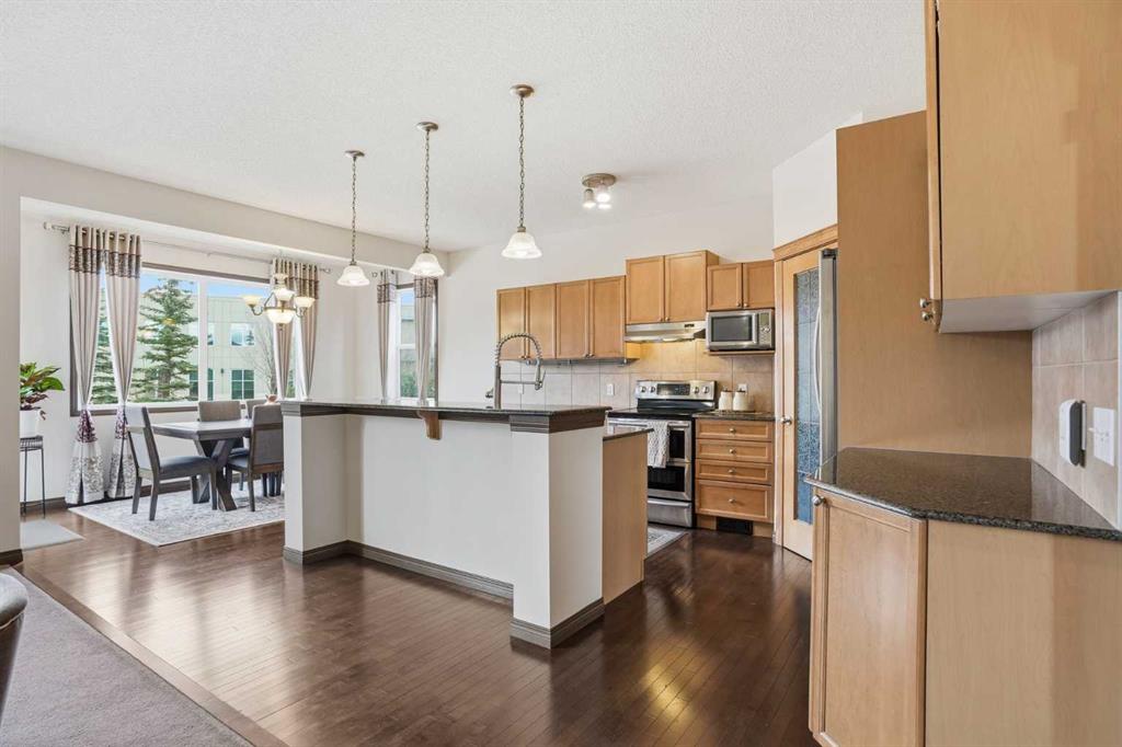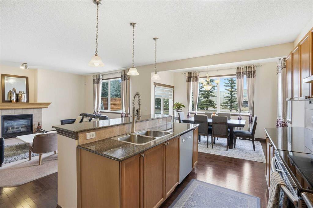 Nestled in one of SW Calgary's most sought-after communities, this well-maintained 3 bed, 2.5 bath, 2-storey in Springbank Hill offers the space, layout, and location that families are looking for. The main level opens with a tiled entry and hardwood floors that carry through to a large living room anchored by an elegant gas fireplace, a warm and inviting space for both everyday living and entertaining. The kitchen is well-appointed with granite counters, stainless steel appliances, a corner pantry, and a bright breakfast nook with direct access to a generous deck. A separate den/office and a privately situated 2-piece bath complete the main floor thoughtfully.