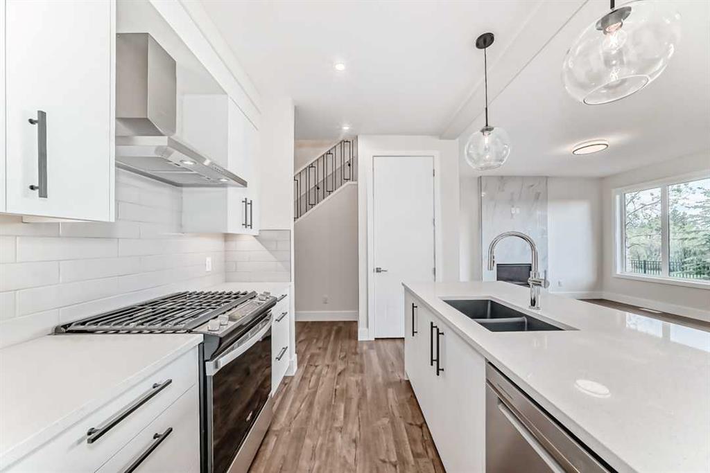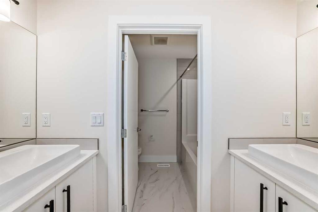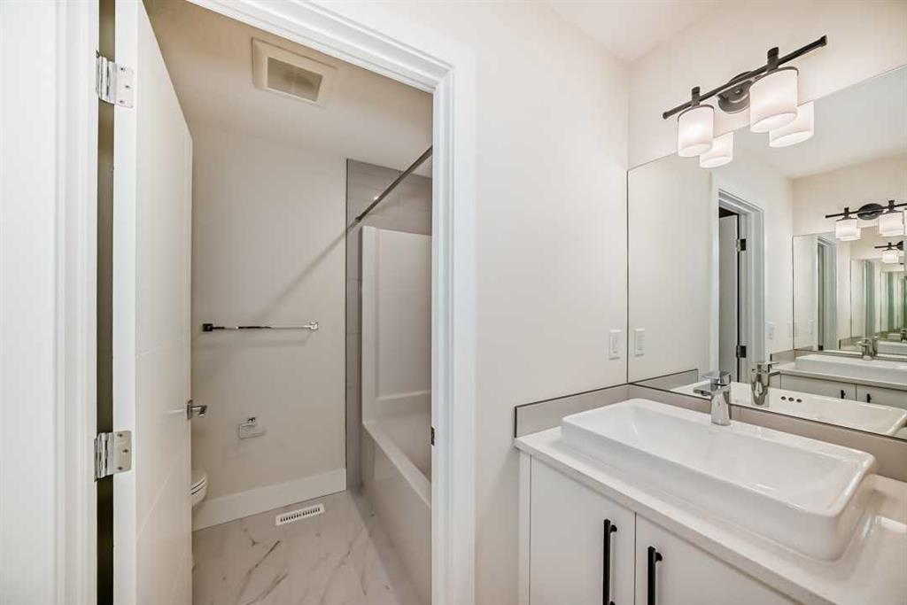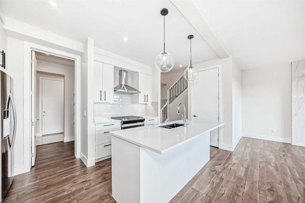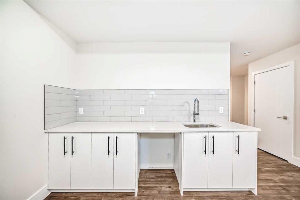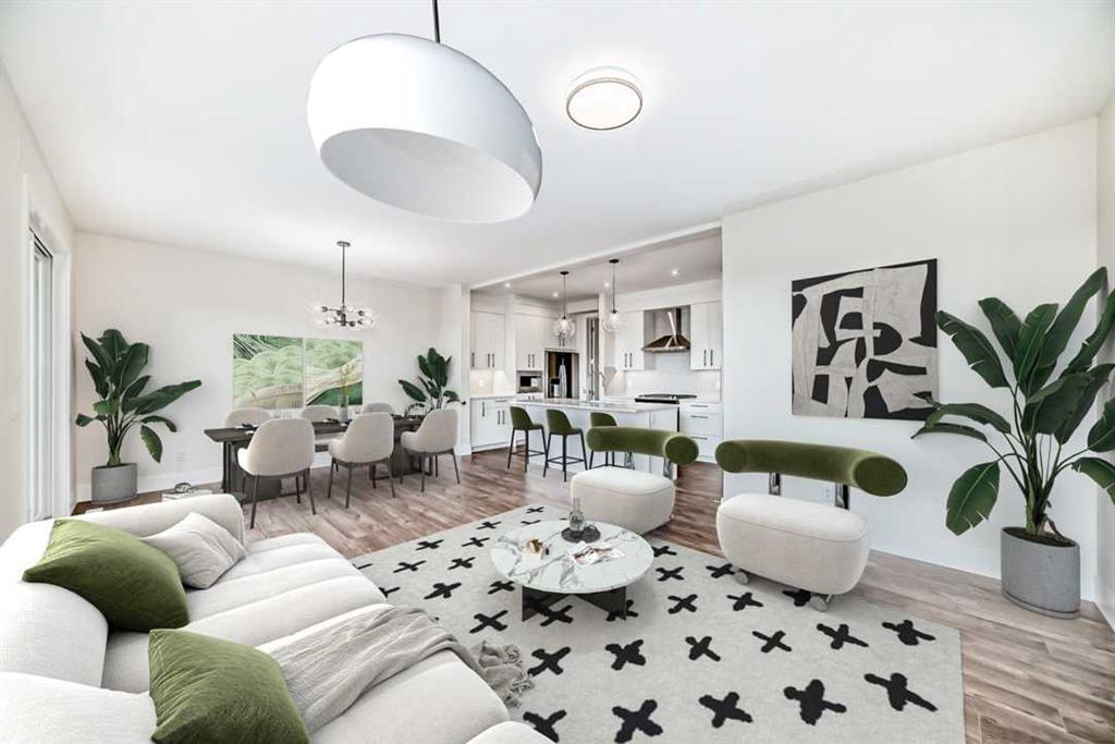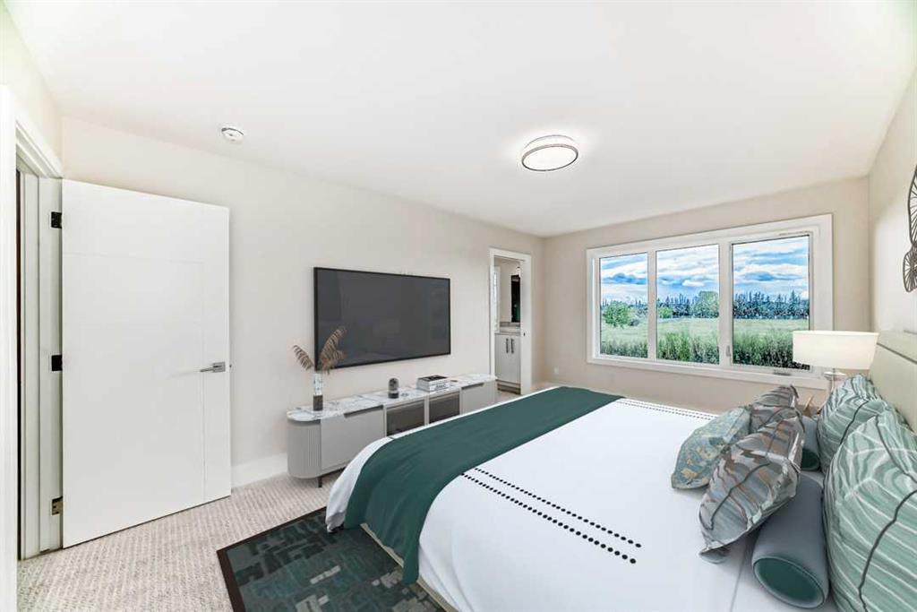 Immerse yourself in elevated living within this brand-new, never-lived-in Truman "Forte" residence, where sophistication and architectural finesse converge over 2,800 sq ft of exquisite living space. This home is a showcase of understated luxury, featuring an all-white and cream palette complemented by modern floors and striking 8 ft doors from the entry all throughout the main level accentuated by soaring 9 ft ceilings – a signature of grandeur and open space. The gourmet kitchen is a culinary sanctuary, adorned with gleaming quartz countertops, custom cabinetry with undermount lighting, and a premium stainless steel appliance package, including a gas range. The seamless flow extends to the vinyl deck – perfect for al fresco dining – complete with a gas line for BBQs. Upstairs, retreat to the serene primary suite, a sanctuary of tranquility with a 5 pc spa-inspired ensuite that exudes sophistication. Double vanities, a deep soaker tub, and a glass-enclosed shower are framed by crisp white finishes and gleaming chrome accents. Three additional bedrooms share a stunning 5 pc family bath, and a spacious bonus room offers a welcoming space for relaxation or a home office. The fully finished basement is a masterpiece of versatility, featuring a wet bar, expansive recreation room, private guest suite, and a luxurious 4 pc bathroom – all with the same exquisite design continuity. The separate entrance provides added privacy and functionality, making it ideal for entertaining or multi-generational living. The meticulously crafted exterior showcases stucco and Hardie board siding, harmonizing beauty and durability. Built to Truman’s Benchmark specifications, this home is a testament to quality, with a Vacu-Flo rough-in, security system rough-in, and a substantial 80-gallon high-efficiency hot water tank providing continuous comfort. Situated in one of Calgary’s most prestigious communities, this residence offers an unparalleled lifestyle with proximity to Aspen Landing’s upscale shopping and dining, the Westside Rec Center, and premier schools such as Webber Academy, Rundle College, and Ernest Manning High School. Discover the epitome of luxurious living where timeless design meets exceptional craftsmanship – a haven of sophistication with a palette of white and cream accented by rich, dark hardwood floors.