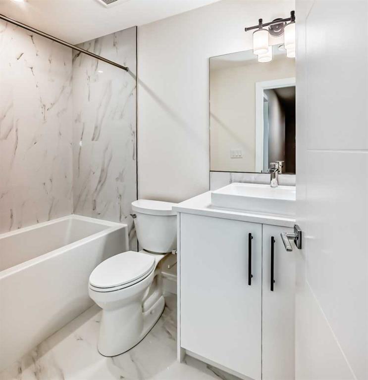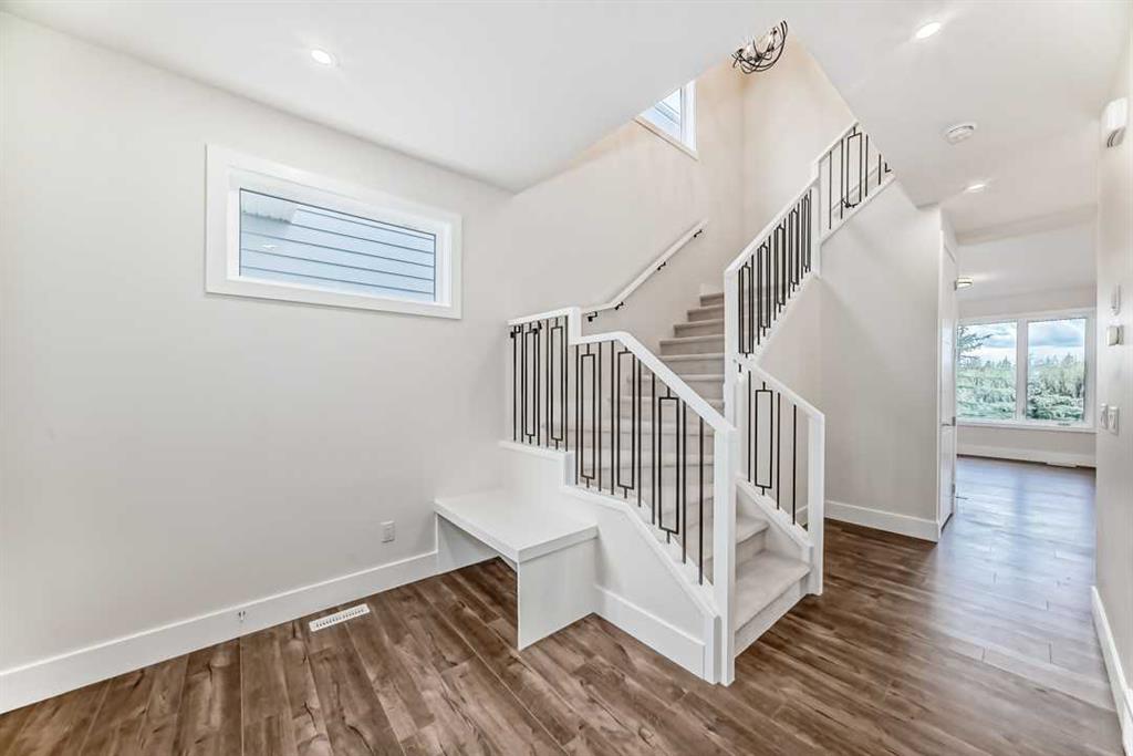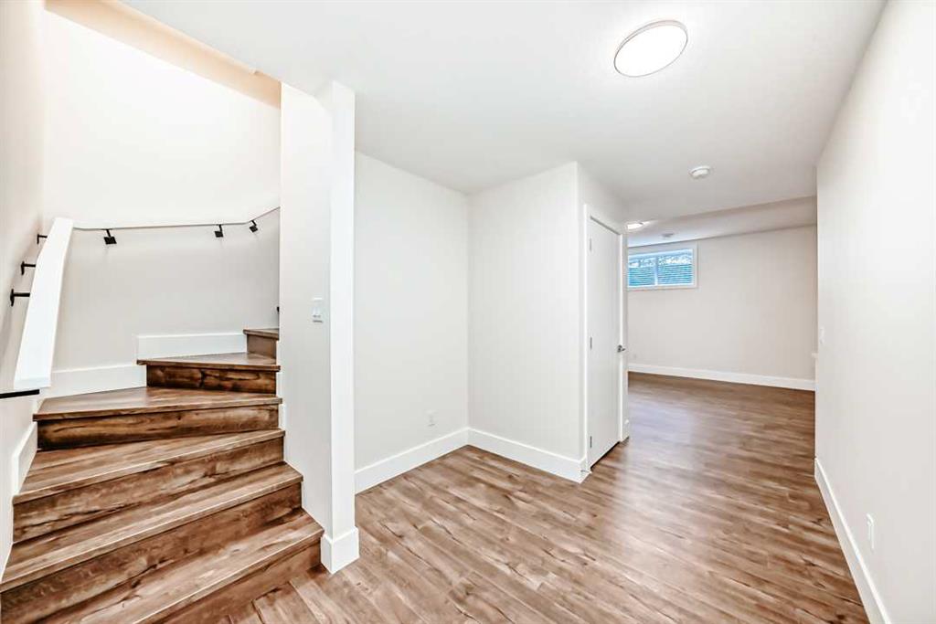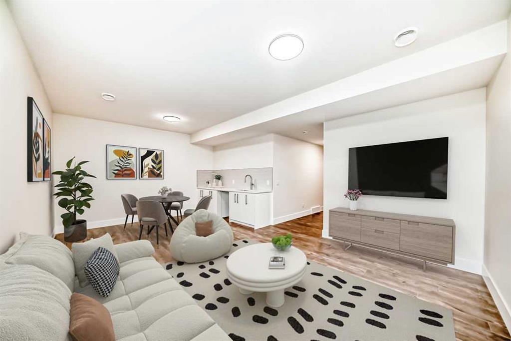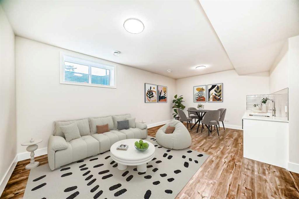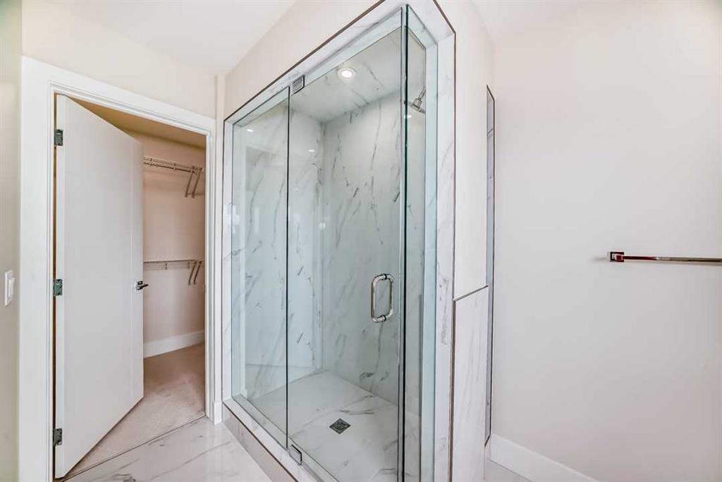Immerse yourself in elevated living within this brand-new, never-lived-in Truman "Forte" residence, where sophistication and architectural finesse converge over 2,800 sq ft of exquisite living space. This home is a showcase of understated luxury, featuring an all-white and cream palette complemented by modern floors and striking 8 ft doors from the entry all throughout the main level accentuated by soaring 9 ft ceilings – a signature of grandeur and open space. The gourmet kitchen is a culinary sanctuary, adorned with gleaming quartz countertops, custom cabinetry with undermount lighting, and a premium stainless steel appliance package, including a gas range. The seamless flow extends to the vinyl deck – perfect for al fresco dining – complete with a gas line for BBQs. Upstairs, retreat to the serene primary suite, a sanctuary of tranquility with a 5 pc spa-inspired ensuite that exudes sophistication. Double vanities, a deep soaker tub, and a glass-enclosed shower are framed by crisp white finishes and gleaming chrome accents. Three additional bedrooms share a stunning 5 pc family bath, and a spacious bonus room offers a welcoming space for relaxation or a home office. The fully finished basement is a masterpiece of versatility, featuring a wet bar, expansive recreation room, private guest suite, and a luxurious 4 pc bathroom – all with the same exquisite design continuity. The separate entrance provides added privacy and functionality, making it ideal for entertaining or multi-generational living. The meticulously crafted exterior showcases stucco and Hardie board siding, harmonizing beauty and durability. Built to Truman’s Benchmark specifications, this home is a testament to quality, with a Vacu-Flo rough-in, security system rough-in, and a substantial 80-gallon high-efficiency hot water tank providing continuous comfort. Situated in one of Calgary’s most prestigious communities, this residence offers an unparalleled lifestyle with proximity to Aspen Landing’s upscale shopping and dining, the Westside Rec Center, and premier schools such as Webber Academy, Rundle College, and Ernest Manning High School. Discover the epitome of luxurious living where timeless design meets exceptional craftsmanship – a haven of sophistication with a palette of white and cream accented by rich, dark hardwood floors.