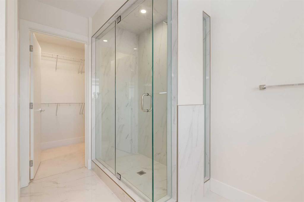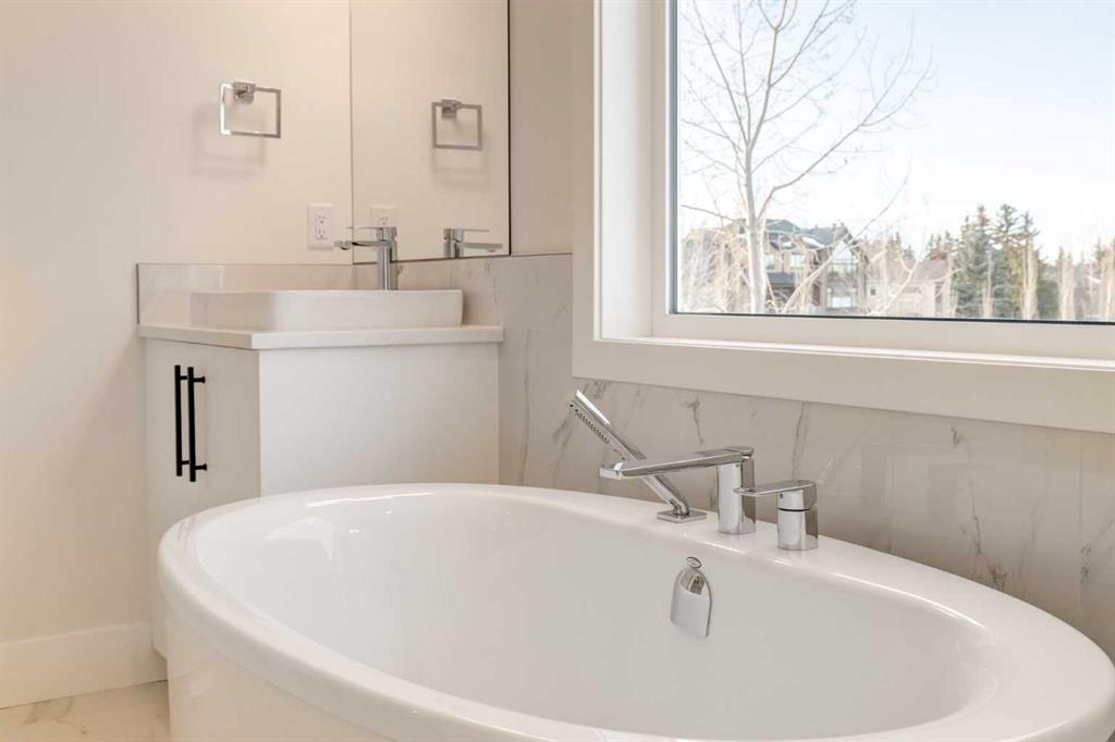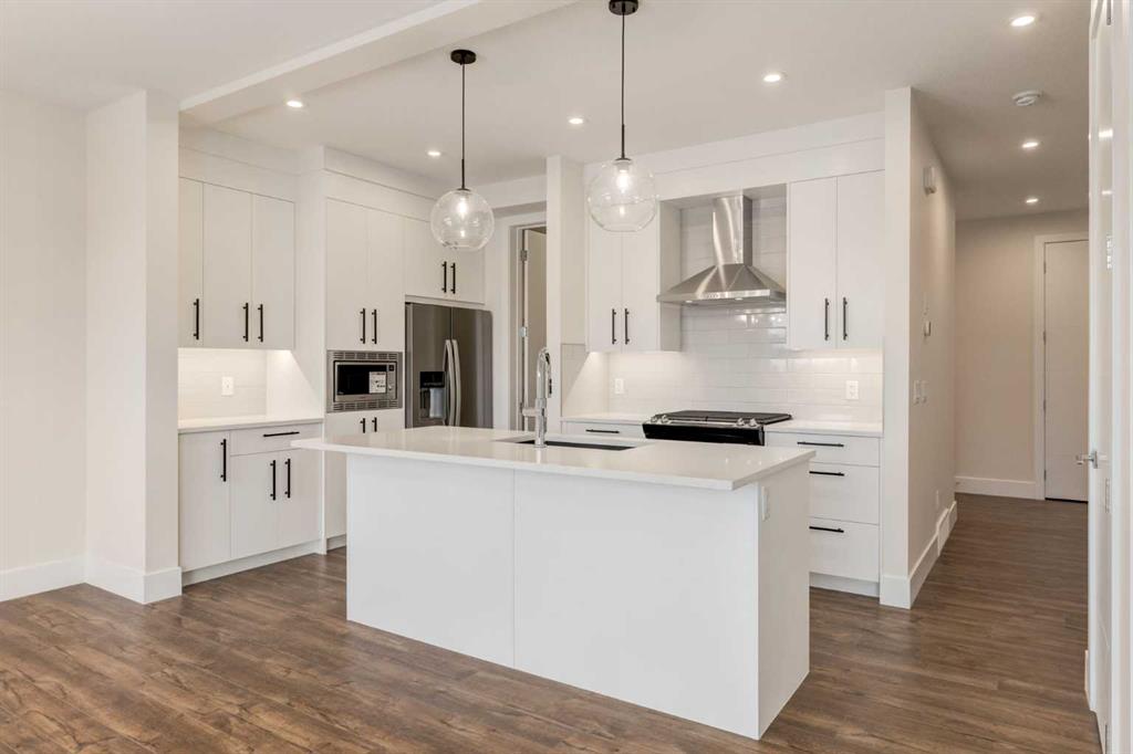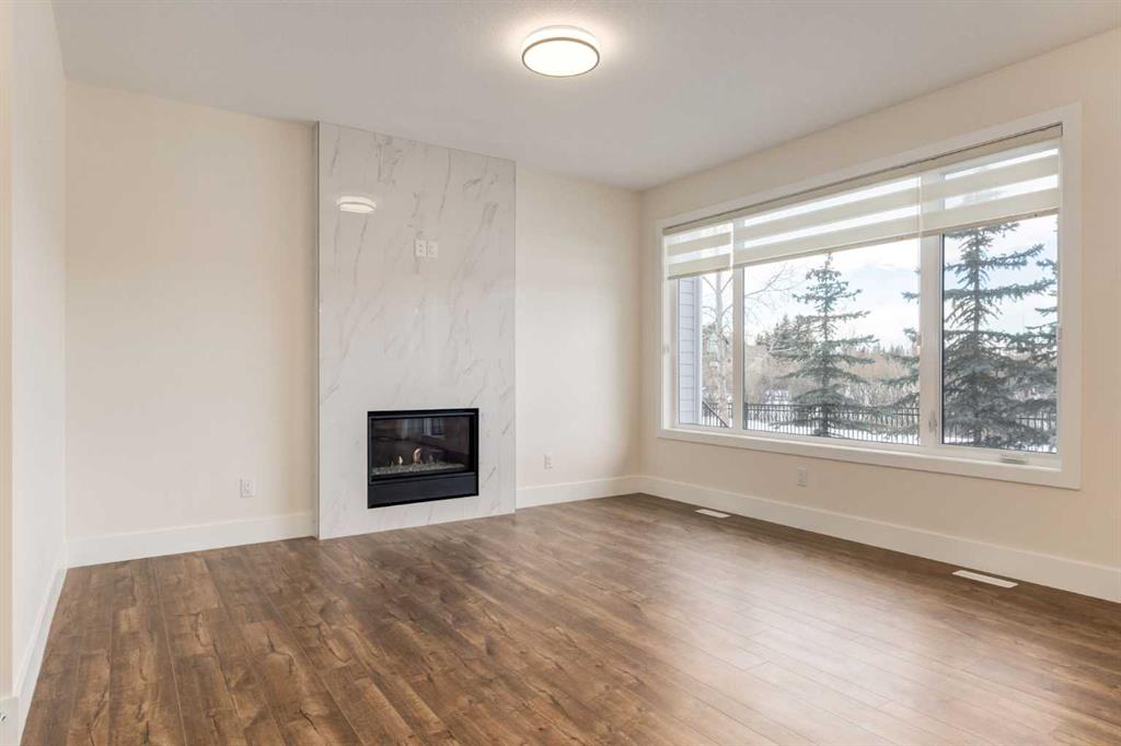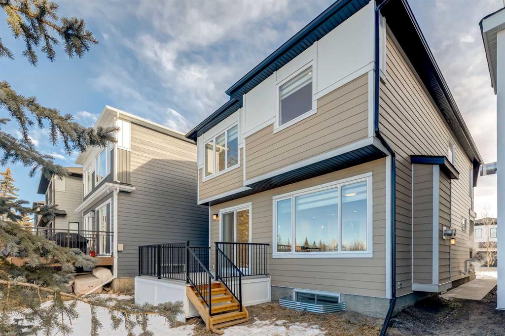Experience refined modern living in this brand-new Truman-built “Forte” home, perfectly positioned in the prestigious community of Aspen Woods. With over 2,900 sq. ft. of fully developed living space, including a professionally finished basement, this west-facing property backs onto green space and offers both luxury and functionality in a truly move-in-ready residence. The main level is thoughtfully designed with 9 ft ceilings, elegant 8 ft doors, upgraded lighting, and luxury vinyl plank flooring that extends throughout the main floor and basement. A striking gas fireplace with a full-height marble surround anchors the open living area, creating a sophisticated focal point for everyday living and entertaining. At the heart of the home, the chef-inspired kitchen features full-height cabinetry, quartz countertops, a walk-through pantry, and an upgraded SS appliance package including a gas stove, chimney-style hood fan, and built-in microwave. The adjacent dining area opens onto a west-facing Duradeck-finished deck with a gas line, ideal for outdoor gatherings and sunset views. The upper level offers 4 generously sized bedrooms, a bright bonus room enhanced by dual windows, and a conveniently located laundry room. The primary suite is a private retreat, complete with a spa-like ensuite showcasing an upgraded glass shower, standalone soaker tub, and refined finishes. Upgraded carpeting adds warmth and comfort throughout the upper floor. A separate side entrance leads to the fully finished basement, which expands the home’s versatility with a spacious recreation room, wet bar, bedroom, and a full 4-piece bathroom—perfect for guests or multi-generational living. Luxury vinyl plank flooring continues on this level, maintaining both style and durability. Additional features include a finished garage, thoughtfully upgraded lighting, and Truman’s renowned build quality. Located close to top-rated schools, LRT access, shopping centres, downtown Calgary, and major transportation routes, this exceptional home delivers a seamless blend of elegance, comfort, and convenience in one of Calgary’s most desirable west-side neighbourhoods.