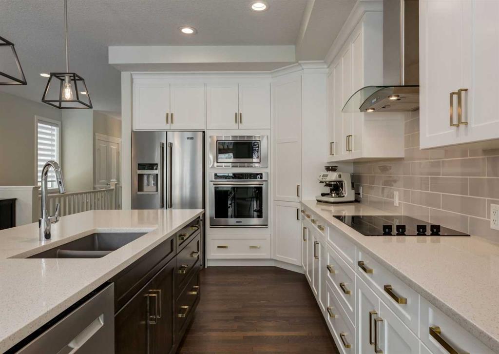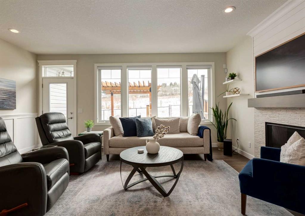 Welcome to this stunning bungalow in the highly desirable community of Crestmont, where modern design meets warmth, character, and everyday functionality. From the moment you step inside, you’re greeted by a spacious foyer that sets the tone for the home’s thoughtful layout and inviting feel. The main floor offers just over 1,500 sq ft of beautifully designed living space, filled with natural light and elevated by stylish, carefully selected finishes. At the heart of the home, the open-concept living area seamlessly connects the kitchen, dining, and living room—creating the perfect space for both entertaining and everyday living. A cozy gas fireplace anchors the living room, adding comfort and charm year-round. The main level features two well-sized bedrooms, including a stunning primary retreat complete with a luxurious 5-piece ensuite designed for relaxation. The mudroom is both practical and spacious, offering built-in functionality along with conveniently located main floor laundry. The fully finished basement continues to impress with an expansive family and recreation space, ideal for movie nights, hosting, or simply unwinding. A custom bar with bar fridge adds an extra layer of entertainment, while the third bedroom and versatile den provide flexibility for guests, a home office, or a personal gym. A second gas fireplace enhances the cozy atmosphere downstairs, making this level just as inviting as the main floor. Step outside and you’ll find your own private backyard escape, complete with a beautiful deck, hot tub, and pergola. Backing directly onto a serene green space with no neighbours directly behind, you’ll enjoy an added sense of privacy and uninterrupted views—perfect for relaxing evenings or entertaining friends and family. With a spacious oversized heated garage with mezzanine for storage/height for a lift and many other thoughtful details throughout, this home truly offers a perfect balance of style and function, with something to appreciate in every corner. Located in Crestmont, you’ll love the peaceful, community-oriented feel paired with unbeatable access to the mountains, making weekend getaways quick and effortless, while still enjoying convenient access to the city, nearby amenities, and scenic walking paths. Click on the video in the media link and book your private showing to view this exceptional opportunity.