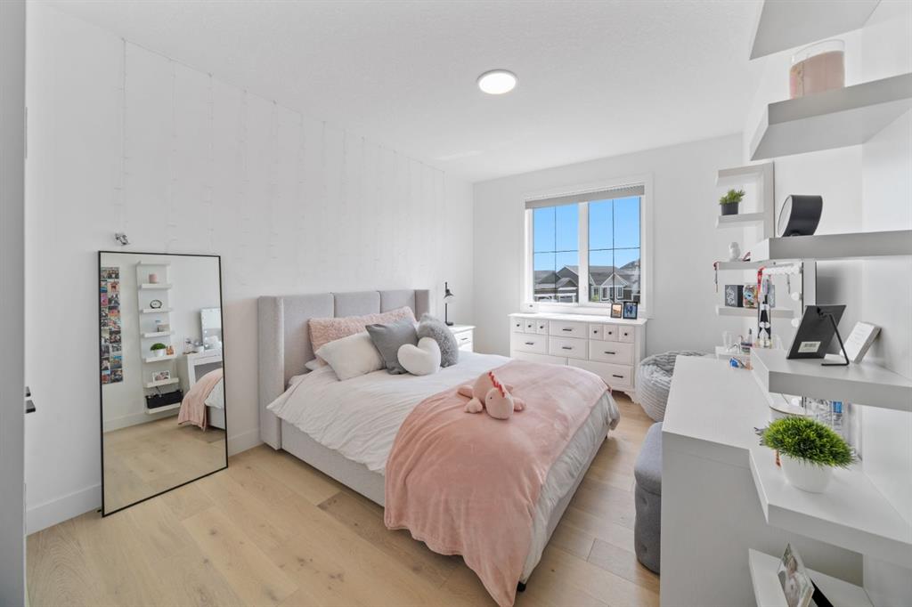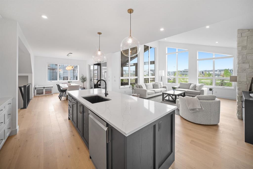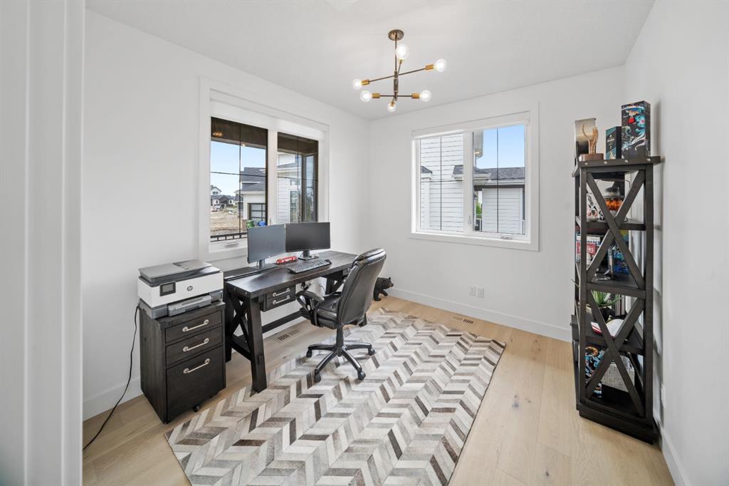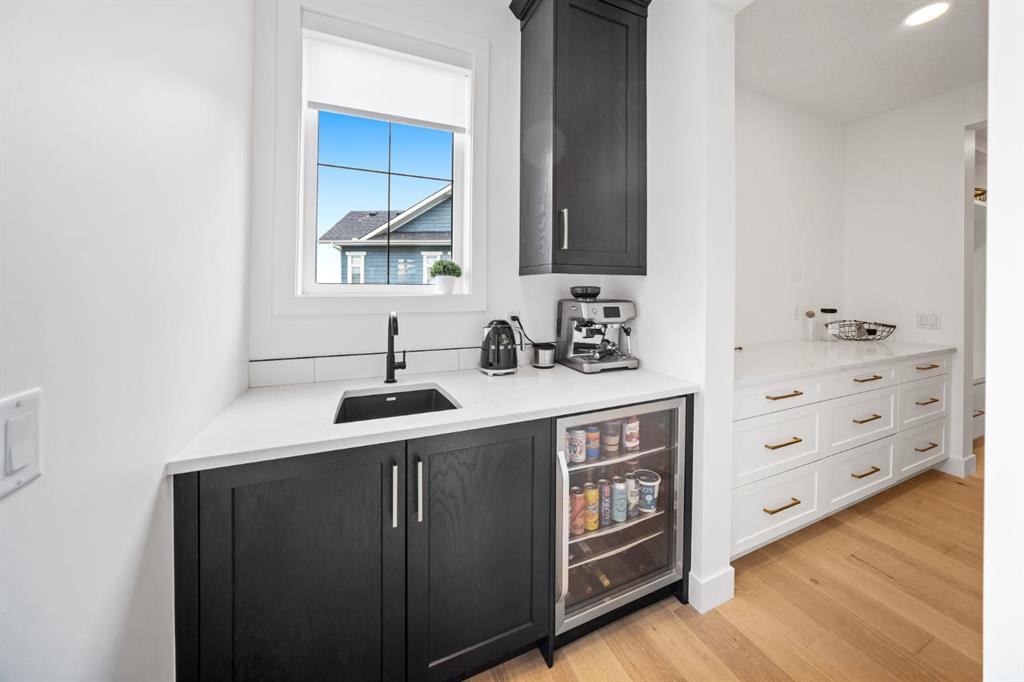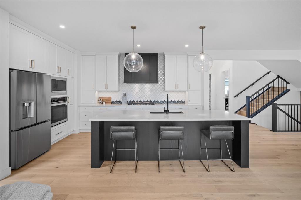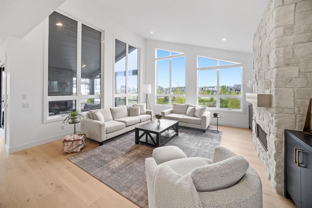Welcome to your Baywest Built Luxury Estate Home with Private Dock Access in Harmony. Over 4,300 square feet of beautifully developed living space, this luxury estate home is where sophistication meets lifestyle, designed for those who appreciate elevated finishes, functional luxury, and custom built-ins throughout. Perfectly positioned in Harmony, this residence delivers golf course, lake, and mountain views, with a convenient rear path leading to one of the community’s most coveted amenities: a private dock and sandy beach shared exclusively by only 16 homes. Whether it’s morning paddle-boarding, a sunset glass of wine on the water, or a quick swim on a summer day, this rare feature transforms your backyard into your own lakeside escape. From the grand entrance with soaring ceilings and show-stopping light fixtures, to the blond oak hardwood throughout, the details of the home captivate. The heart of the home is the chef’s kitchen with premium appliances, gas cooktop, custom hood fan, and a large centre island that invites gathering and entertaining flowing into an airy dining space fit for casual lunches or grand celebrations. This spectacular layout flows into an impressive butler’s pantry with sink, bar fridge, custom drawers, ample counter space, and a tucked-away pantry for extra storage and seamless prep. The main living room showcases soaring vaulted ceilings and expansive windows that frame breathtaking views, anchored by a gas fireplace with bleached stonework. For milder days and evenings, the spectacular four-season sunroom offers 300 sq. ft. of indoor-outdoor living with fireplace, lighting, TV hook-up, and gas line. Upstairs, a bonus room is ideal for play, study, or Netflix. Choose your wing: the primary suite is a vogue-inspired retreat with spacious bedroom, walk-in closet, and spa-like ensuite with soaker tub and glass shower. The additional wing has two bedrooms with custom closets, a bathroom with double-sink vanity, and a laundry room with sink. The harmonious layout continues in the expansive walk-out basement, offering another bedroom, a full bathroom, and ample space for relaxation and recreation. Step directly outside to one of the largest lots in Harmony at .33 acres, large enough for a future sport court. The showstopper for automotive and recreation enthusiasts is the OVERSIZED triple heated garage. With epoxy floors, 12’ ceilings for a lift, and expansive storage, it’s designed to store multiple vehicles, watercraft, or mountain gear with ease. More features of this home include: dual A/C, two furnaces, Ecobee, and sump pump. Power blinds on all high windows are included with convenient switch control. Set steps away from Mickelson National Golf Club, LaunchPad, Harmony Lake, and close to world-class schools like The Edge Sports School, this home is more than a residence, it is your private dockside retreat, your luxury entertaining space, and your ultimate sunroom & garage space, all in one extraordinary Harmony address.